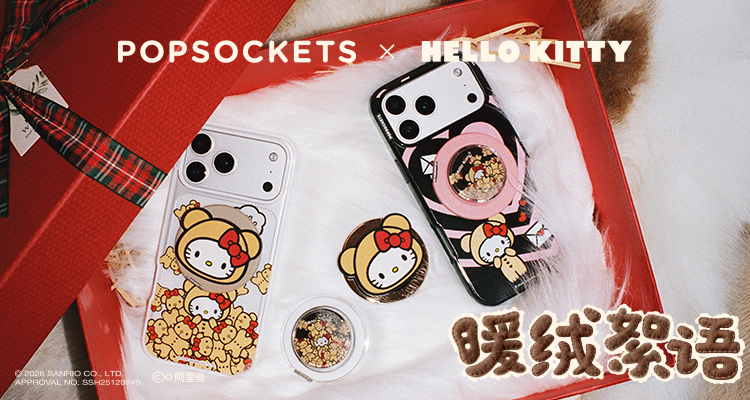 补货架到【暖绒絮语】雪舞流光 泡泡骚 x Hello Kitty合作系列 POPGRIP泡泡骚手机粘贴式气囊支架 Tidepool流沙系列 棕色 凯蒂猫