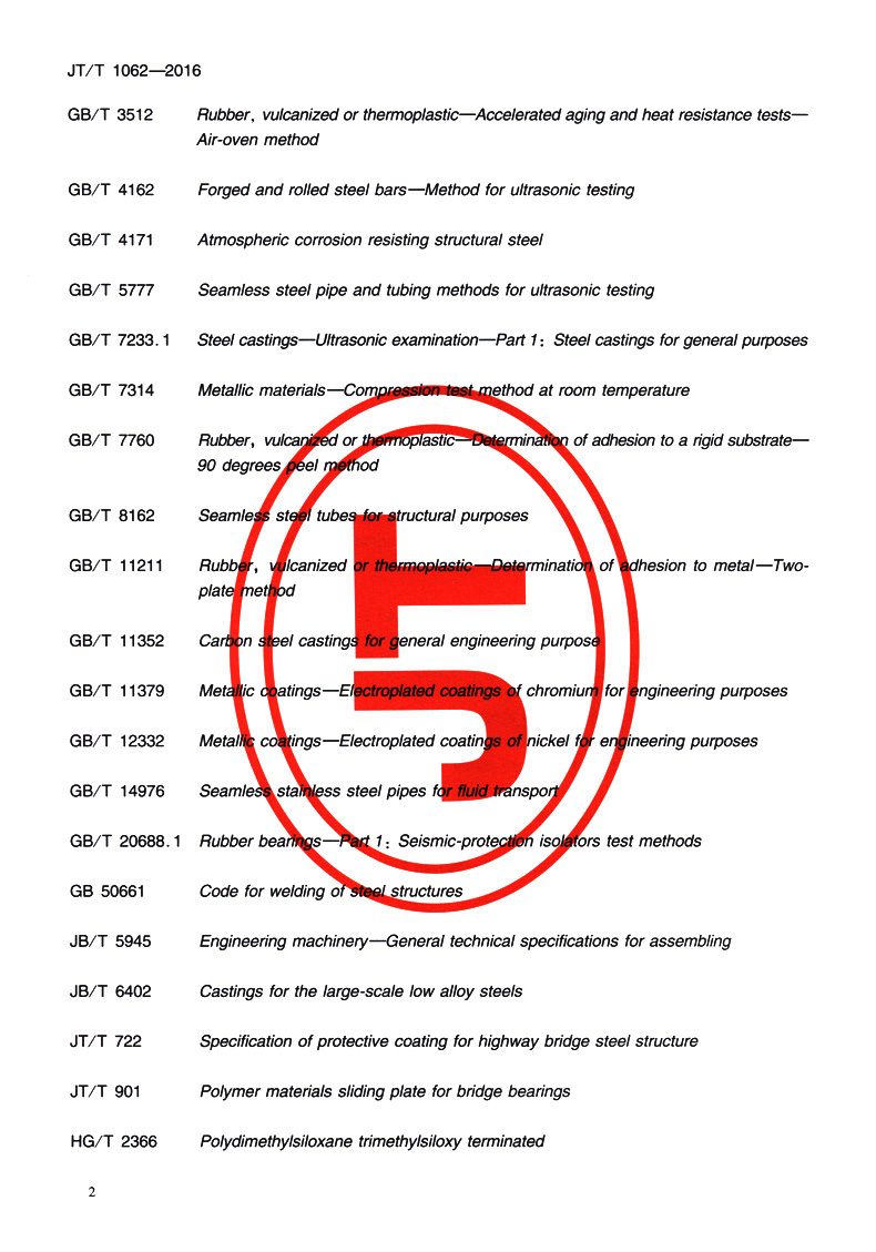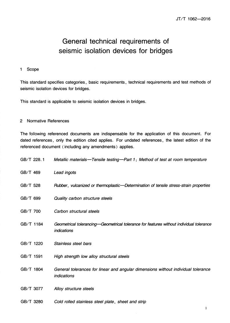 | 桥梁减隔震装置通用技术条件(JT/T 1062—2016)英文版 | ||