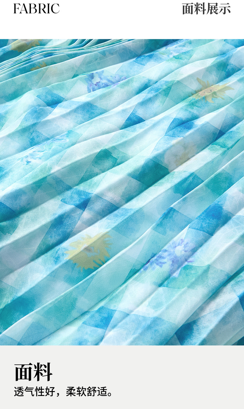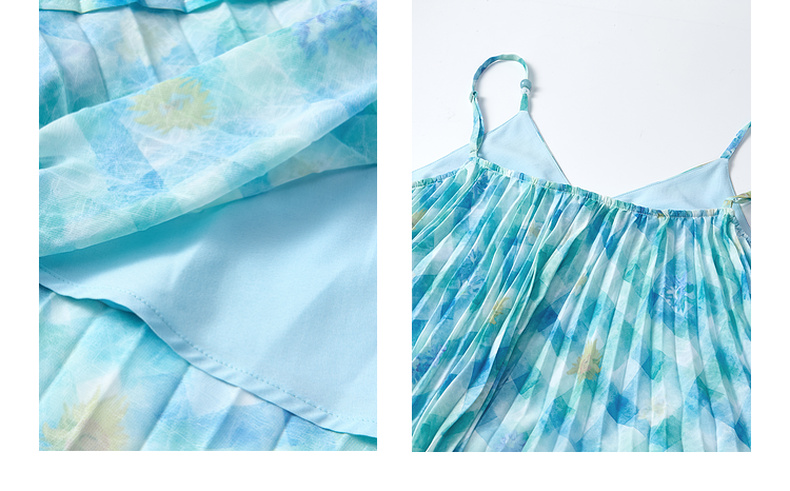 两三事 森灵绮梦 2025夏季新款小清新印花拼色绑带吊带裙连衣裙