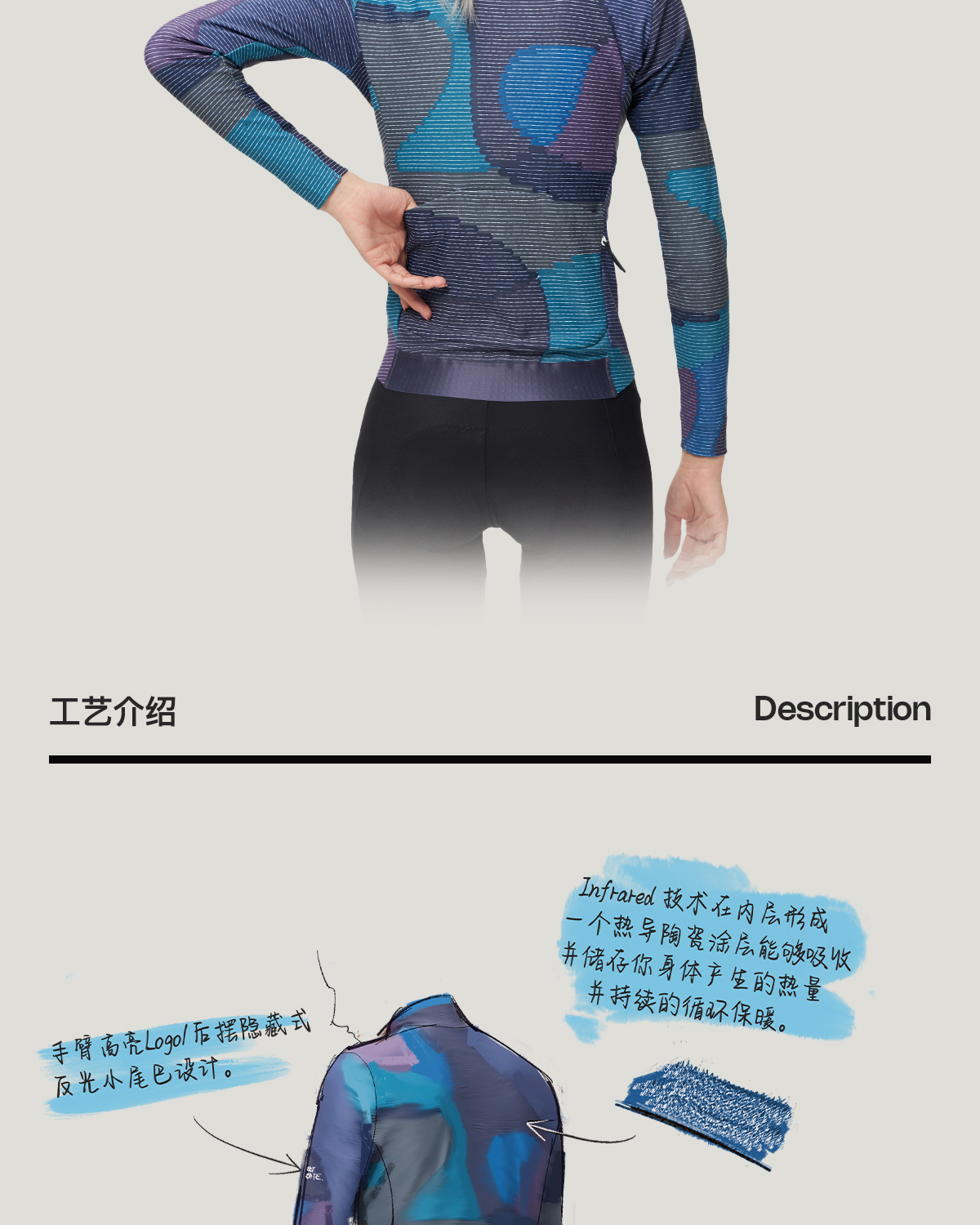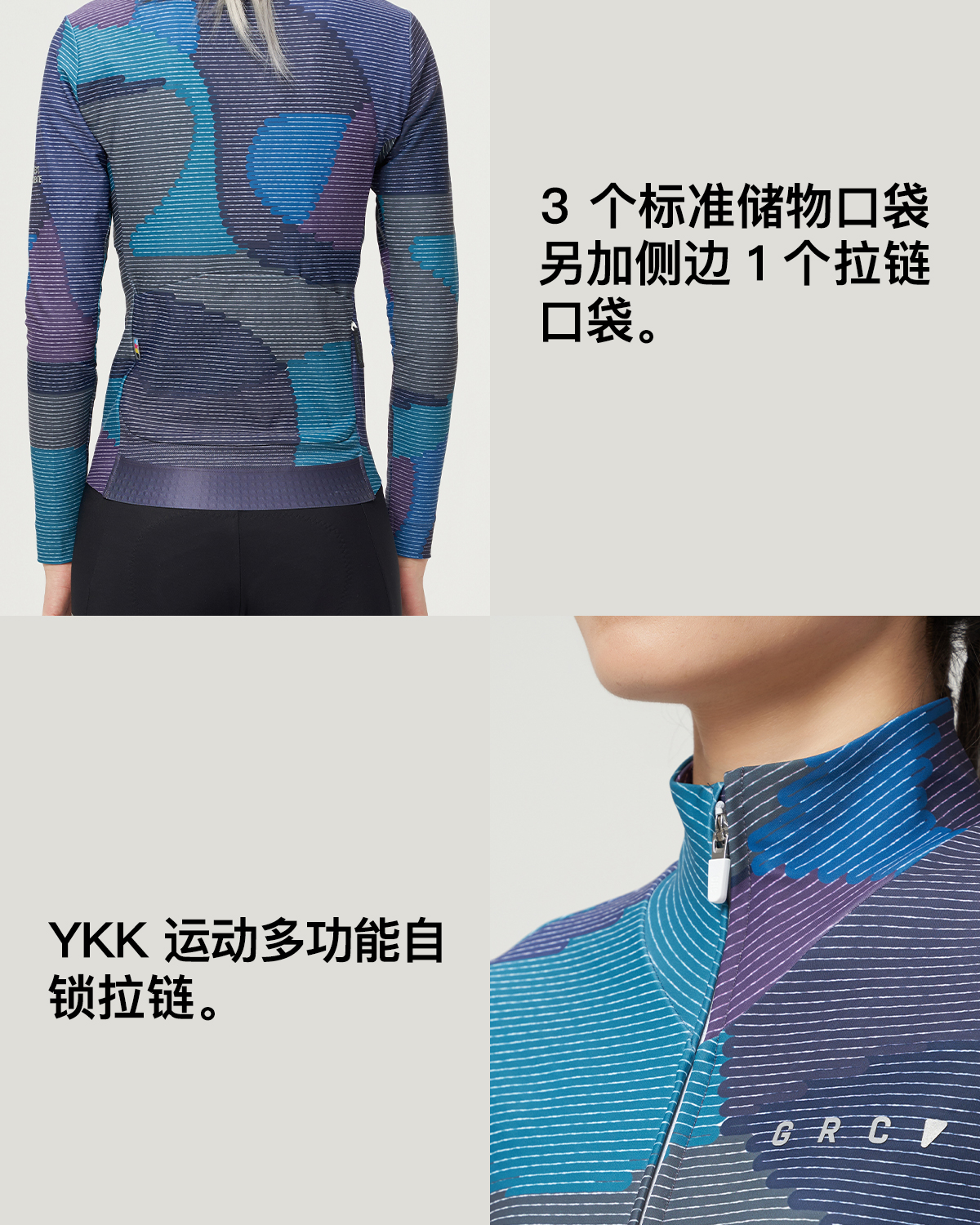 GRC桀骜无尽秋冬新款CMYK律动幻波长袖上衣保暖公路自行车骑行女