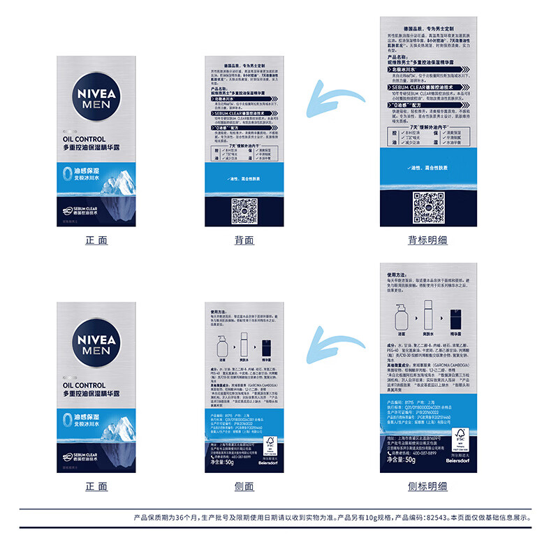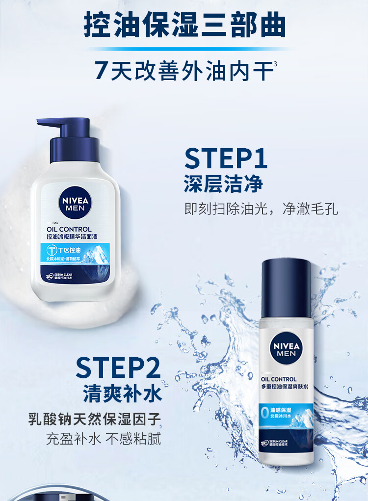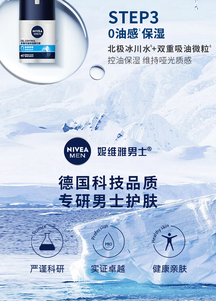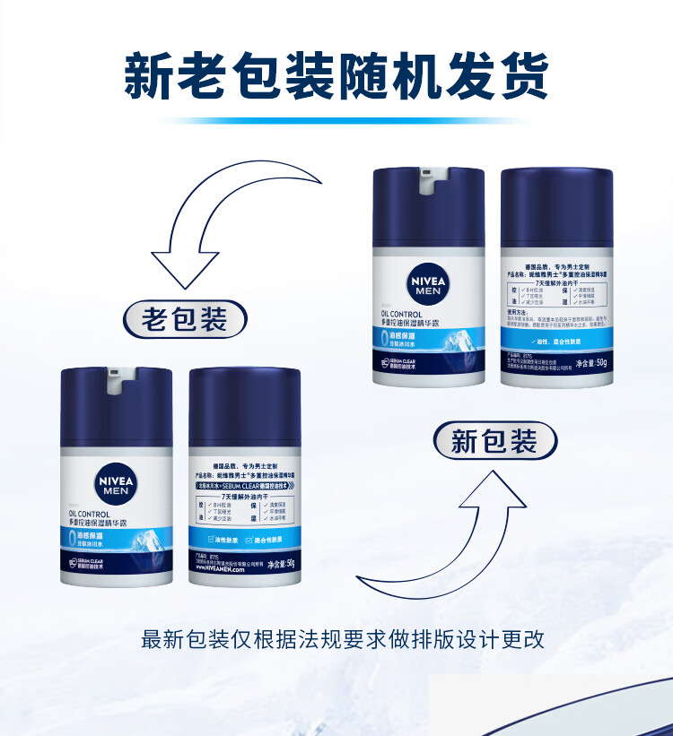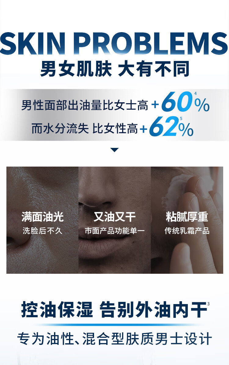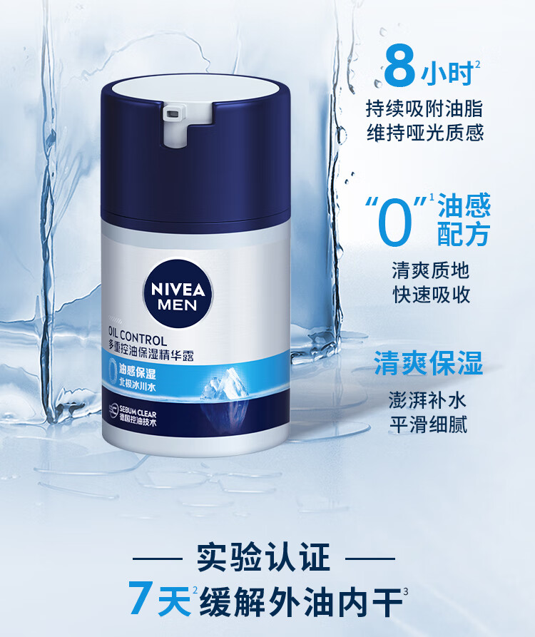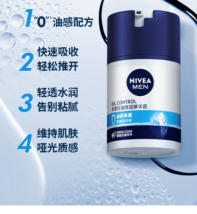 妮维雅(NIVEA)男士油皮优选多重控油保湿精华露50g 秋冬男士乳液面霜护肤品 845790
