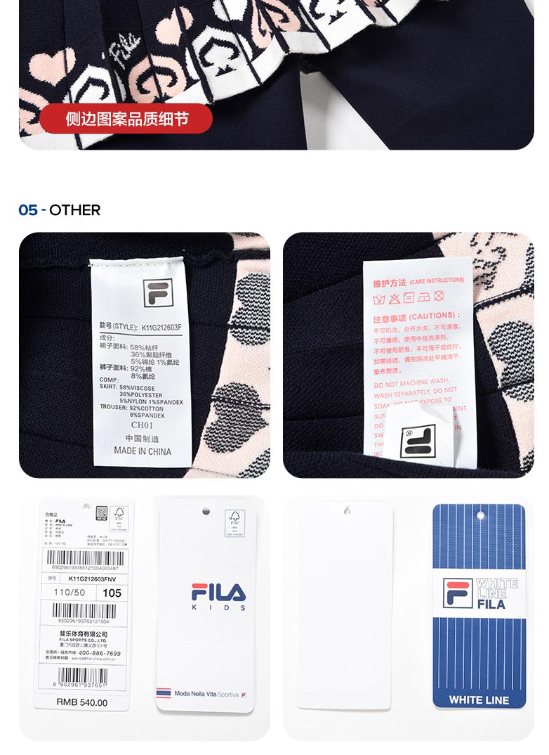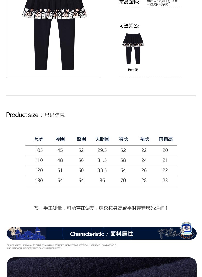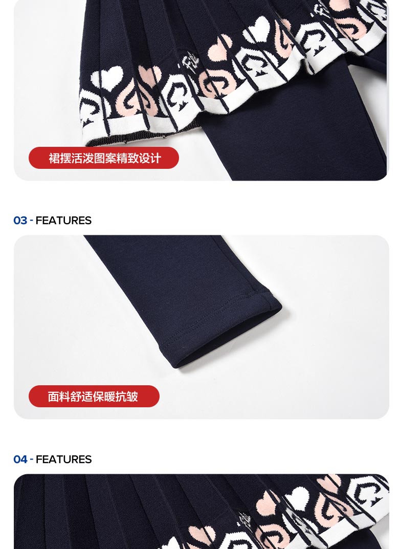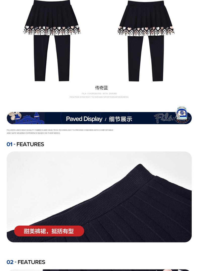 小斐乐女小童加绒打底裙裤2022春季新款儿童时尚裤裙K11G212603F