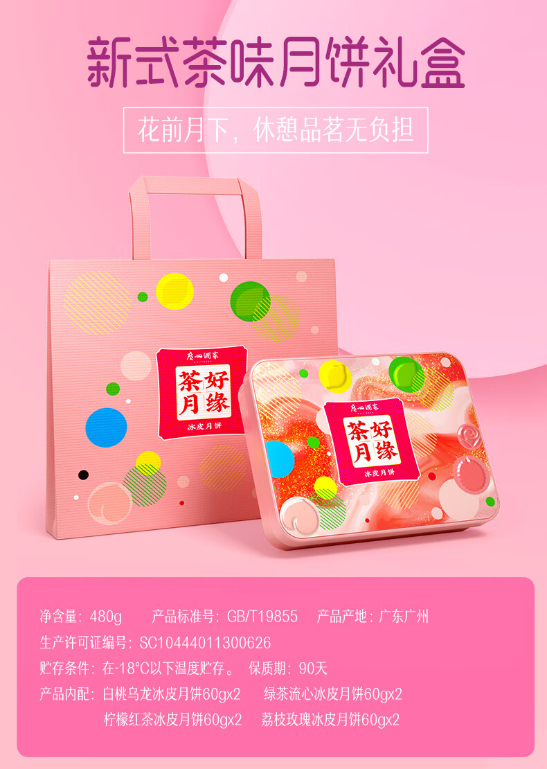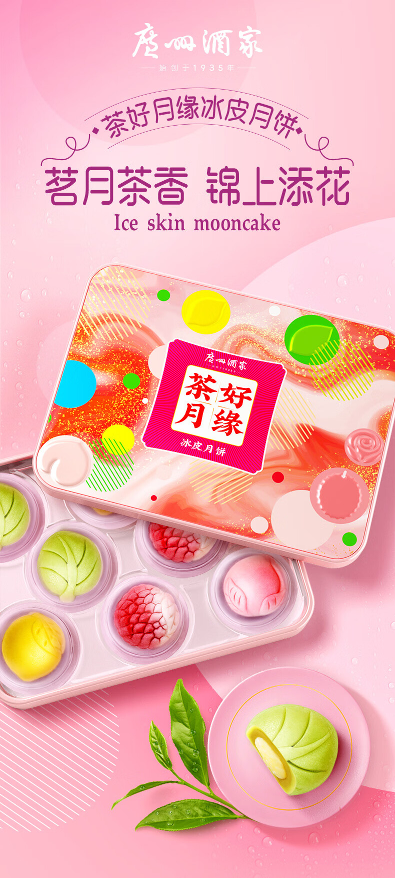 【广州酒家】茶好月缘冰皮月饼480g(8枚)