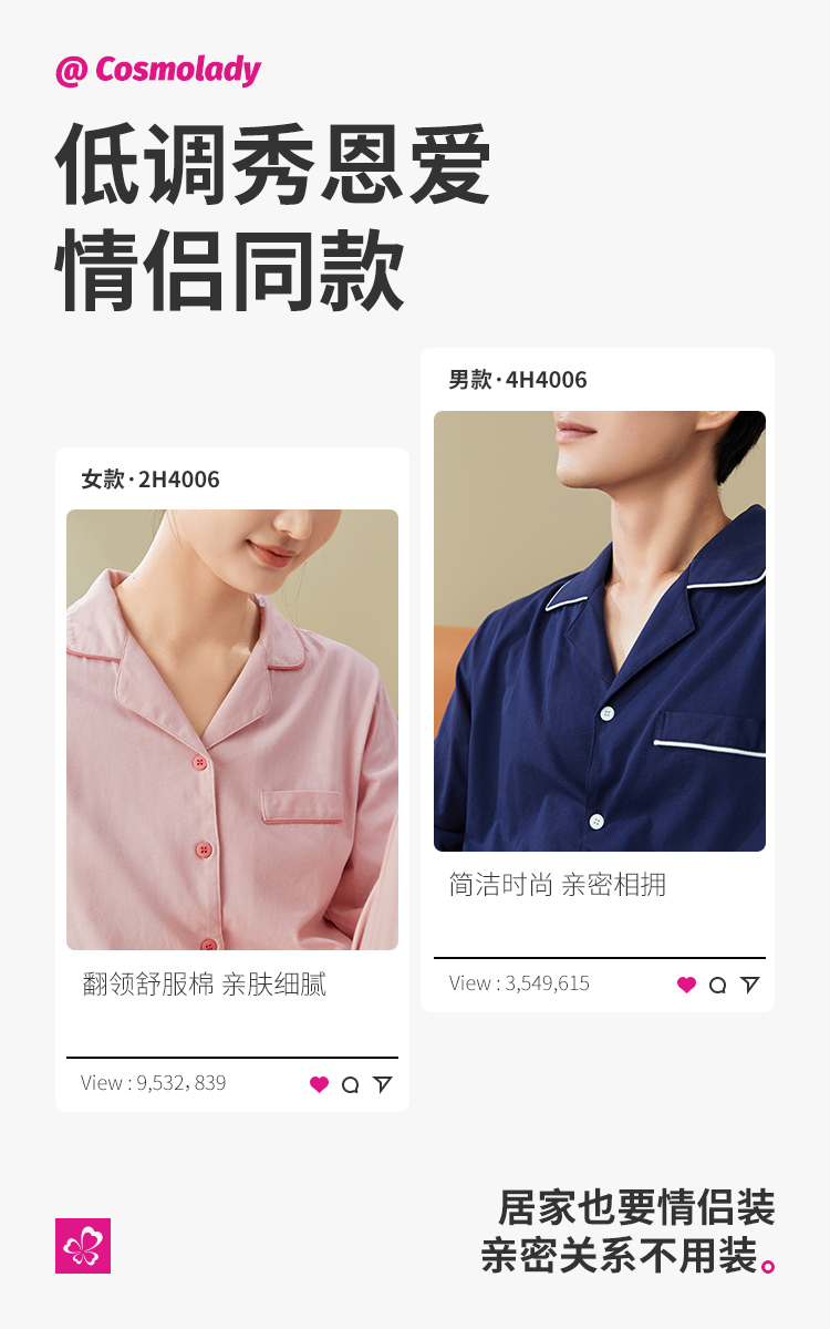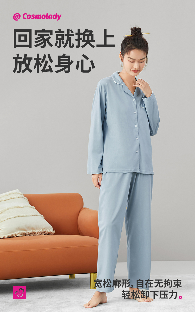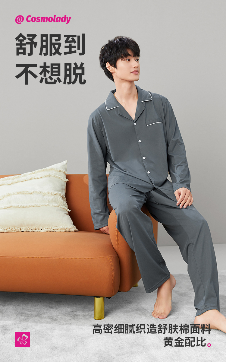 都市丽人男士棉质套装长袖长裤32支CVC单面家居服4H3100