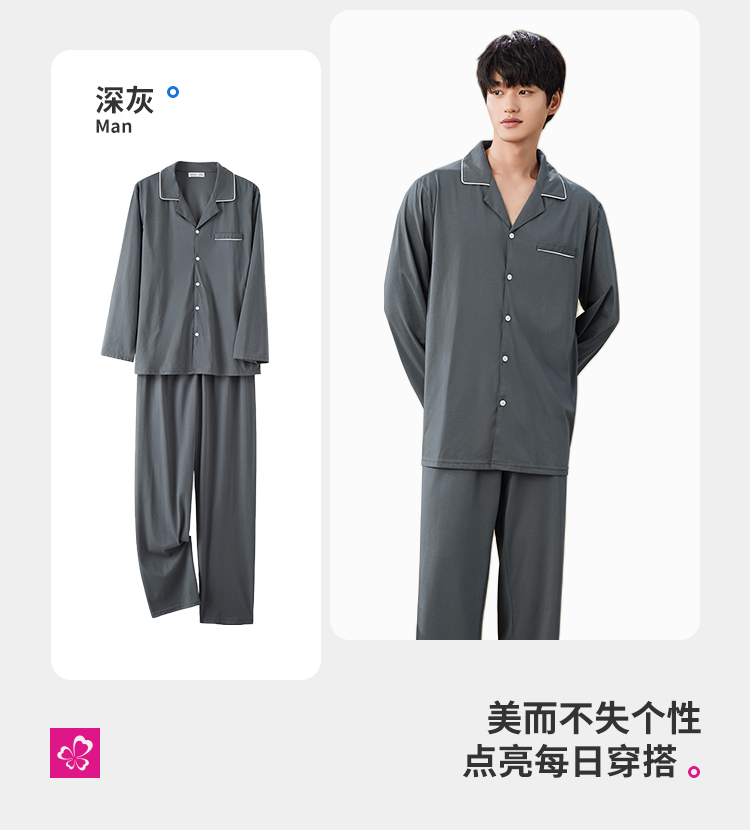 都市丽人都市锋尚睡衣生活家居长袖40S TC拉架薄男士棉质套装FHT2D4