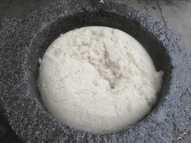 这样打出来的糍粑更加细腻柔软,而被敲打的次数越多,糍粑吃起来的口感就越是软糯。
