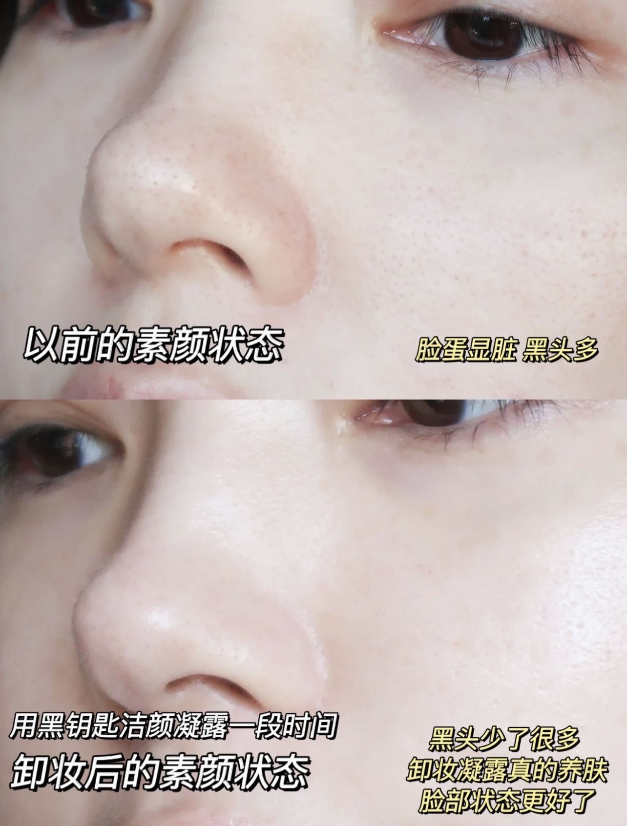 用黑钥匙洁颜凝露卸完妆的皮肤