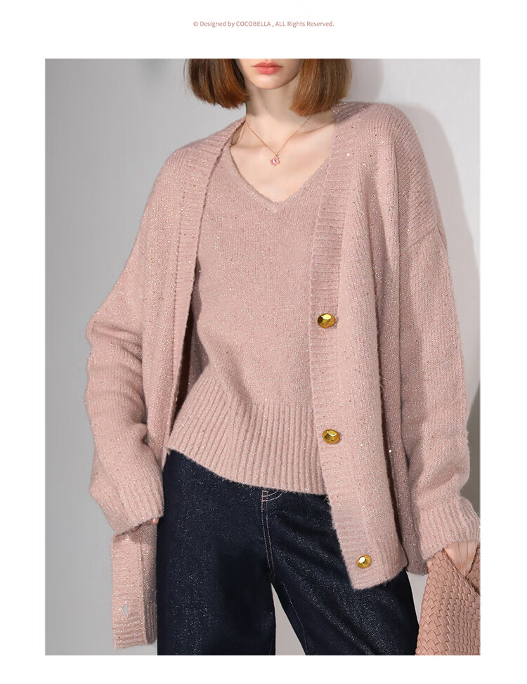 COCOBELLA[璀璨星河]细闪亮片针织开衫秋软糯毛衣外套MZ3111