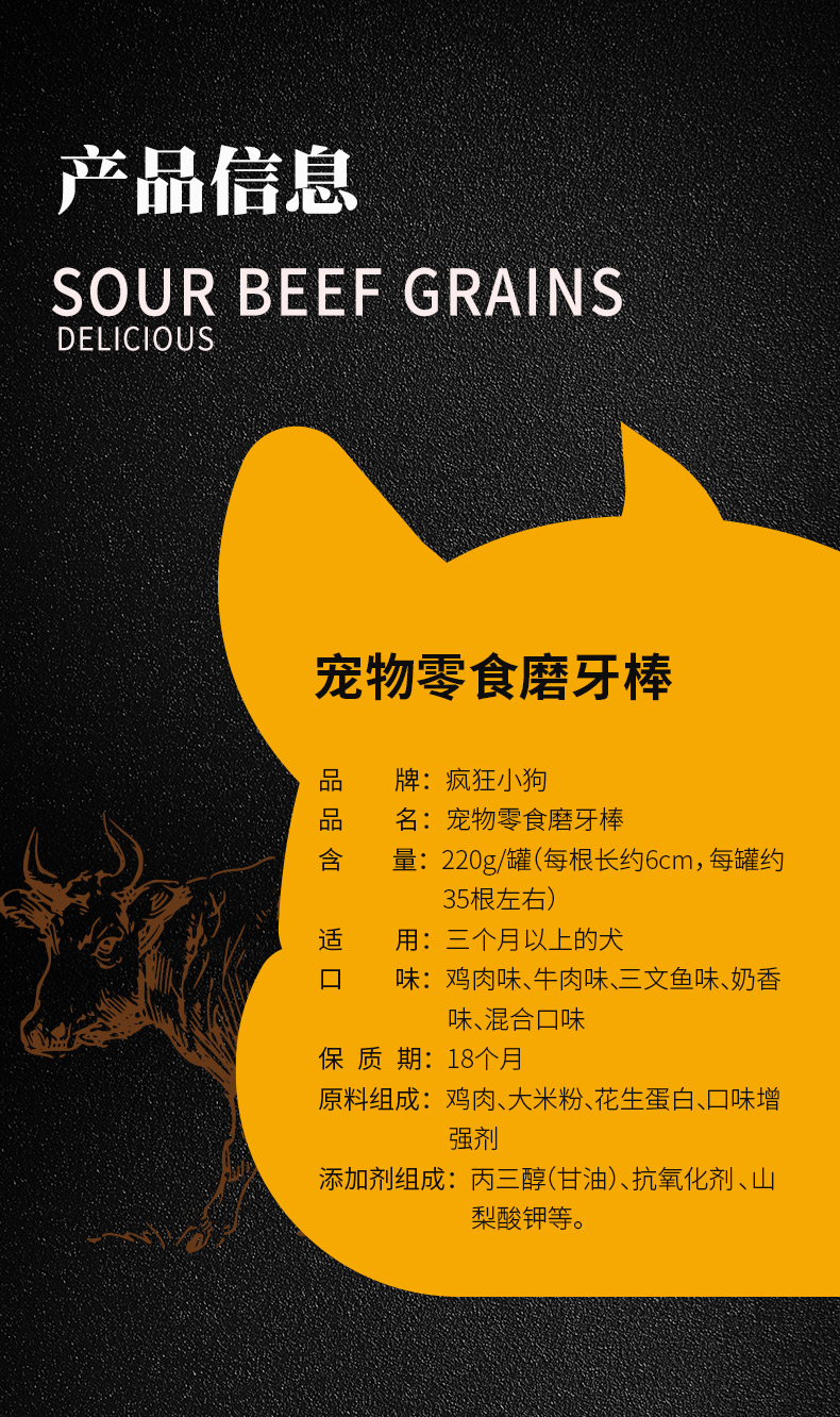 【赠品】疯狂小狗 磨牙棒混合口味 220g