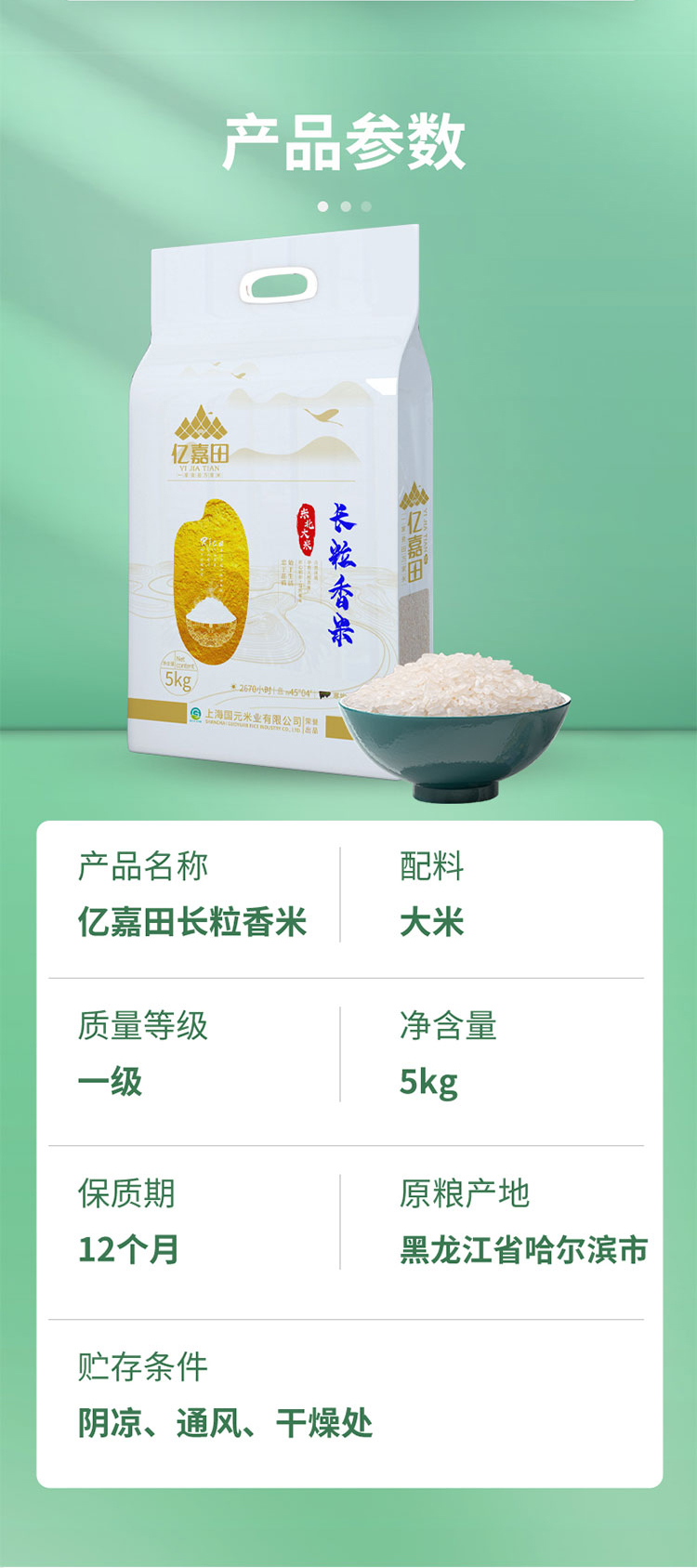 嘉田长粒香米 5kg(六面)