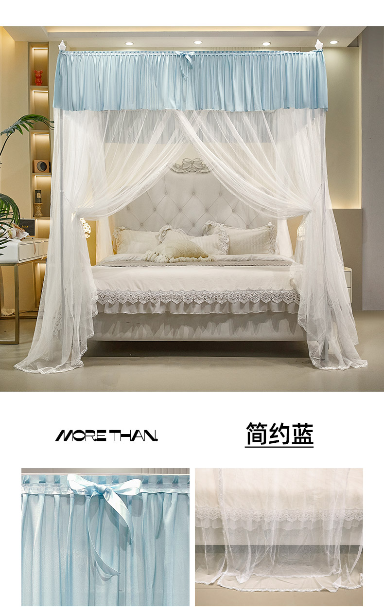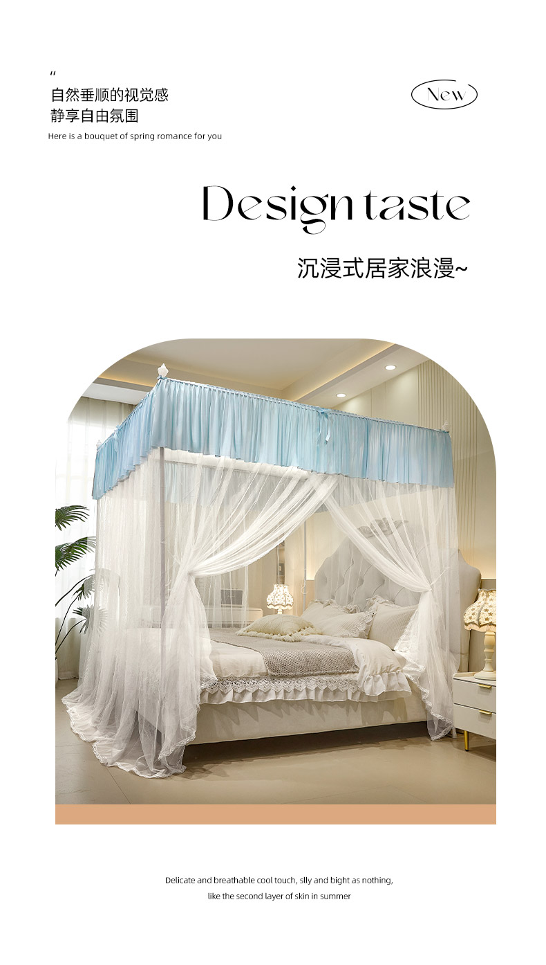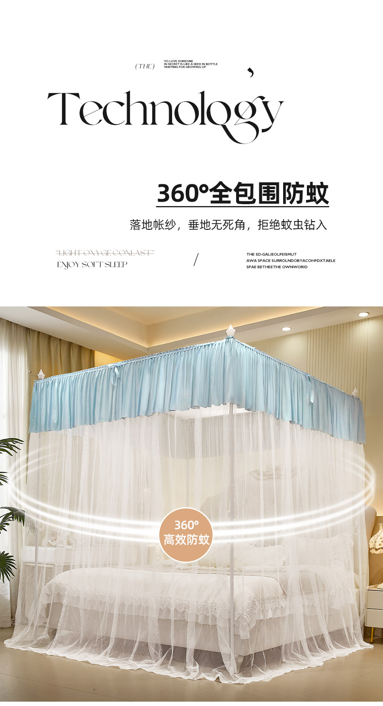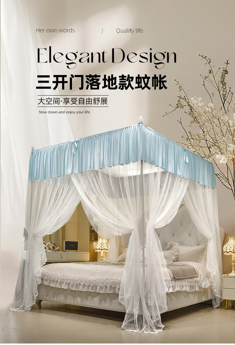 自然醒蚊帐家用卧室宫廷落地蚊帐三开门不锈钢四立柱防蚊防尘遮光顶家用清新2505HH