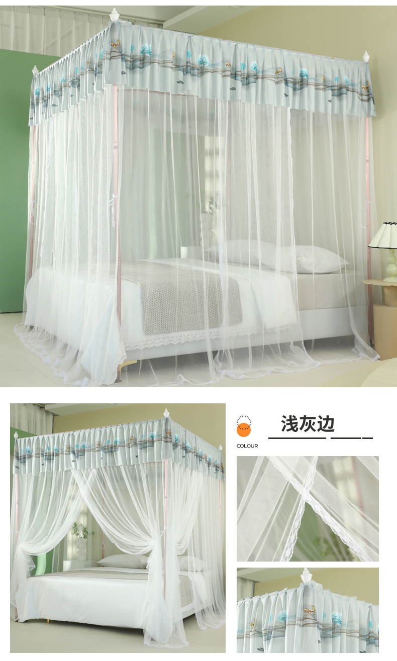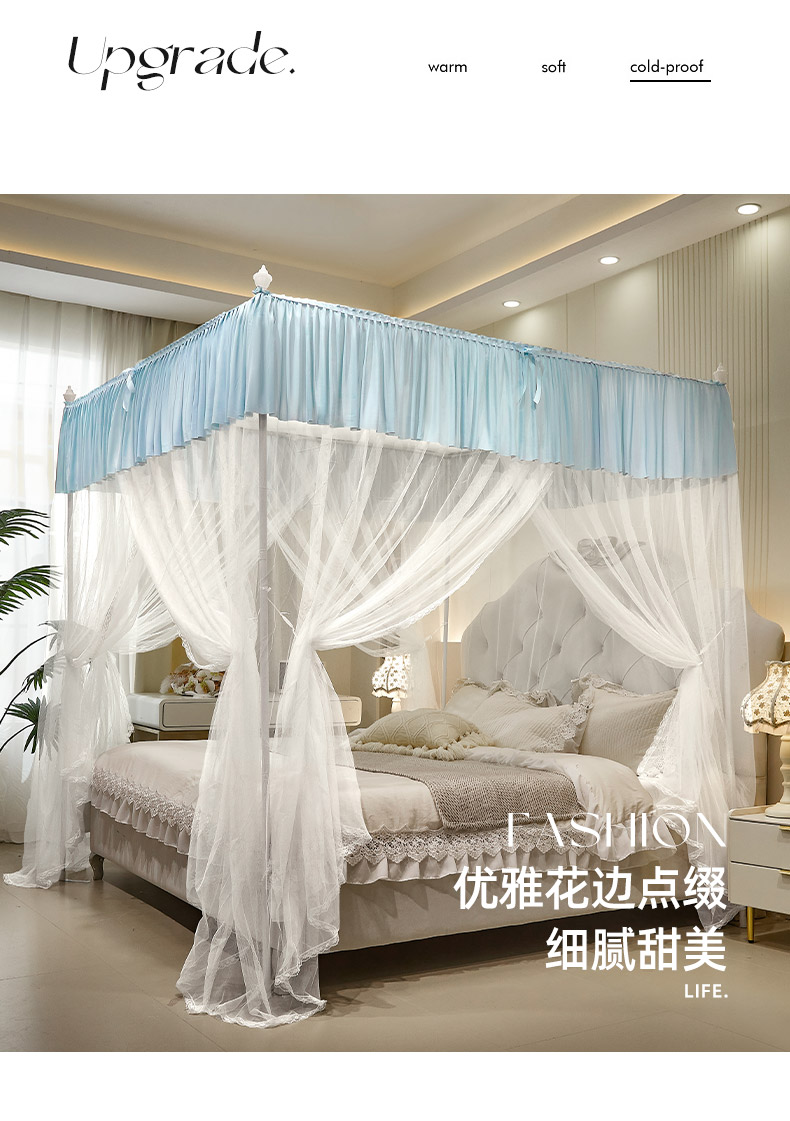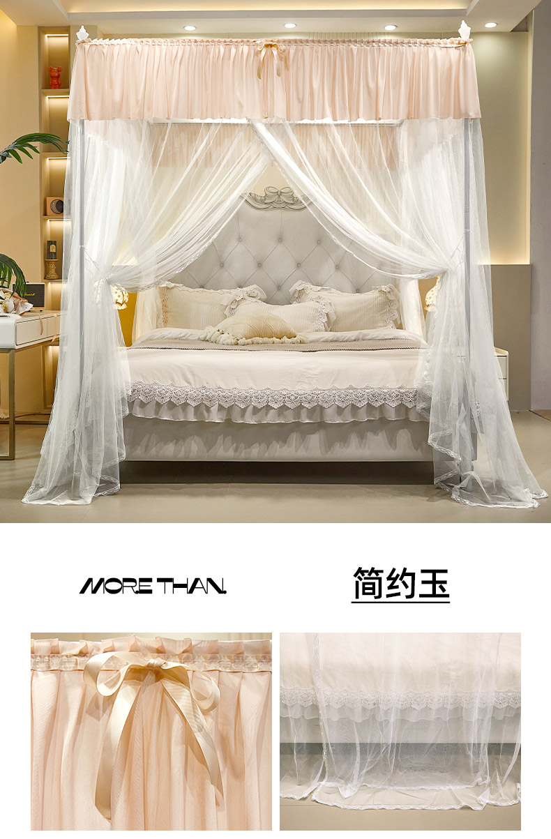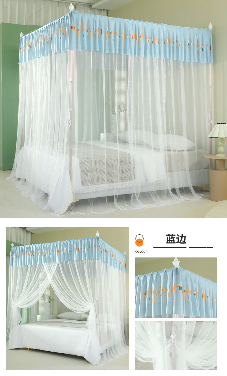 自然醒蚊帐家用卧室宫廷落地蚊帐三开门不锈钢四立柱防蚊防尘遮光顶家用清新2505HH