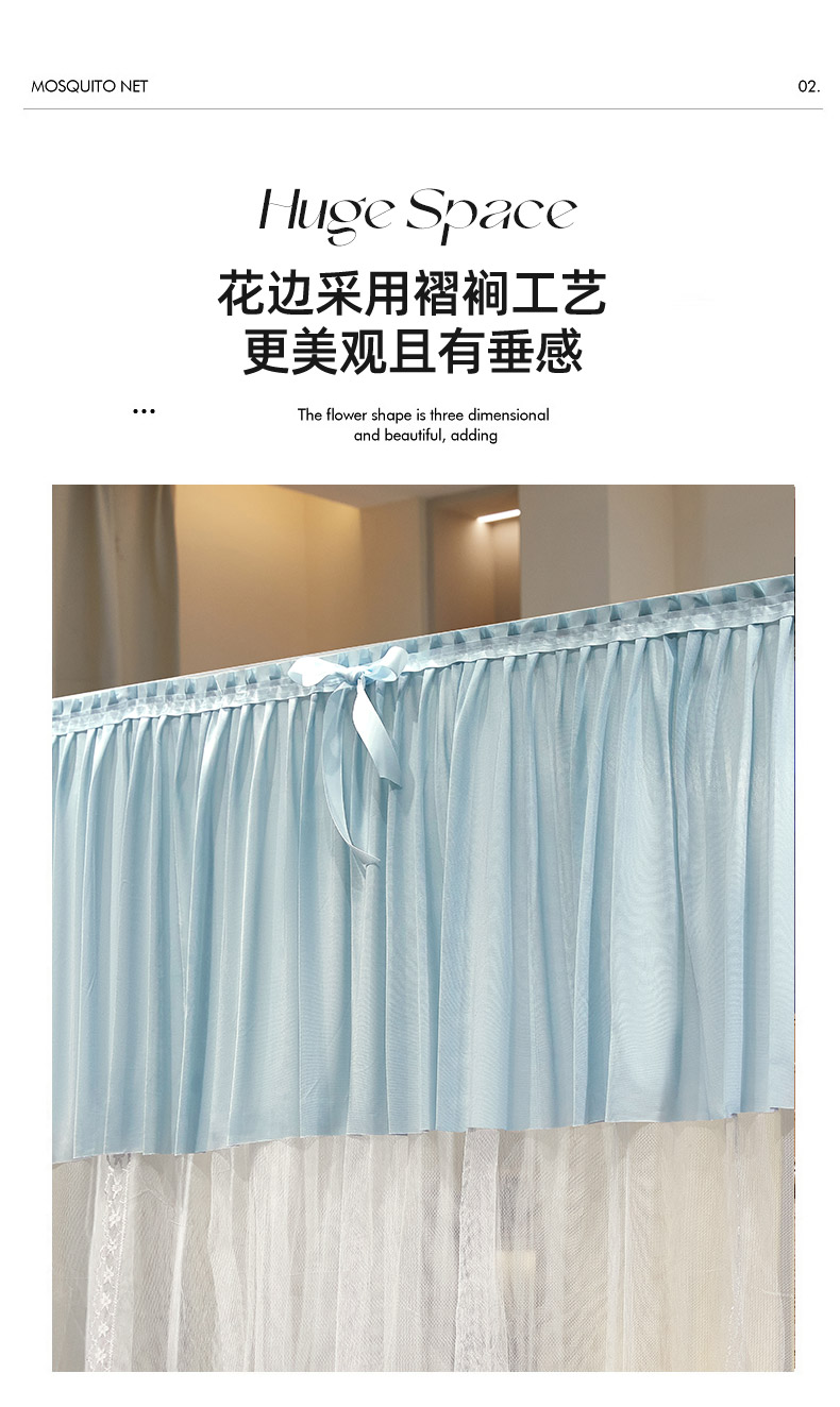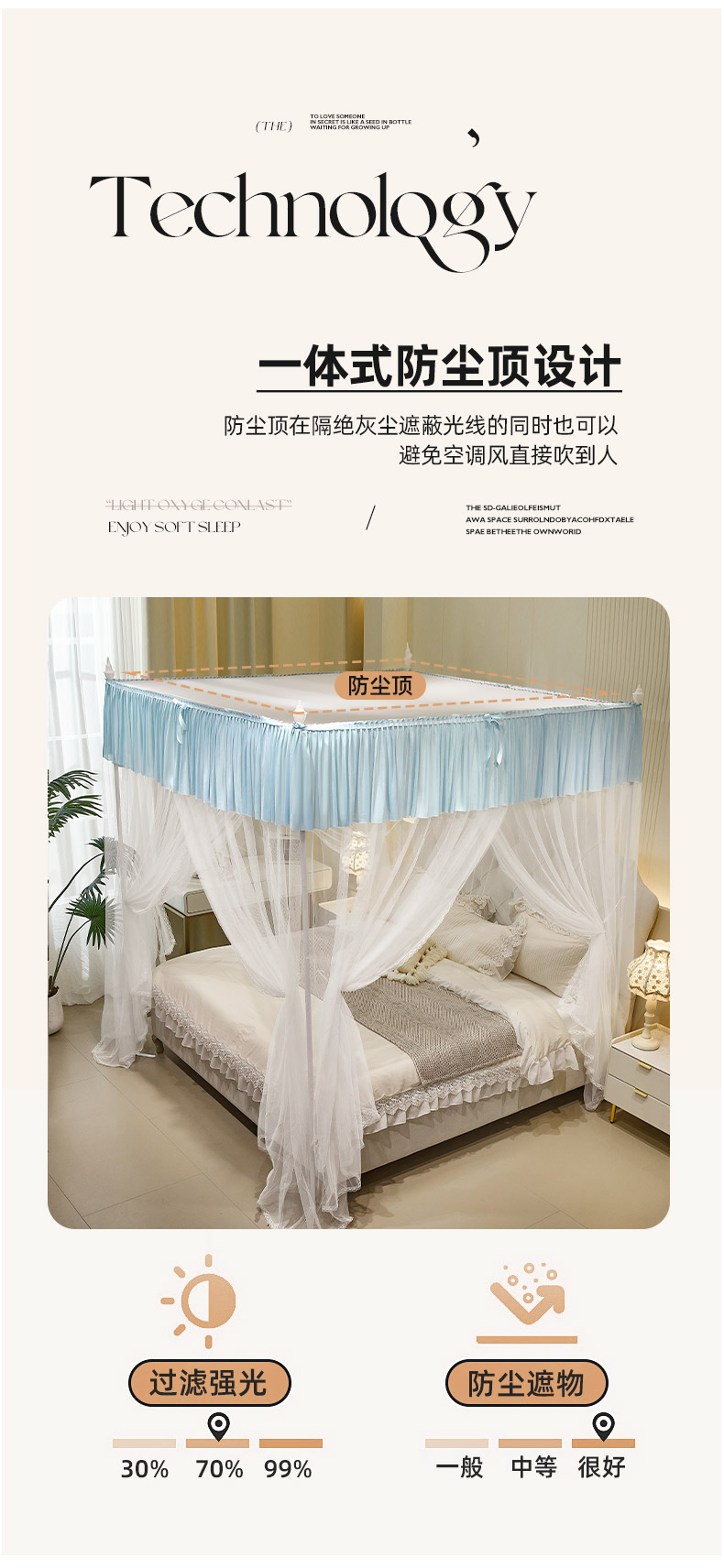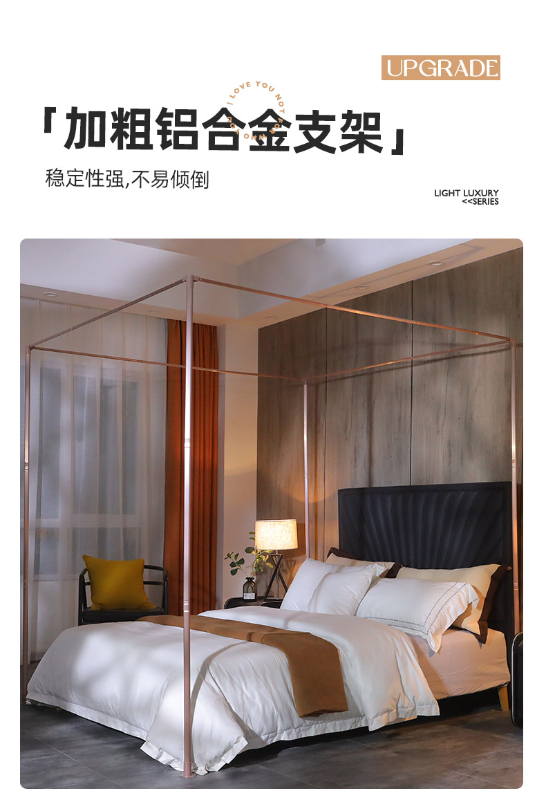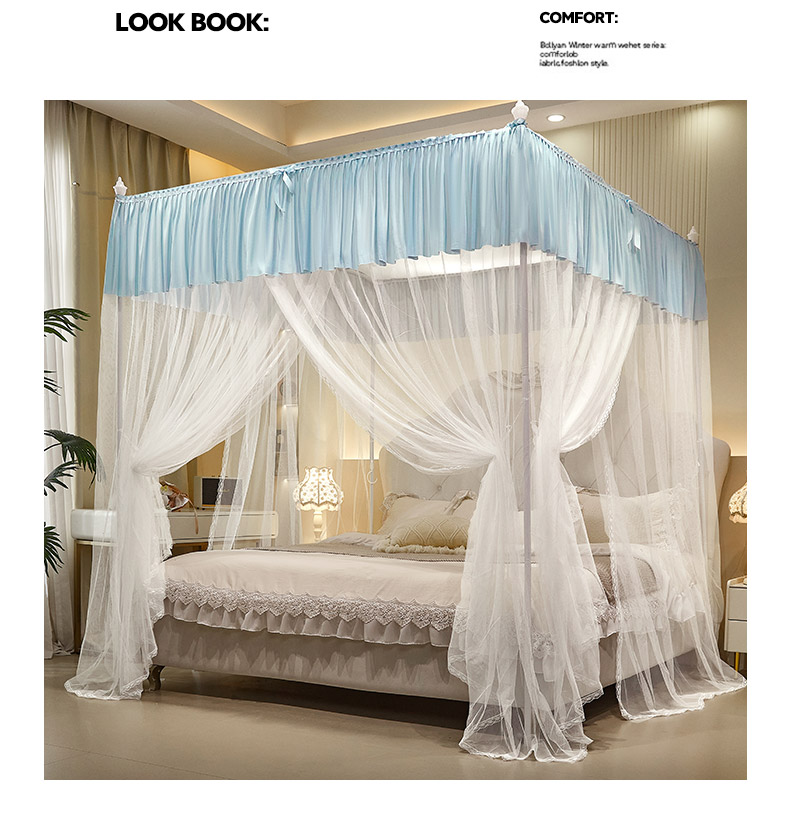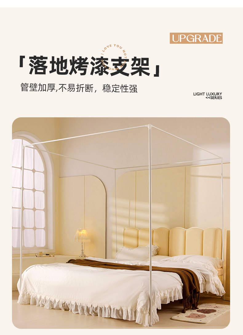 自然醒蚊帐家用卧室宫廷落地蚊帐三开门不锈钢四立柱防蚊防尘遮光顶家用清新2505HH