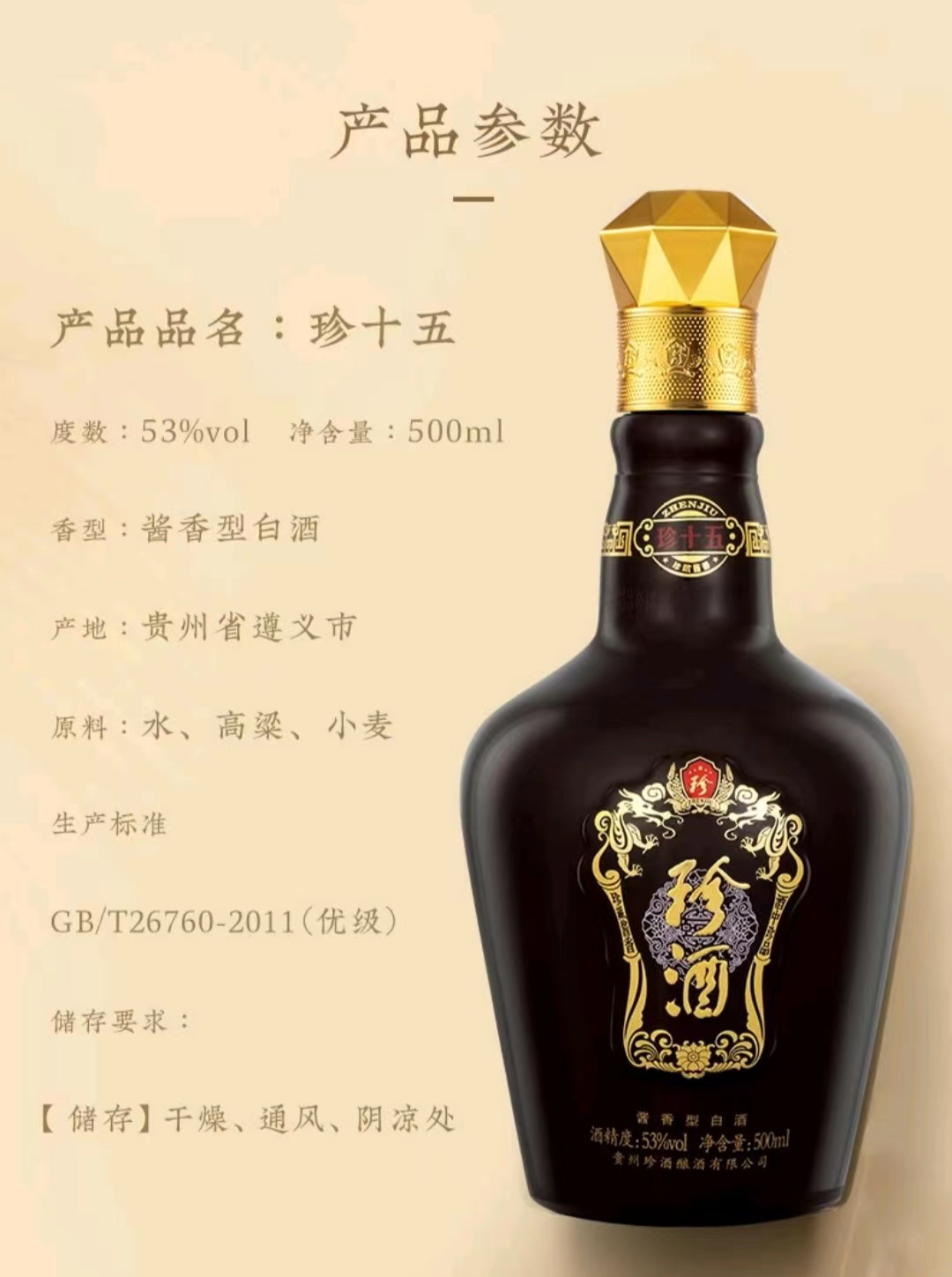 【自营】珍酒 珍十五 酱香型白酒 53度 500ml 酒中珍品 珍藏酱香 商务送礼 6瓶整箱装