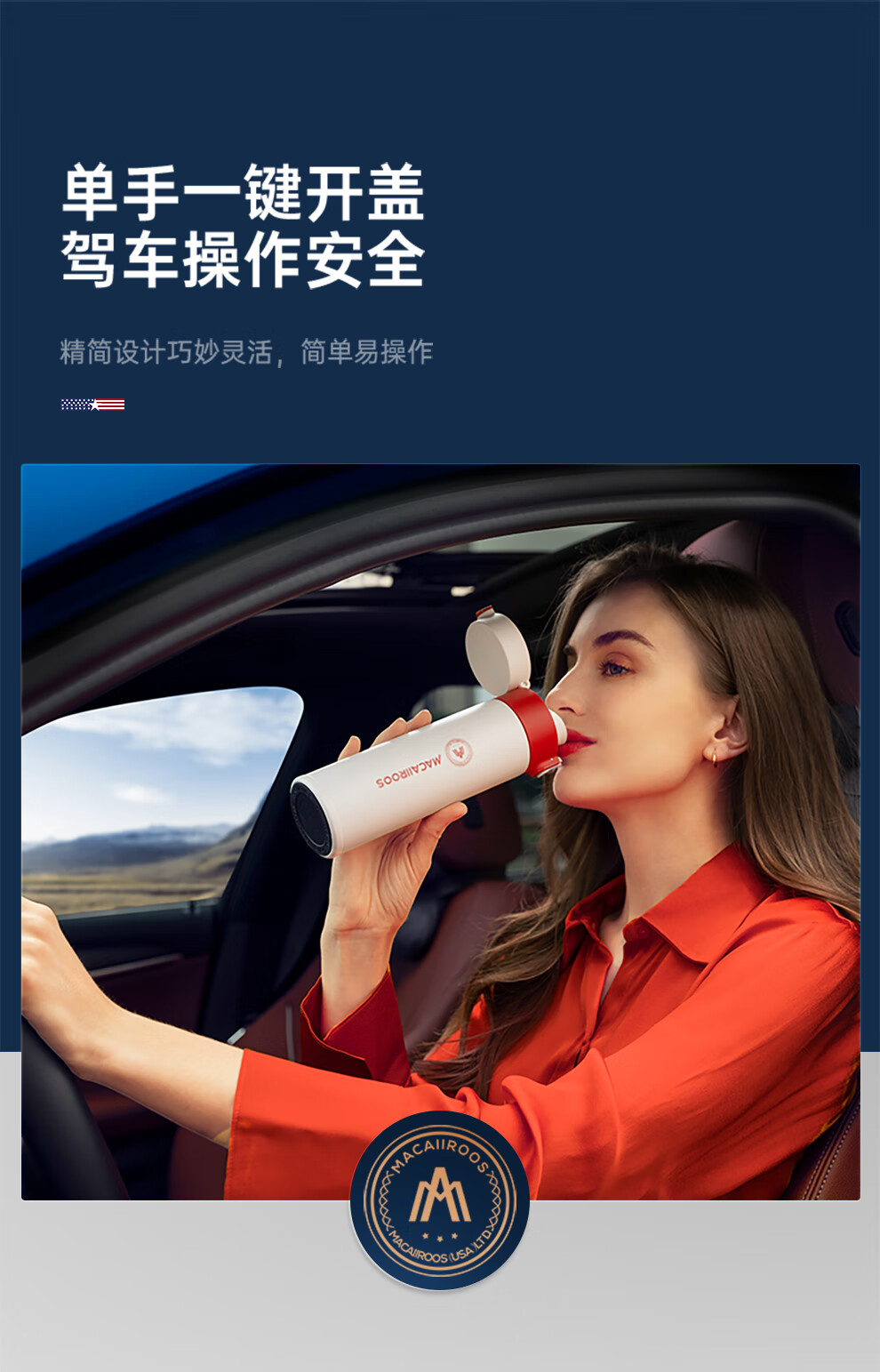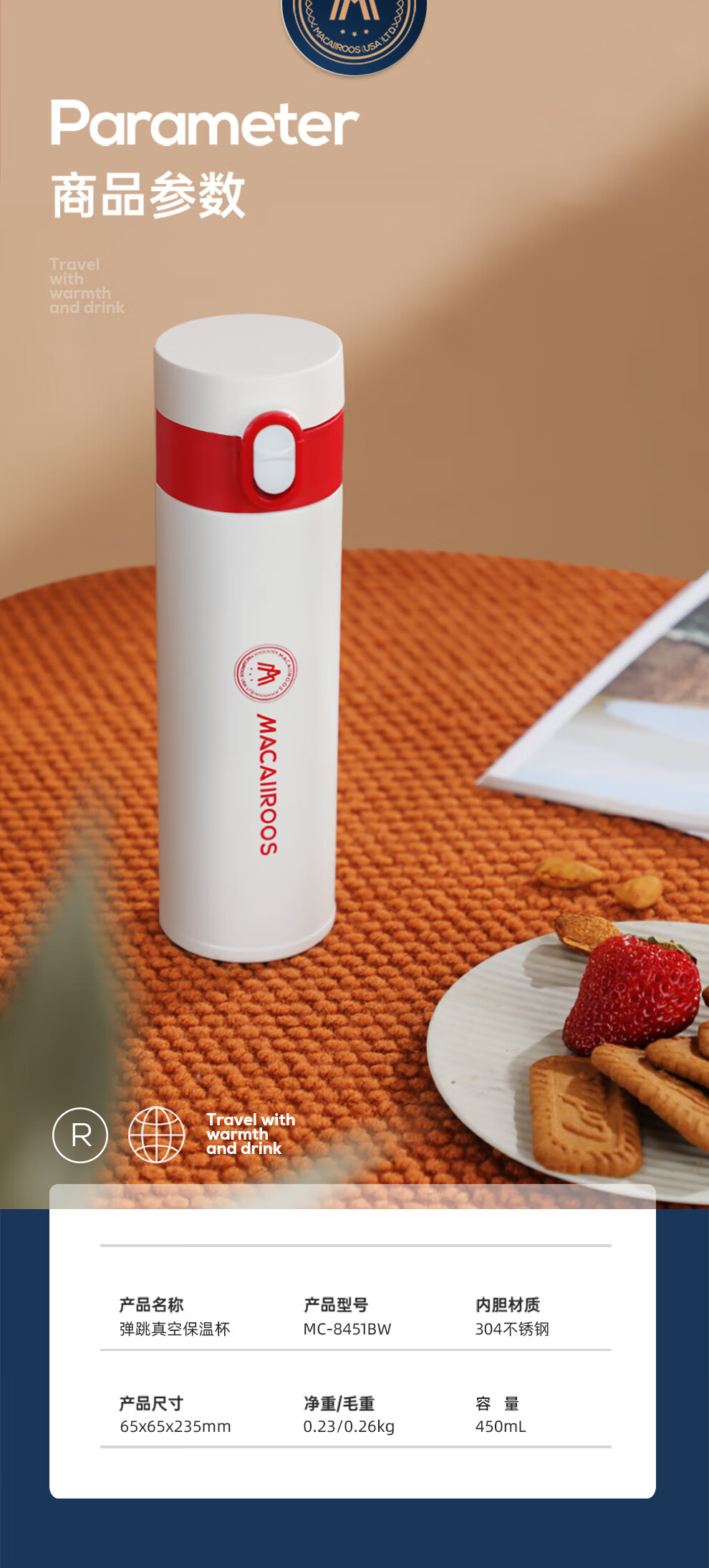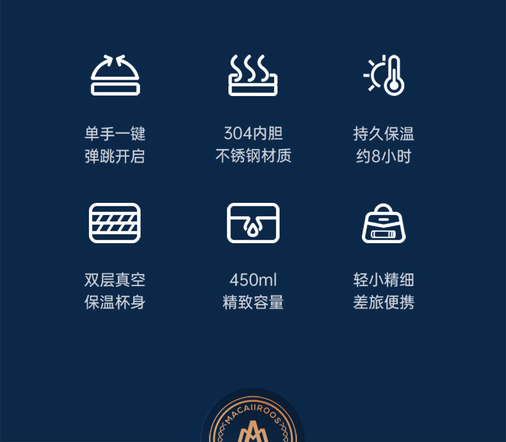 【小家电】迈卡罗MC-8451BW保温杯大容量轻量水杯男女学生304不锈钢车载弹盖杯HF