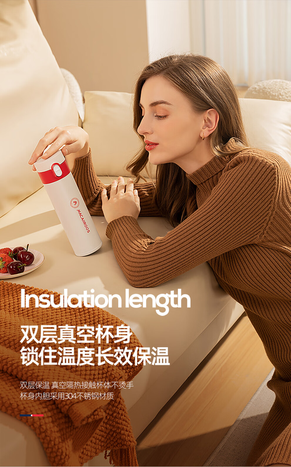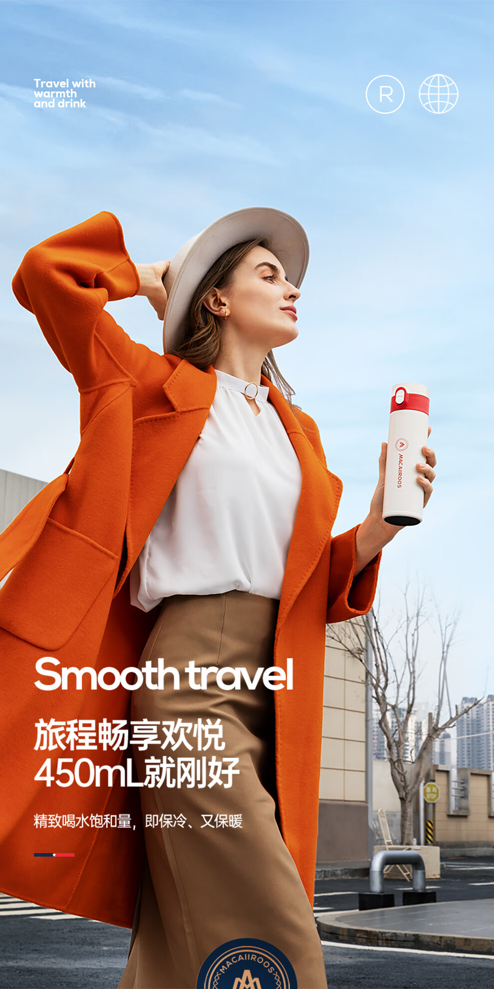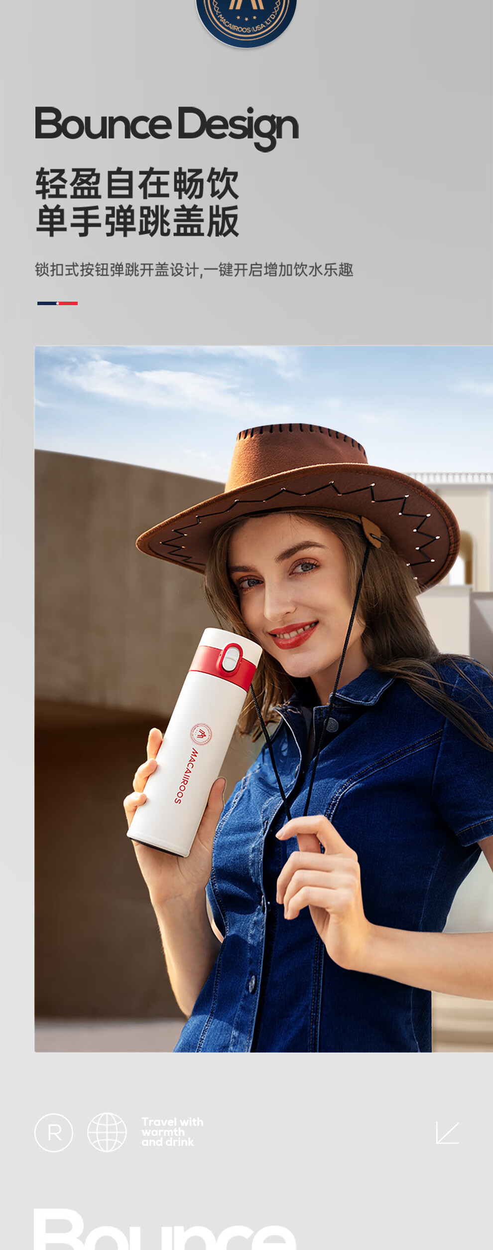 【小家电】迈卡罗MC-8451BW保温杯大容量轻量水杯男女学生304不锈钢车载弹盖杯HF