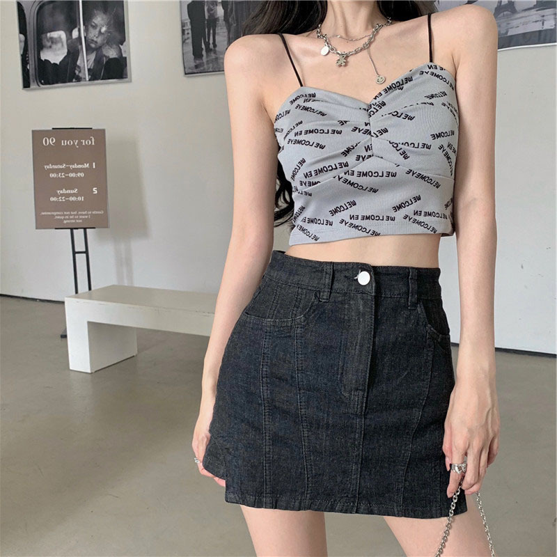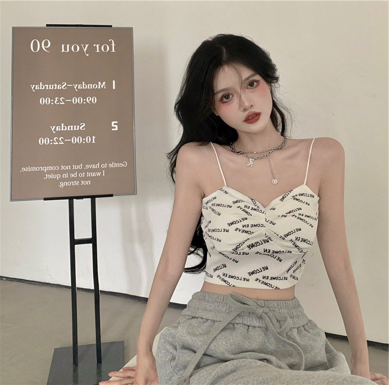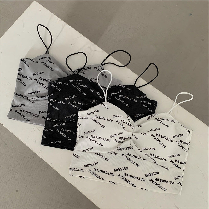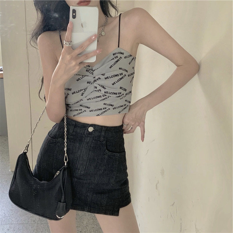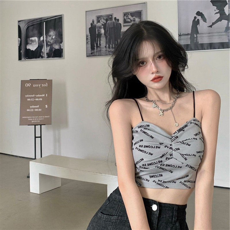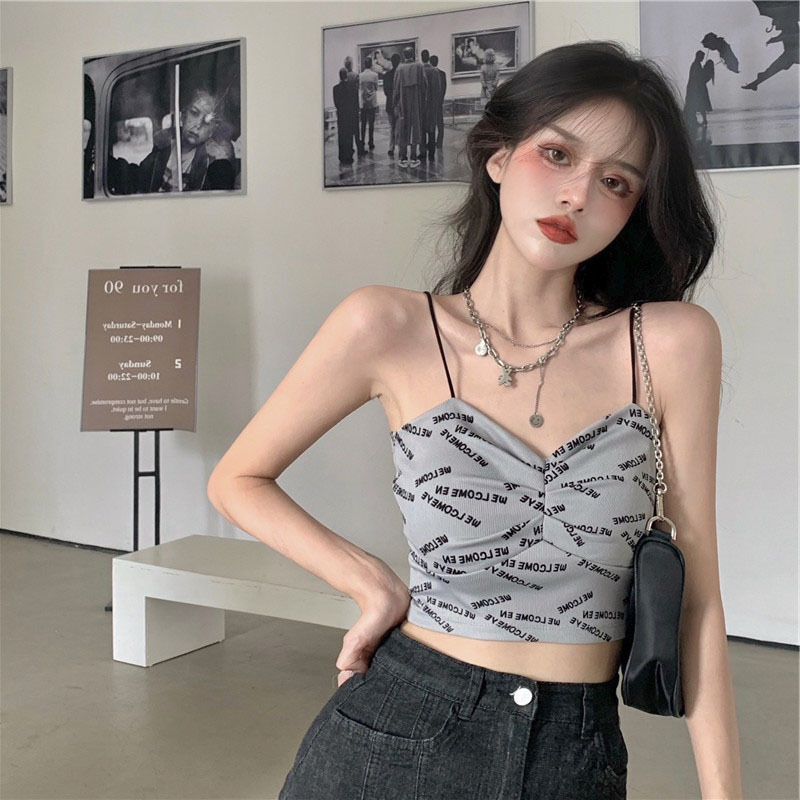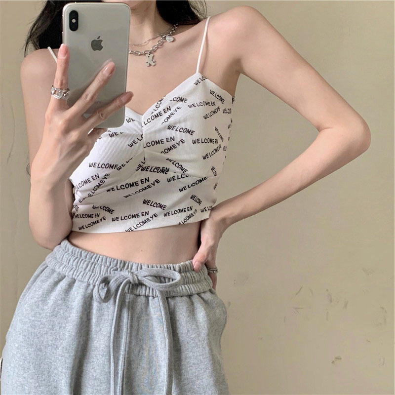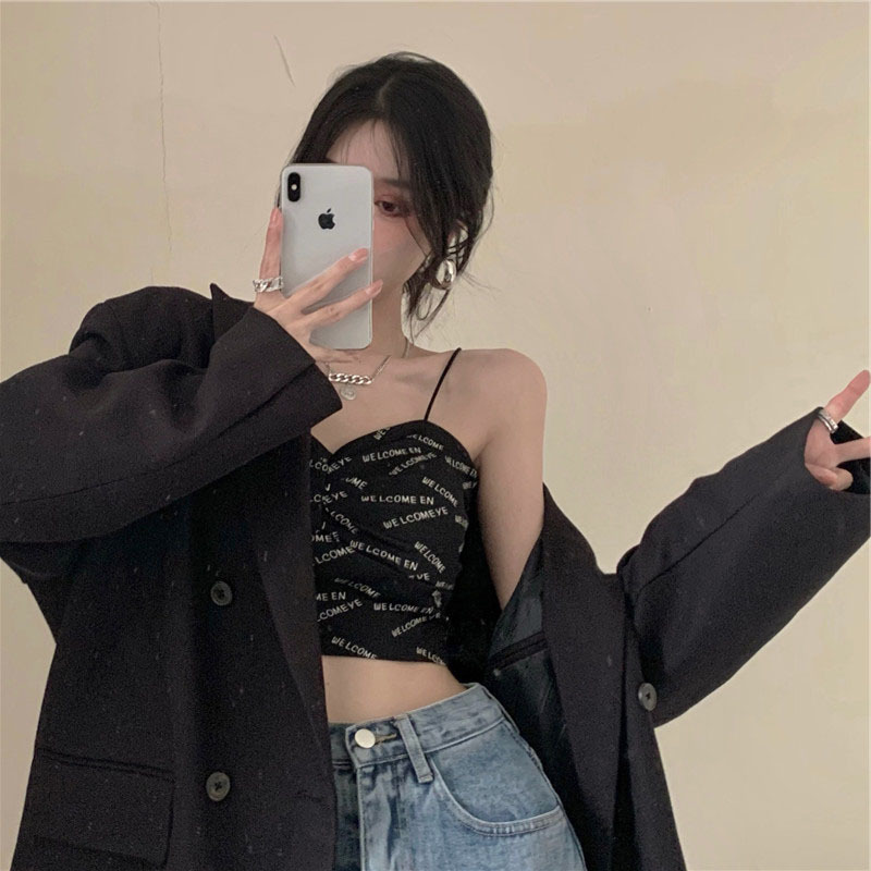 买一送一辣妹印花打底黑色吊带带胸垫背心女内搭夏季性感纯欲春季短款上衣