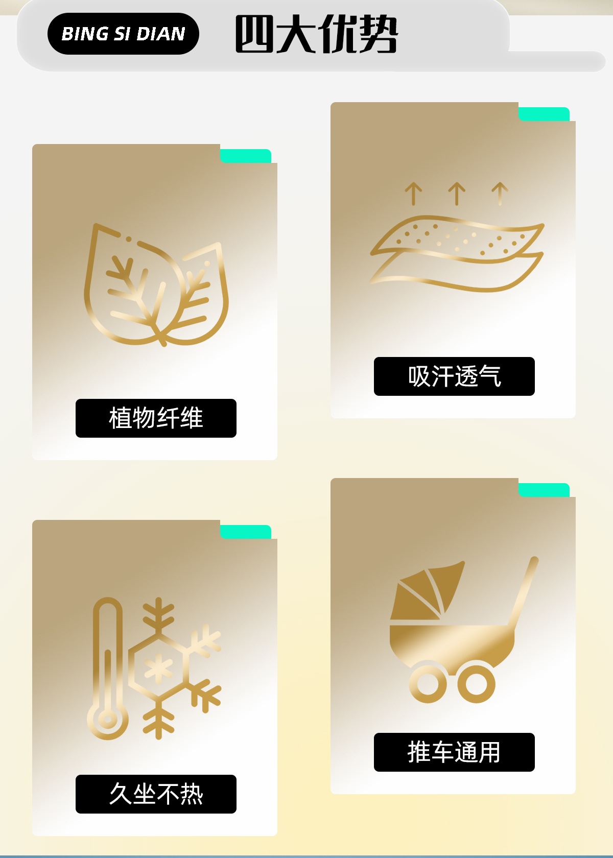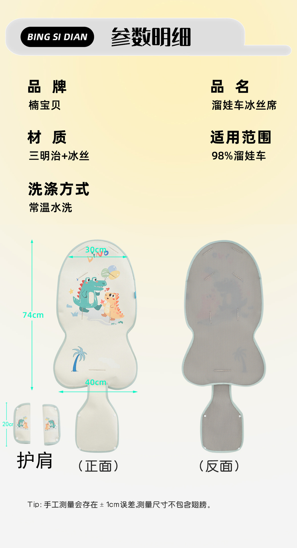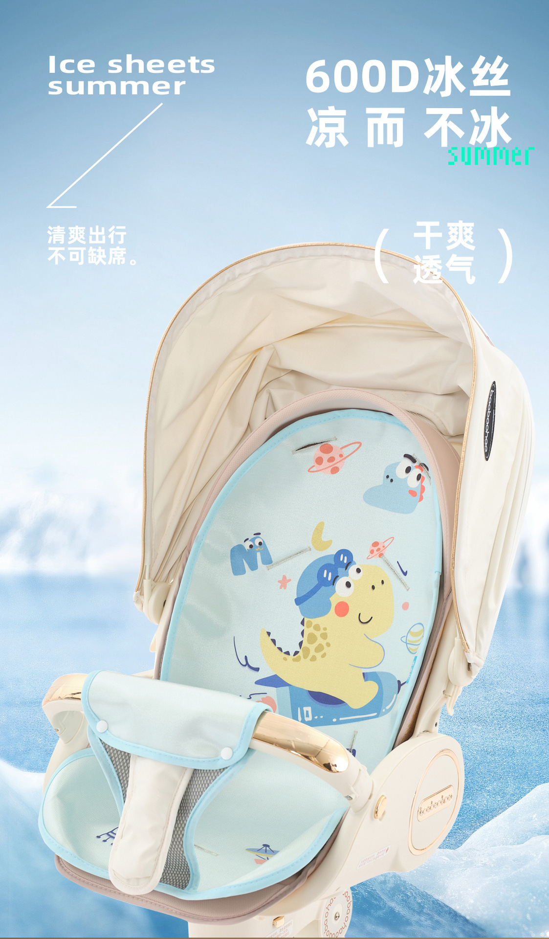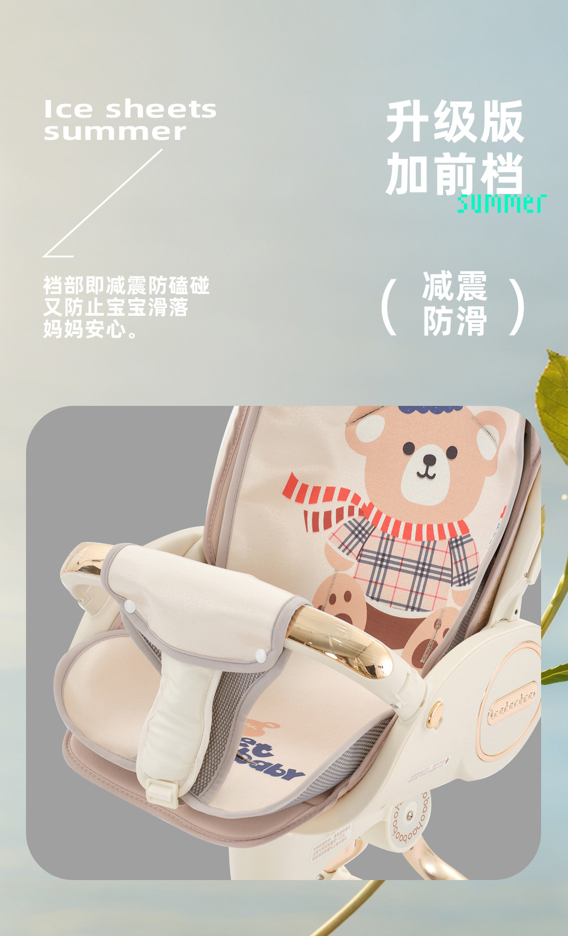 宝宝好V9冰丝凉席婴儿车a类坐垫带护档夏季宝宝安全椅可机洗坐垫