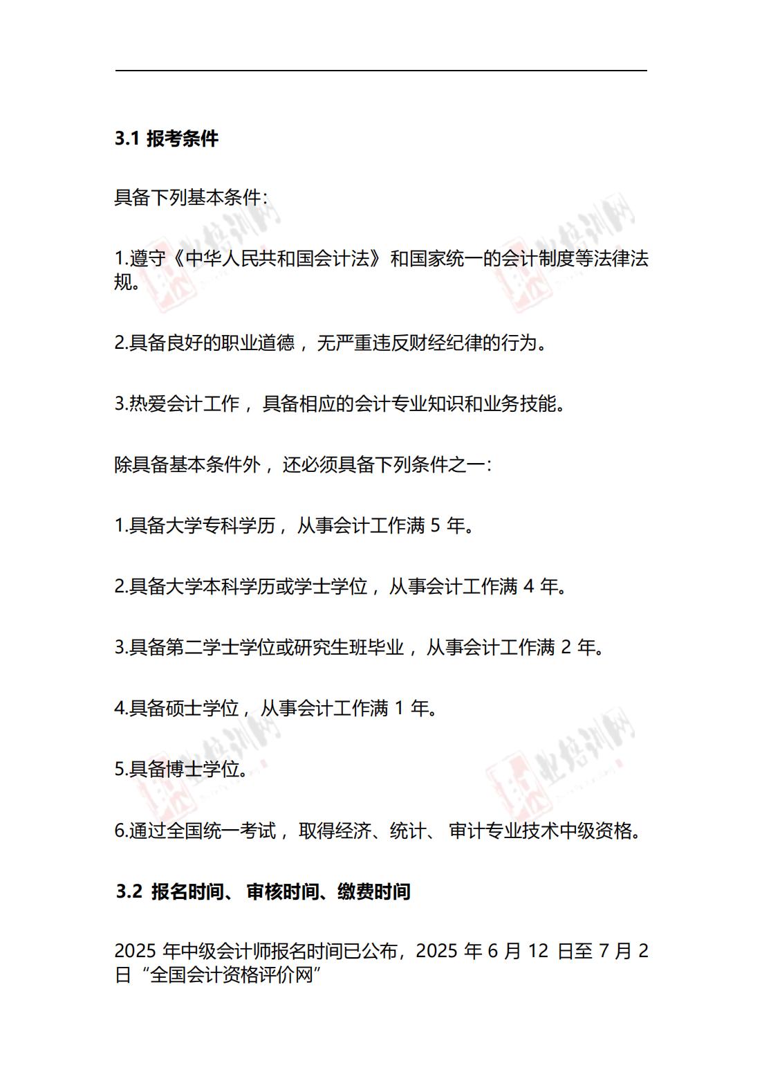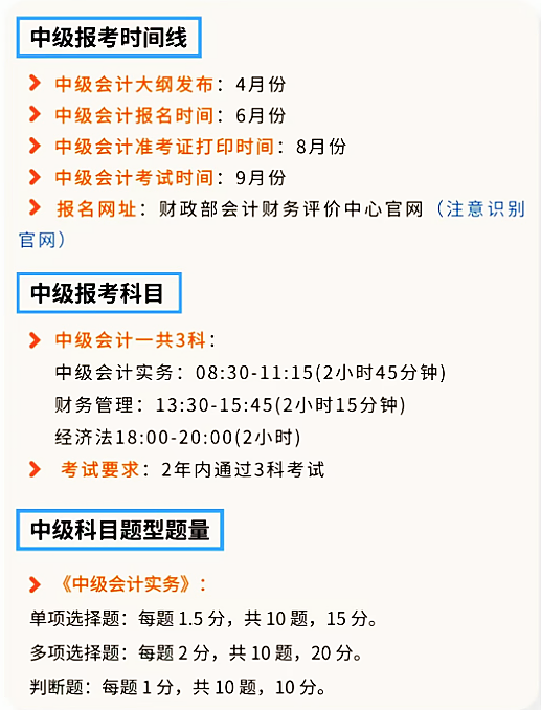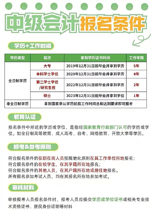 中级会计师报名条件/考试时间:
