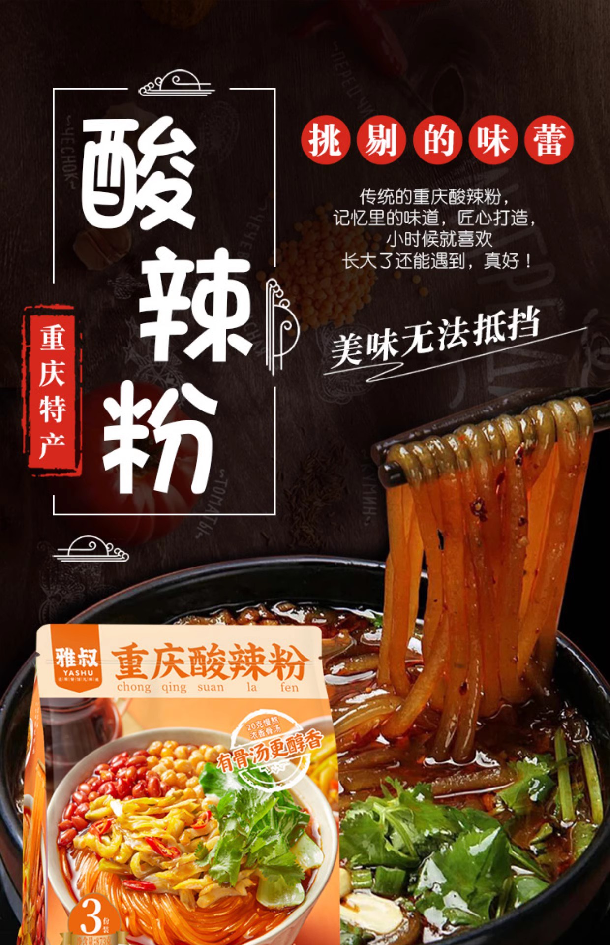 重庆特产【雅叔酸辣粉873g】三份装291*3袋