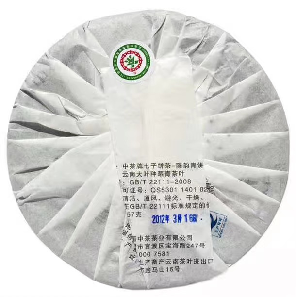 【中茶陈韵青饼】2012年中茶牌陈韵青饼普洱生茶357克普洱茶生茶