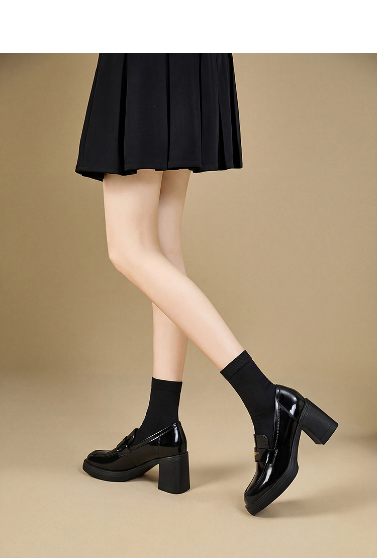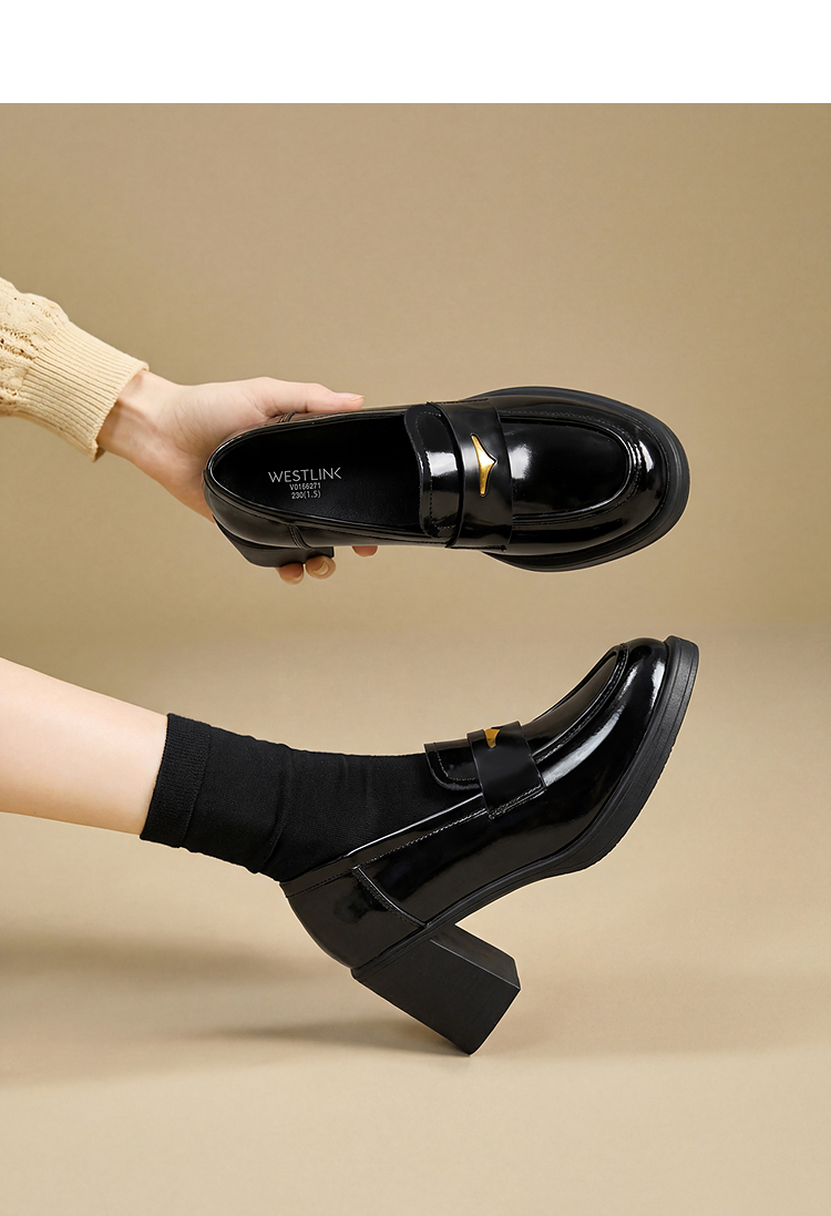 西遇粗高跟乐福鞋女2026春季新款英伦风复古小皮鞋圆头不累脚单鞋V0166271