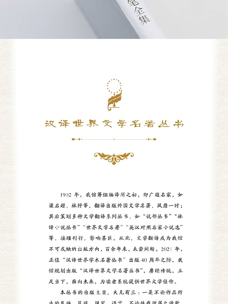 ·世界文学,完整呈现:不计代价,长期积累,力求成就反映世界文学经典全貌的汉译精品丛书。