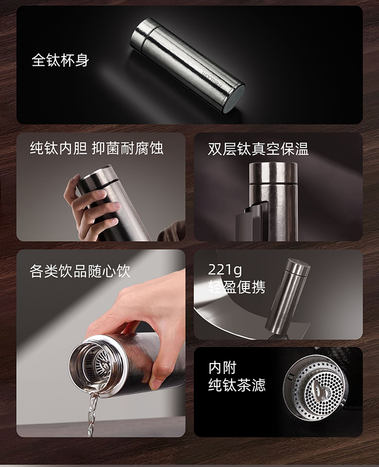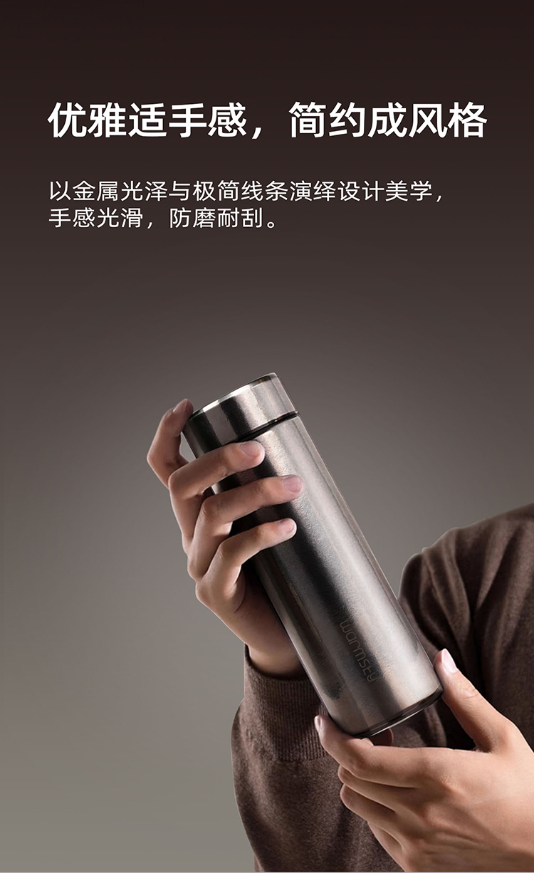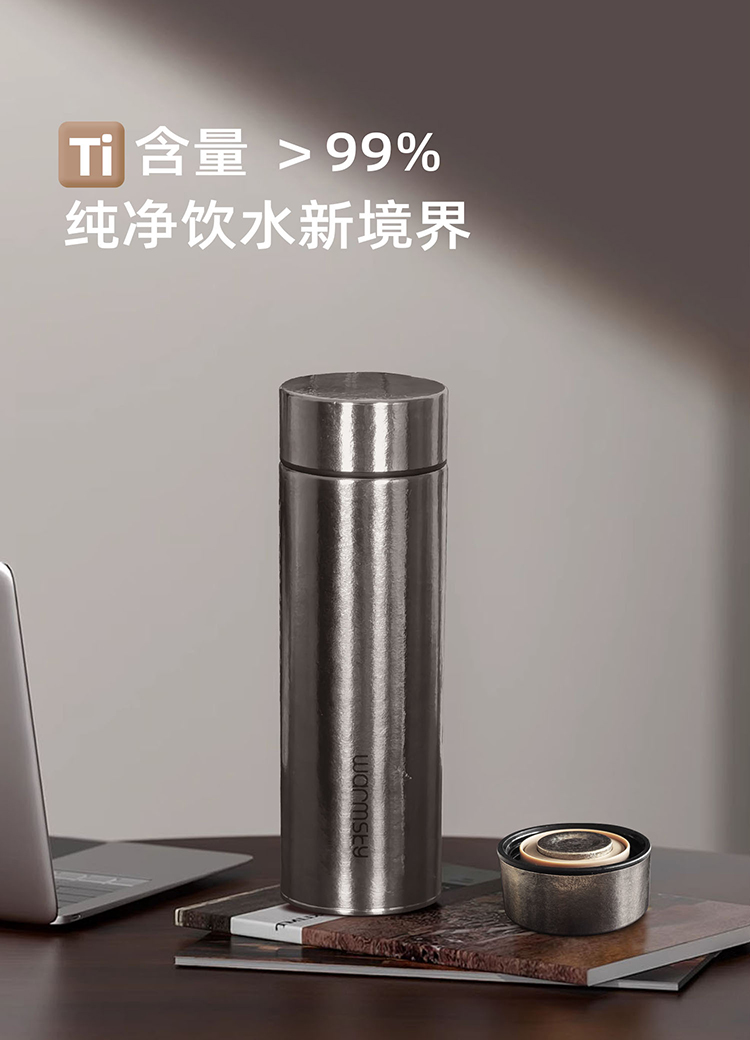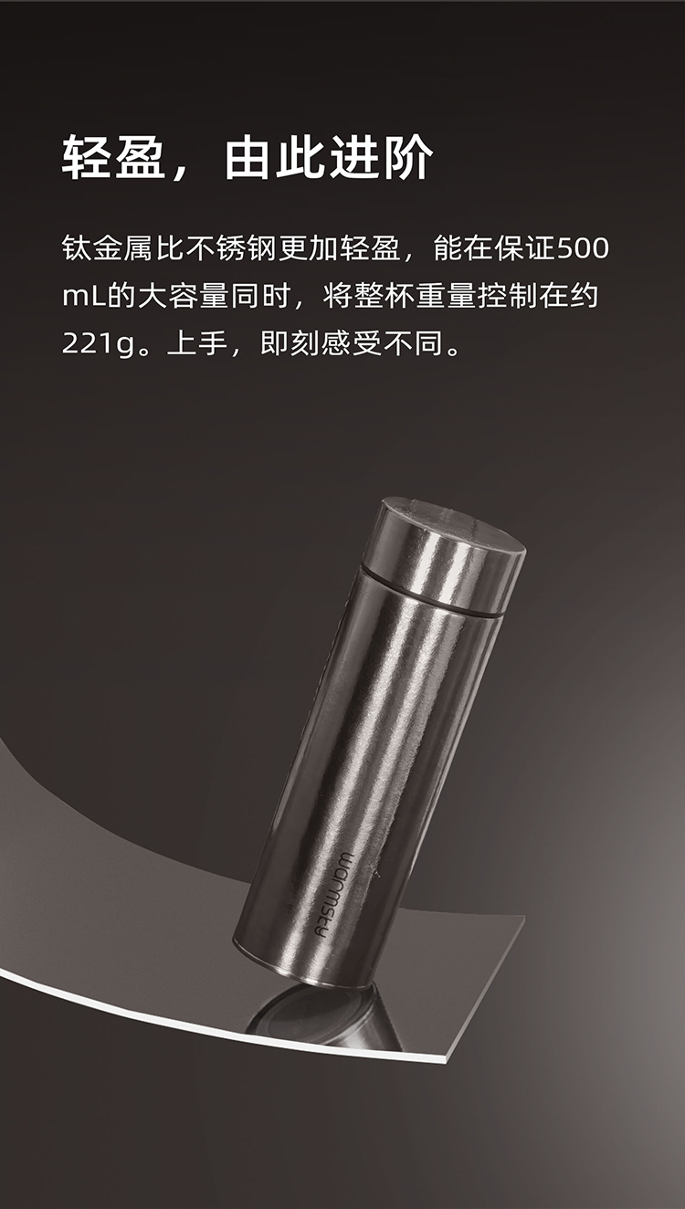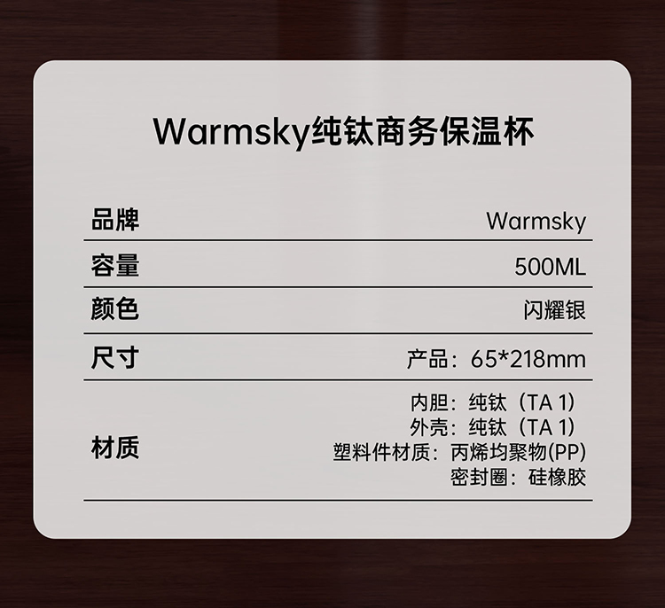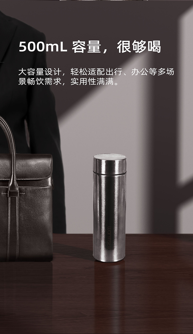 WARMSKY双层纯钛保温杯茶水分离杯 抗菌99%大容量便携杯子高档送礼水杯 闪耀银 500ml