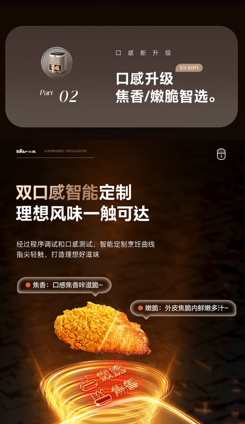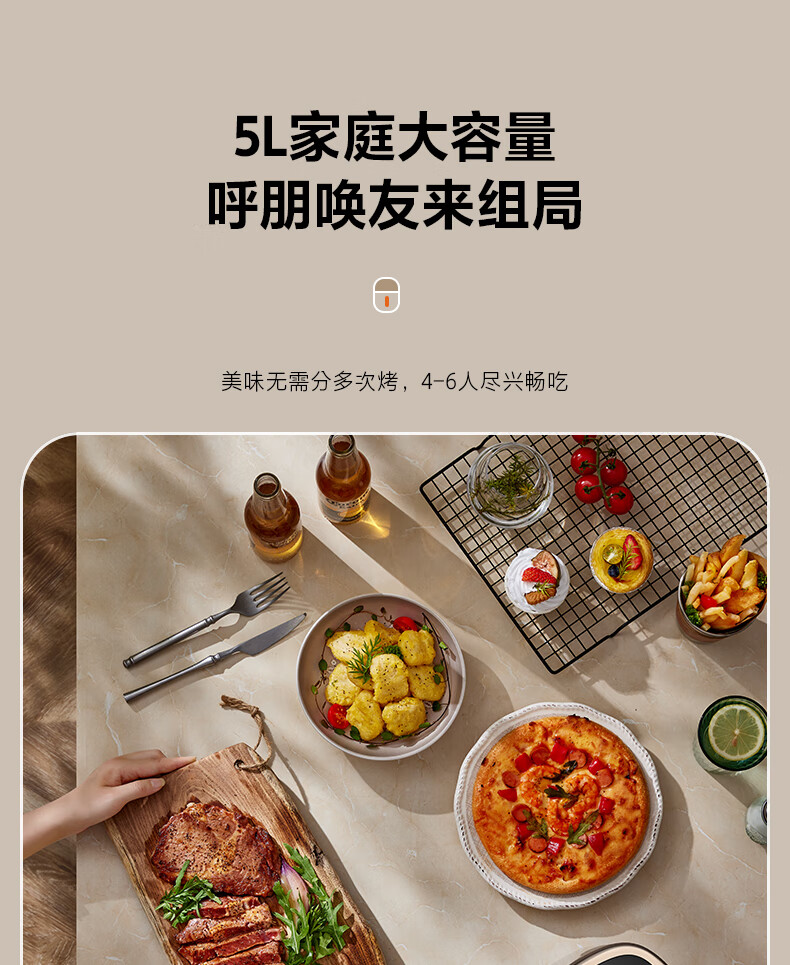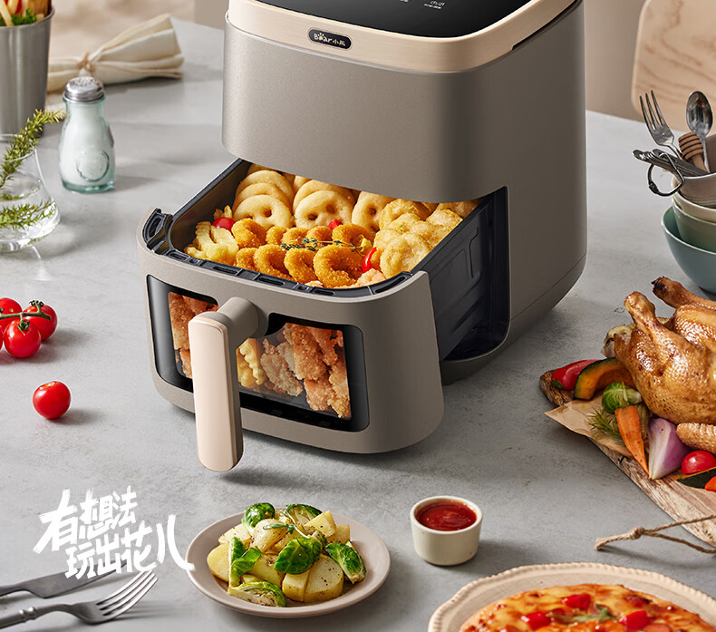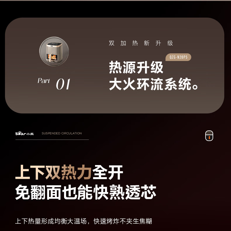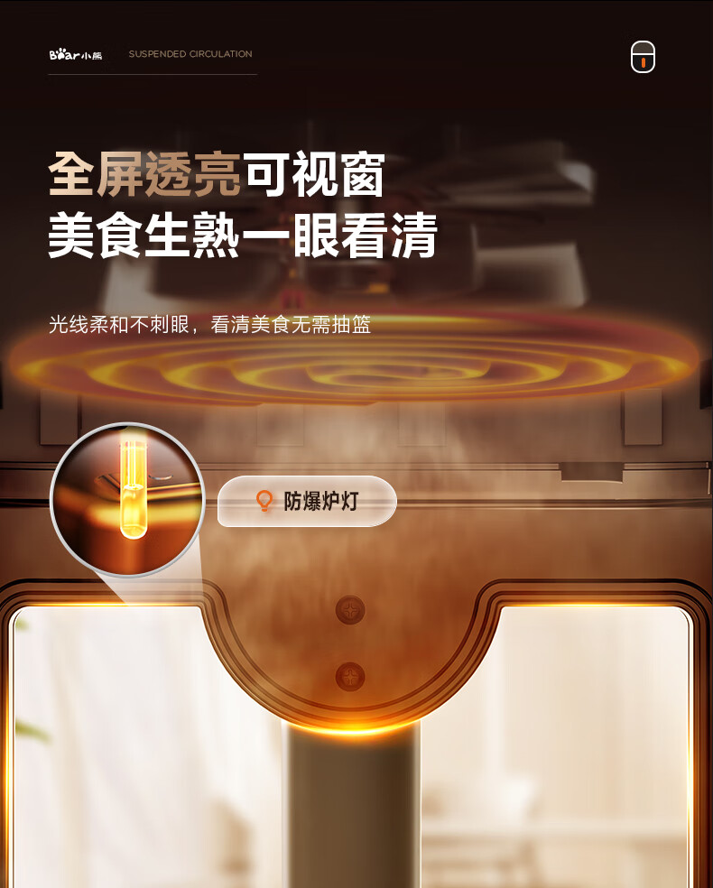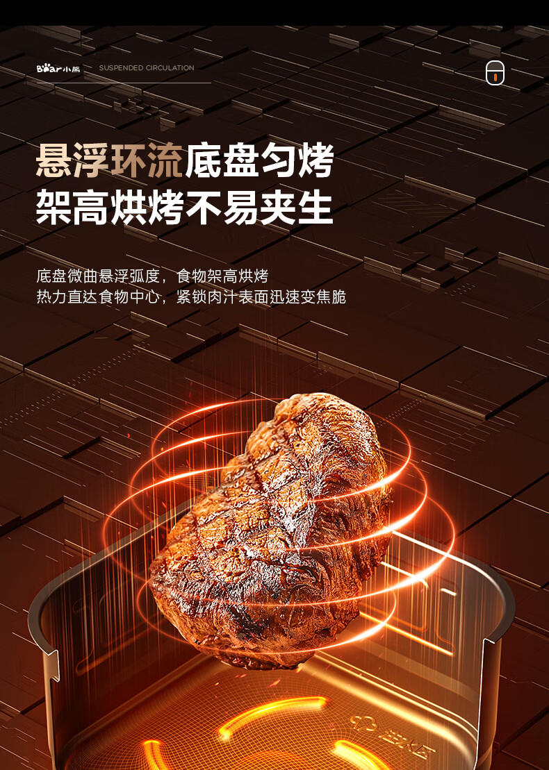 小熊(Bear)空气炸锅 炎烤 不用翻面 双热源 全自动 5L实用大容量 可视 智能彩控 炸烤箱一体机 智能QZG-N20P5 淘气
