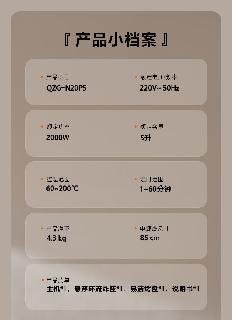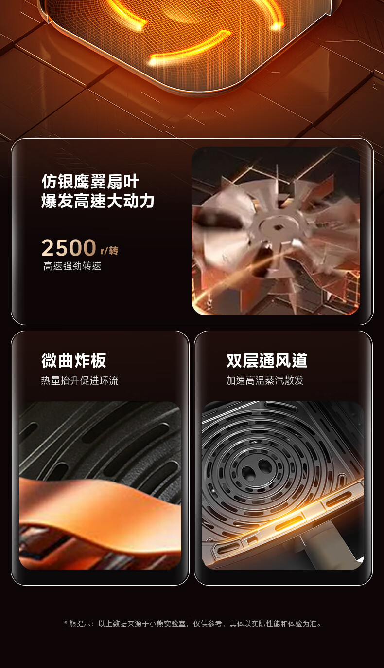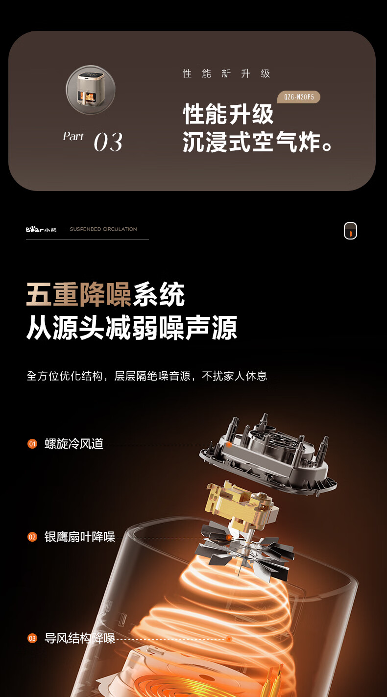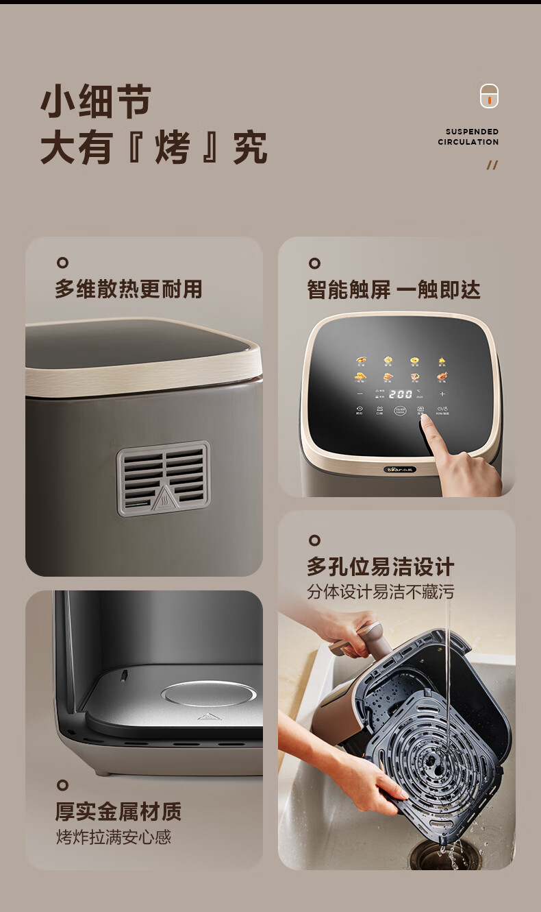 小熊(Bear)空气炸锅 炎烤 不用翻面 双热源 全自动 5L实用大容量 可视 智能彩控 炸烤箱一体机 智能QZG-N20P5 淘气