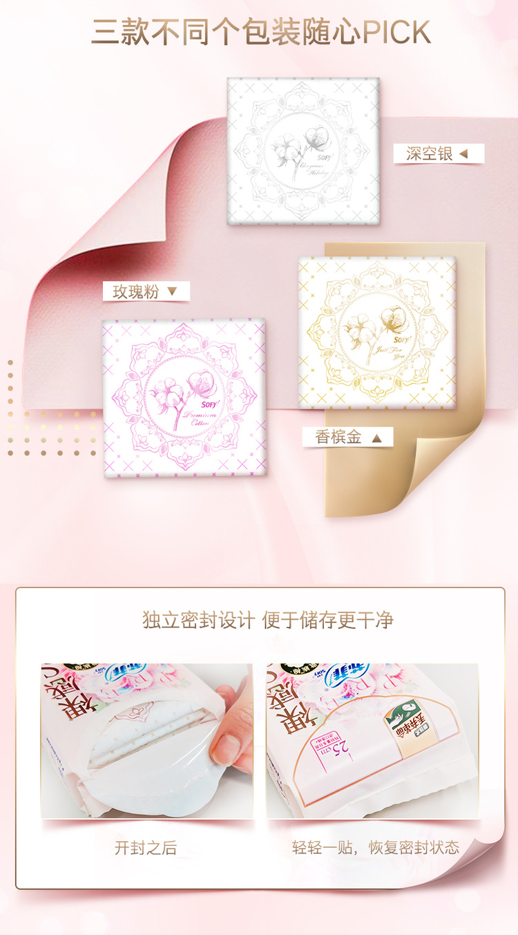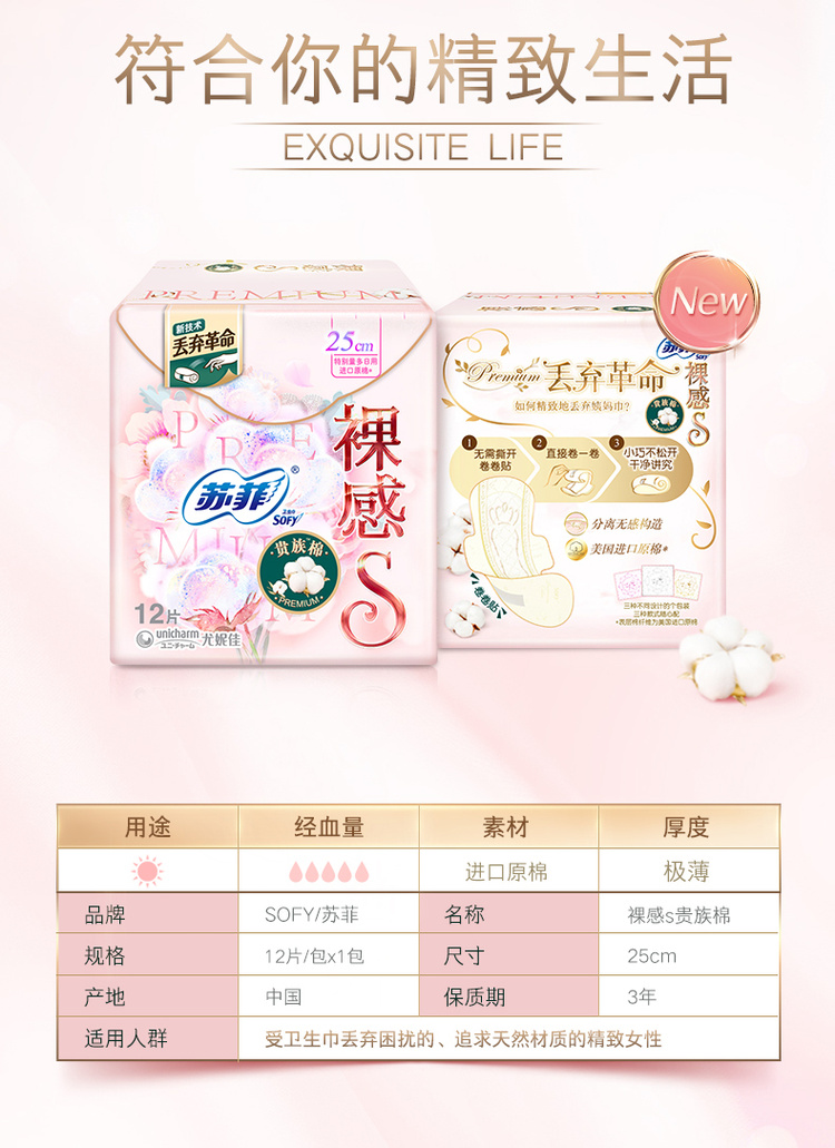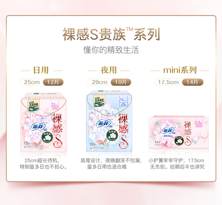 苏菲Sofy 裸感S进口原棉贵族棉系列日用卫生巾250mm 12片 超薄柔软无感量多日用姨妈巾