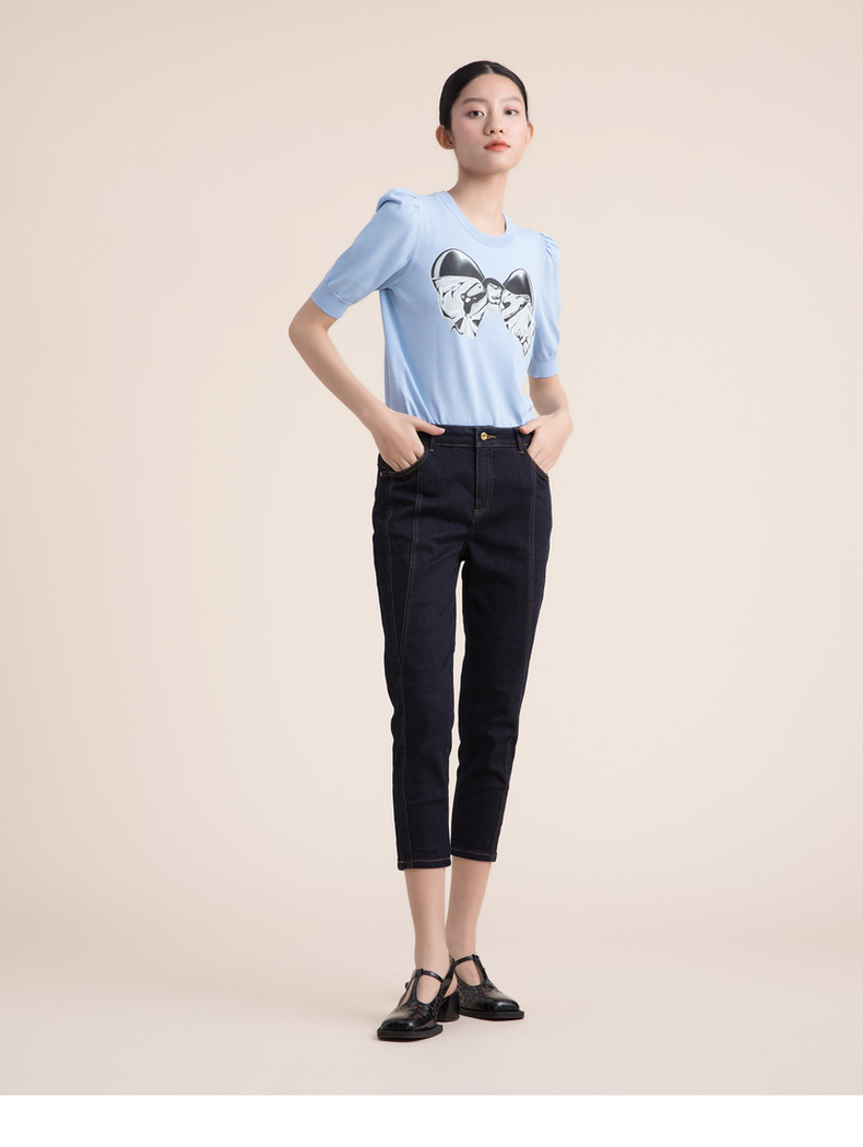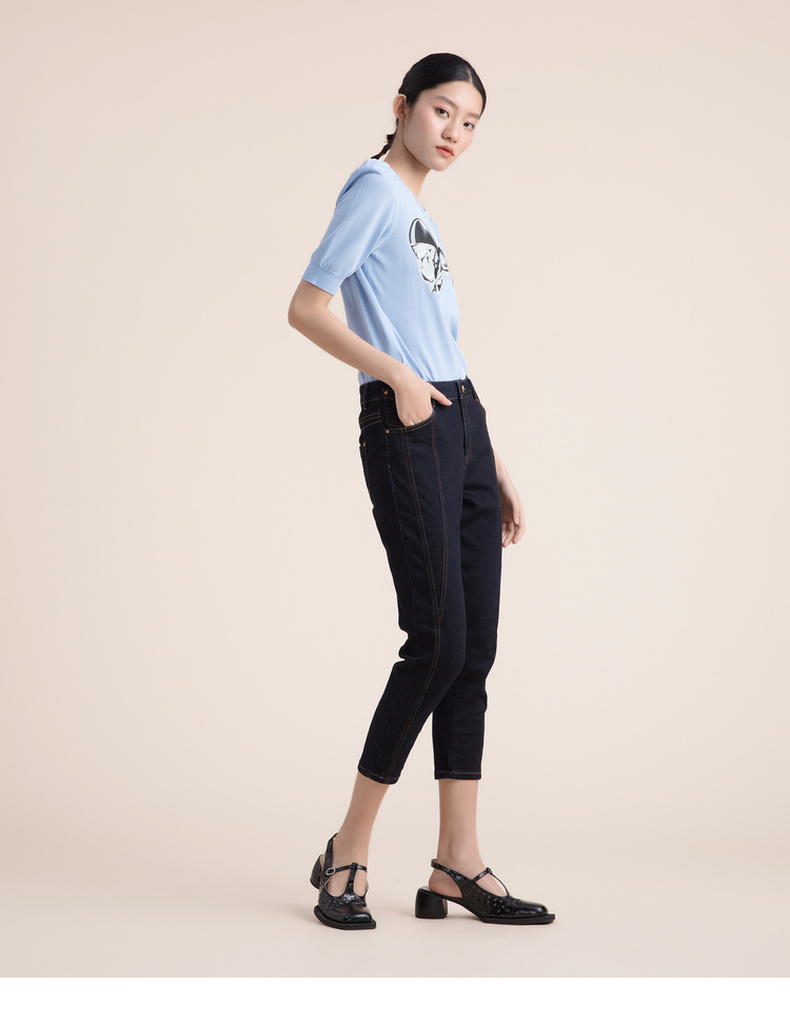 谜底牛仔裤女2022夏季新款复古高腰显瘦减龄休闲裤222MK0563