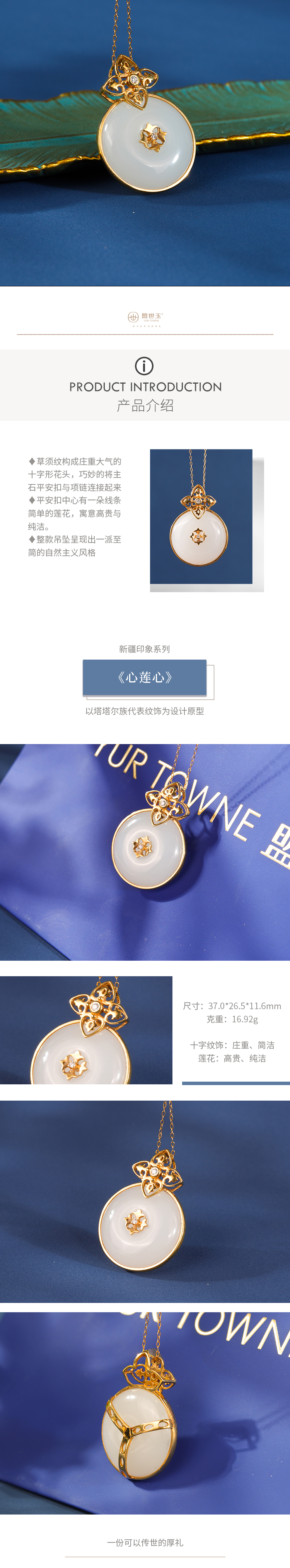 新疆国玉盟世玉和田玉金镶羊脂玉挂件 新疆系列【心莲心】【带证书·顺丰物流】