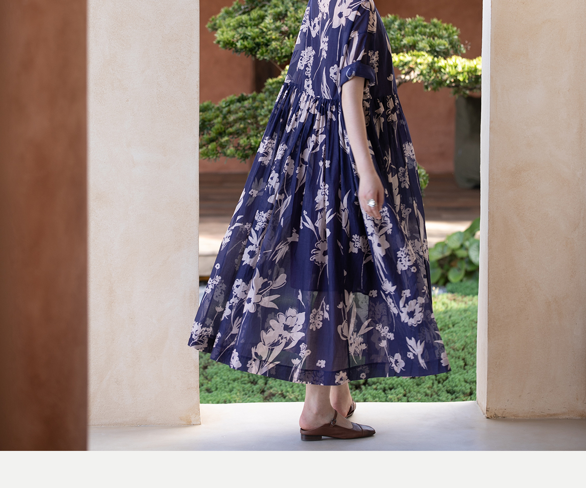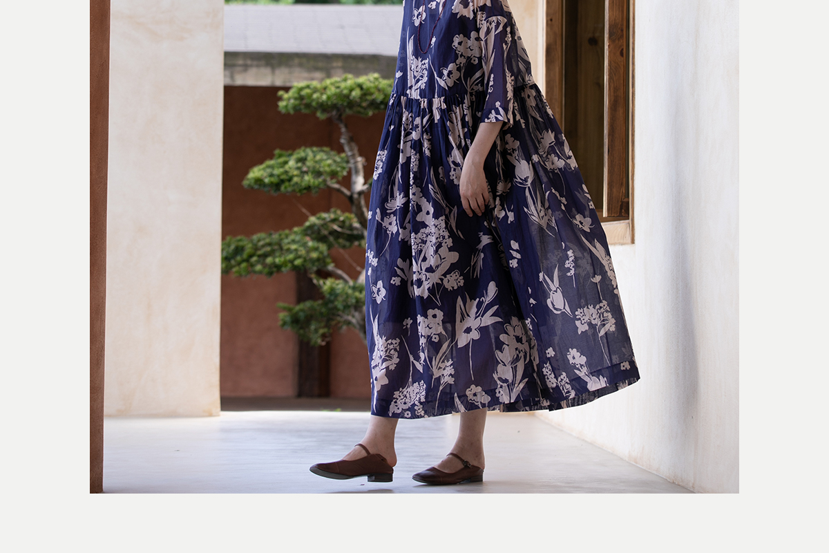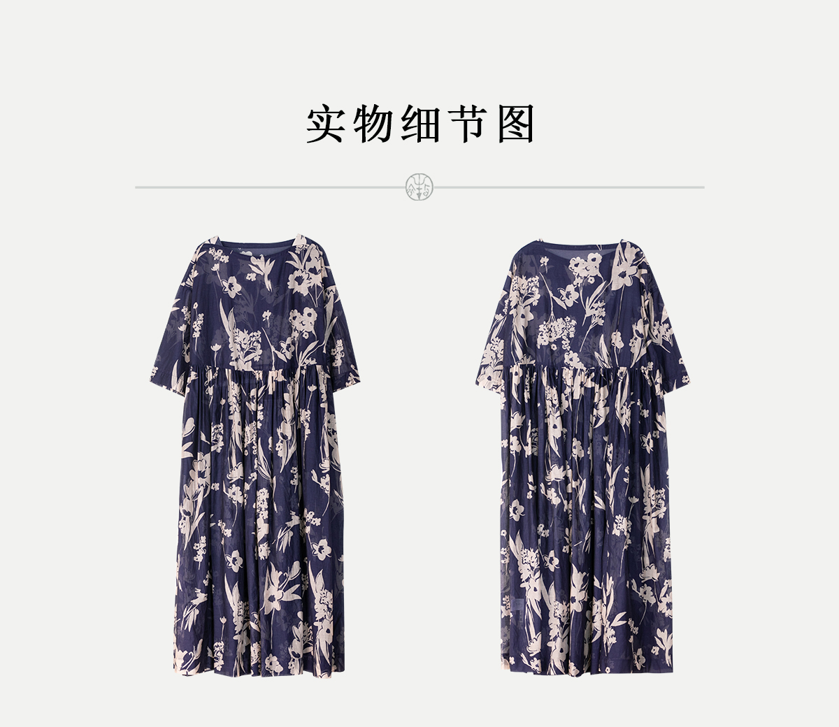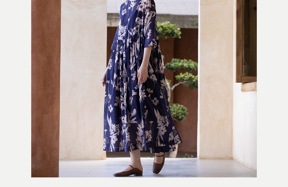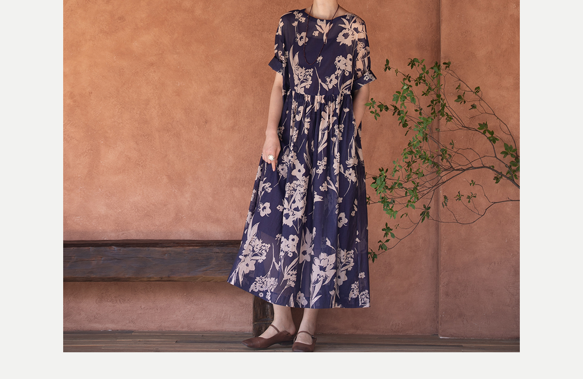 牧衣游原创 印花丝棉连衣裙新款轻薄设计艺术感宽松气质长裙 赫野
