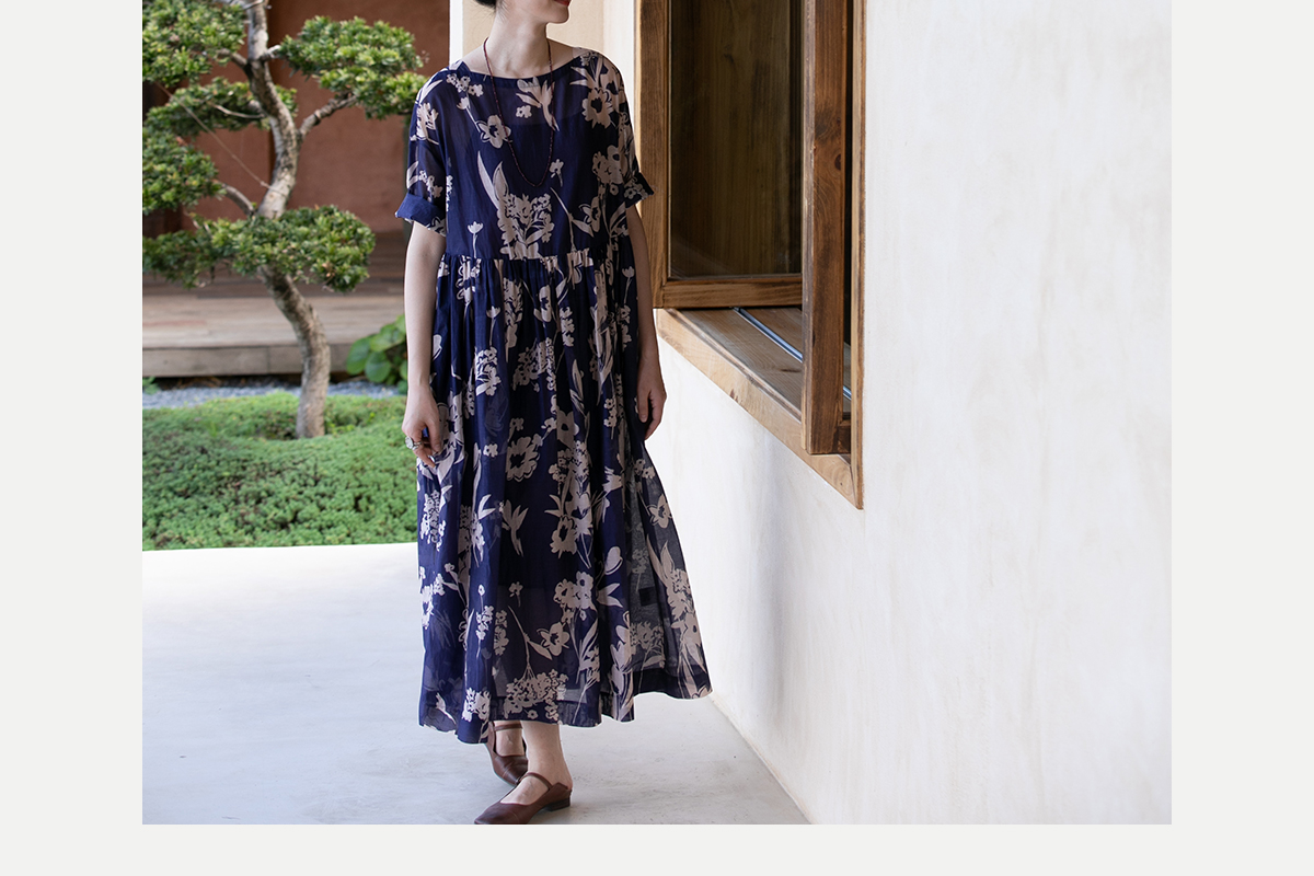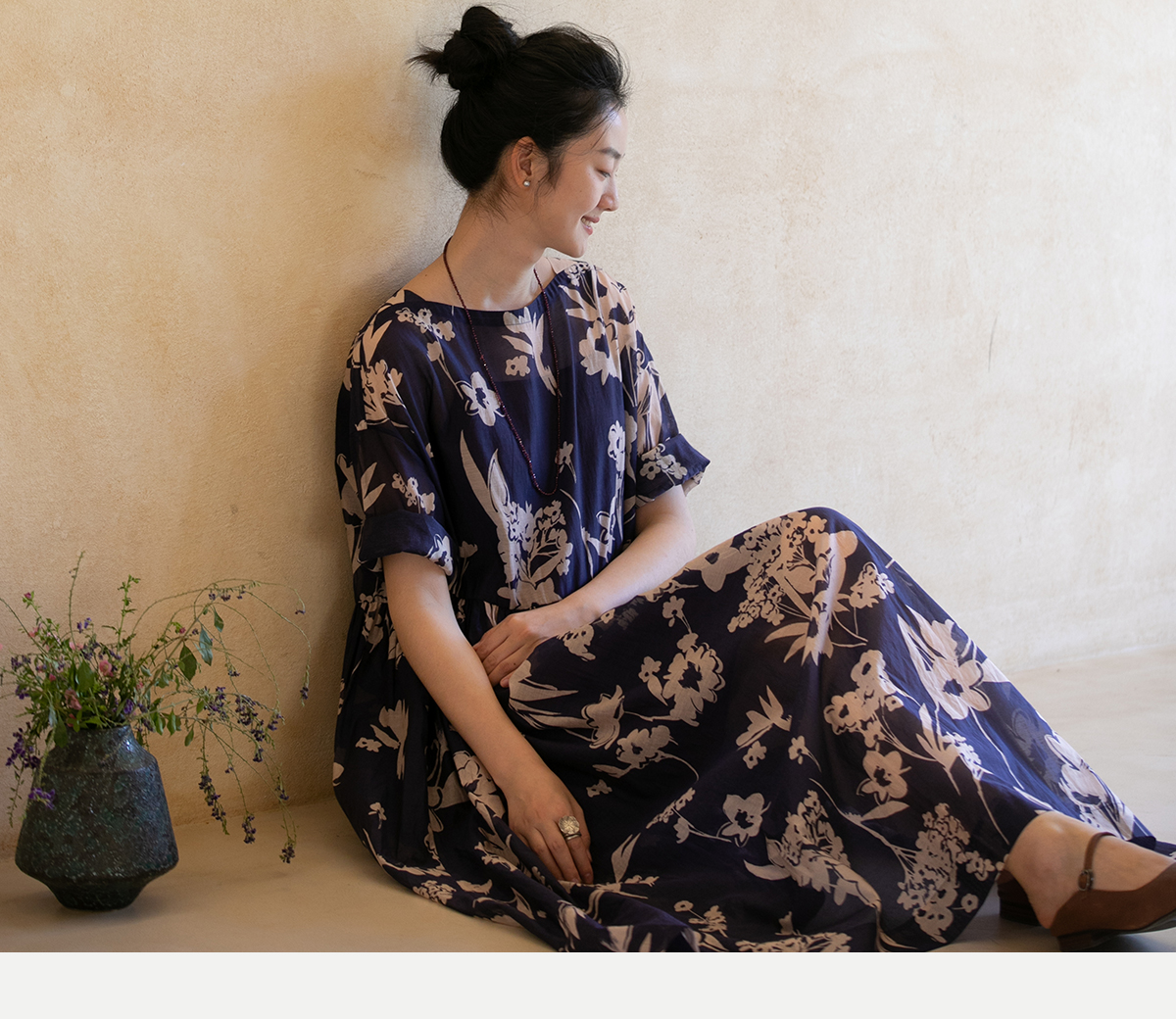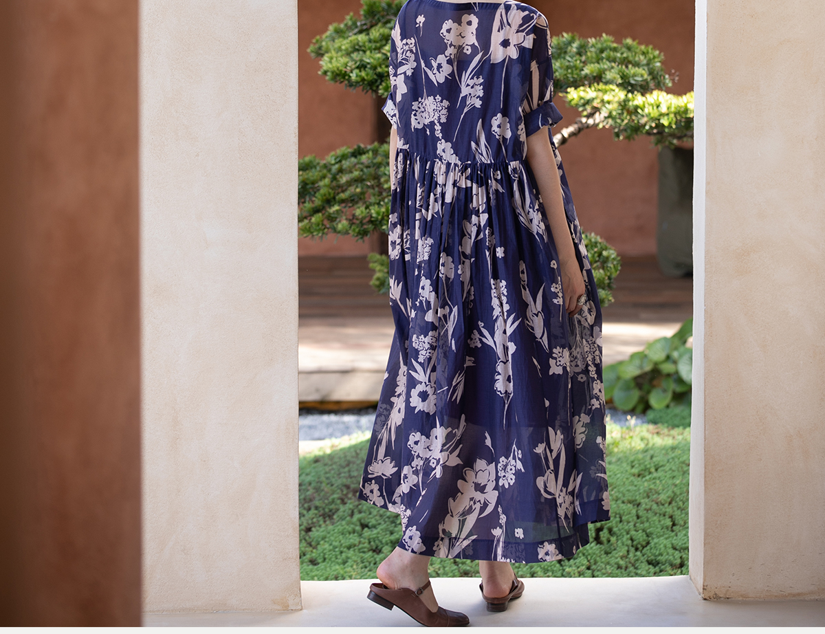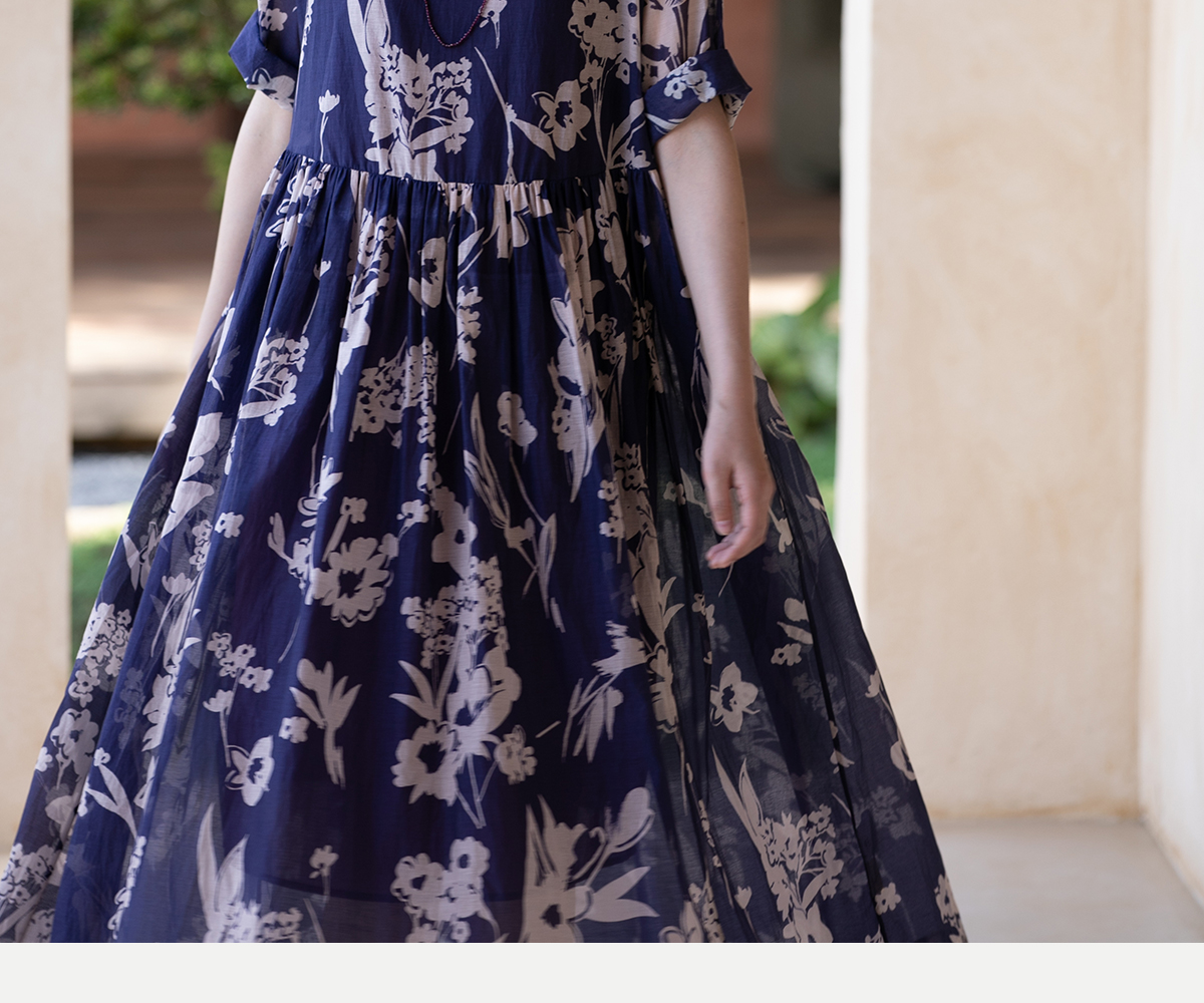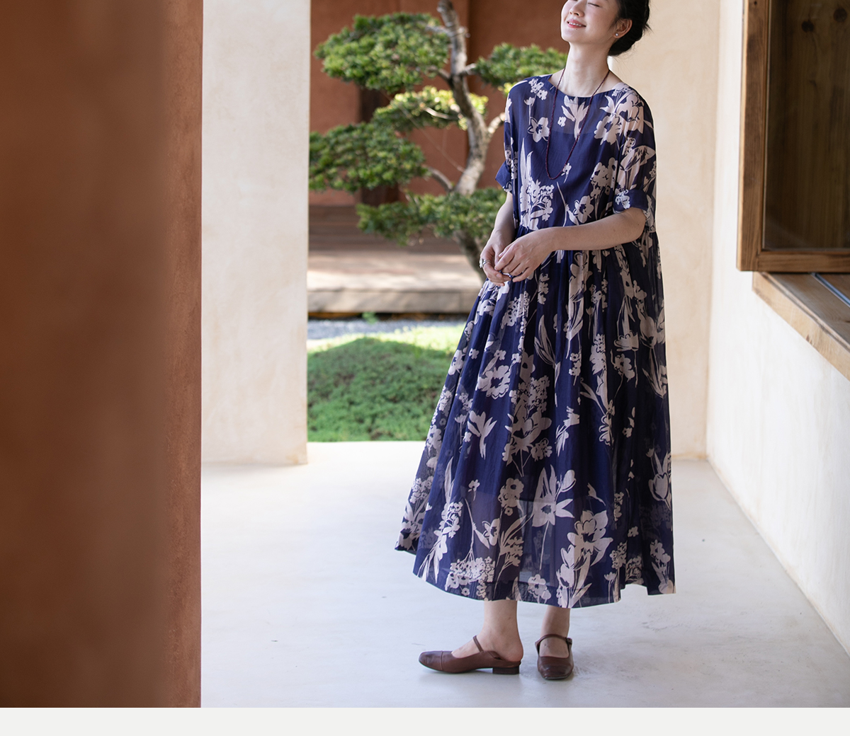 牧衣游原创 印花丝棉连衣裙新款轻薄设计艺术感宽松气质长裙 赫野