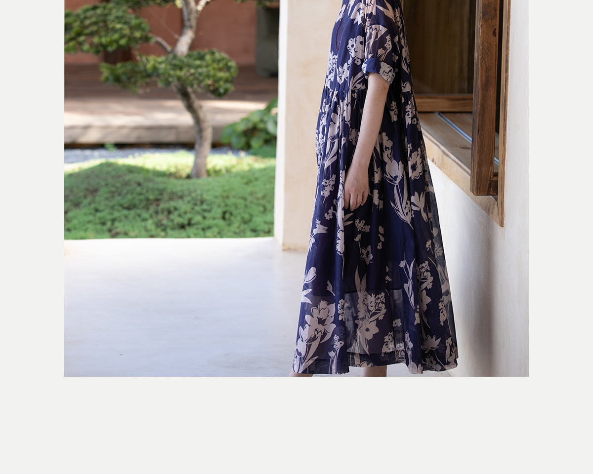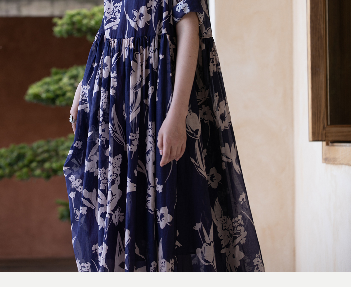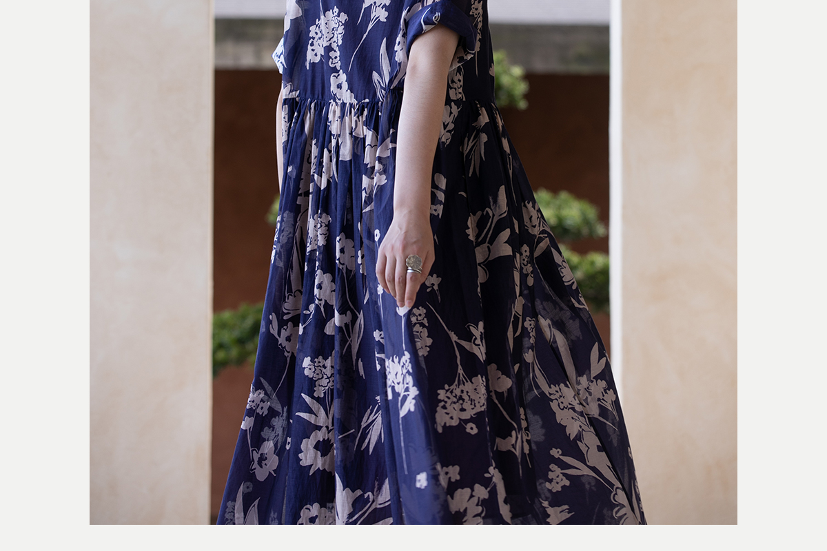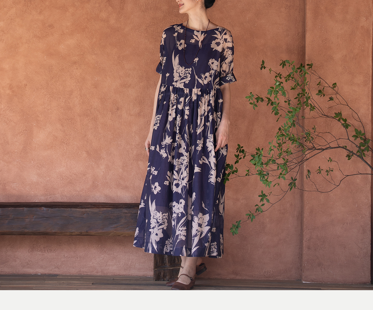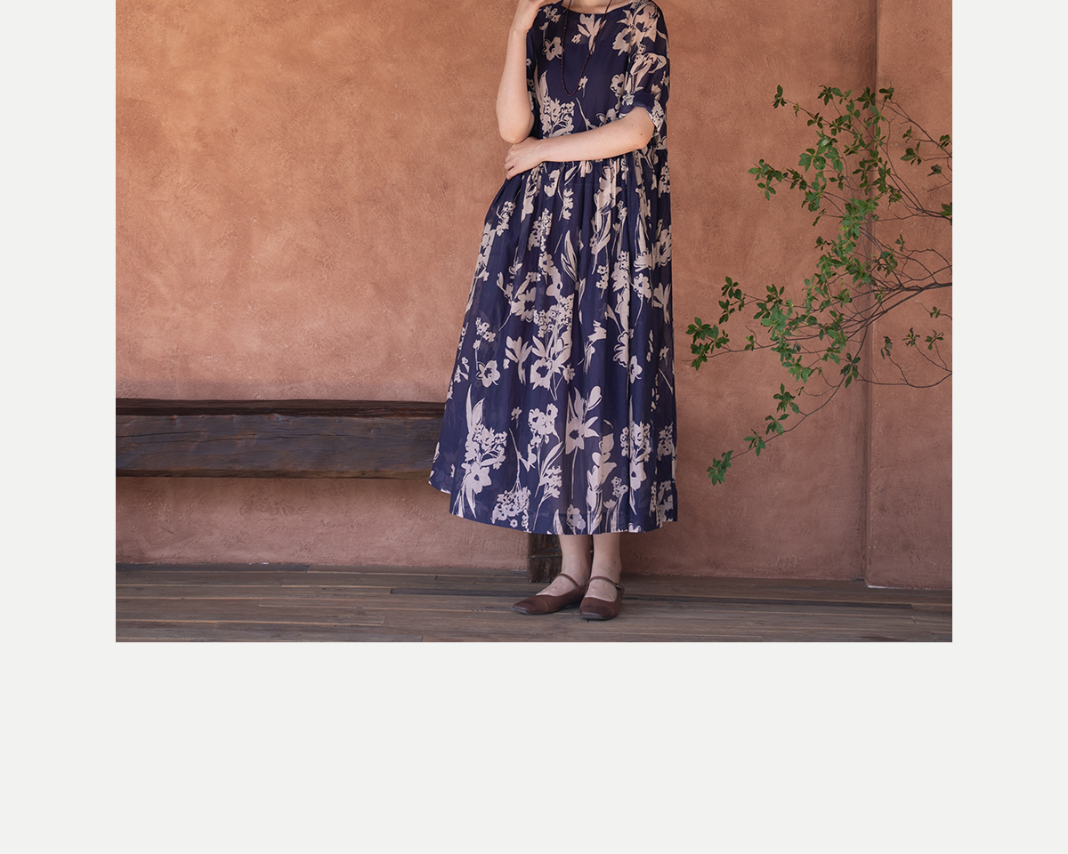 牧衣游原创 印花丝棉连衣裙新款轻薄设计艺术感宽松气质长裙 赫野