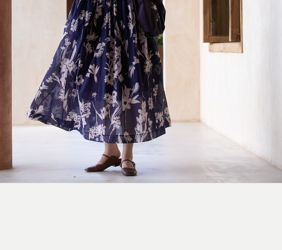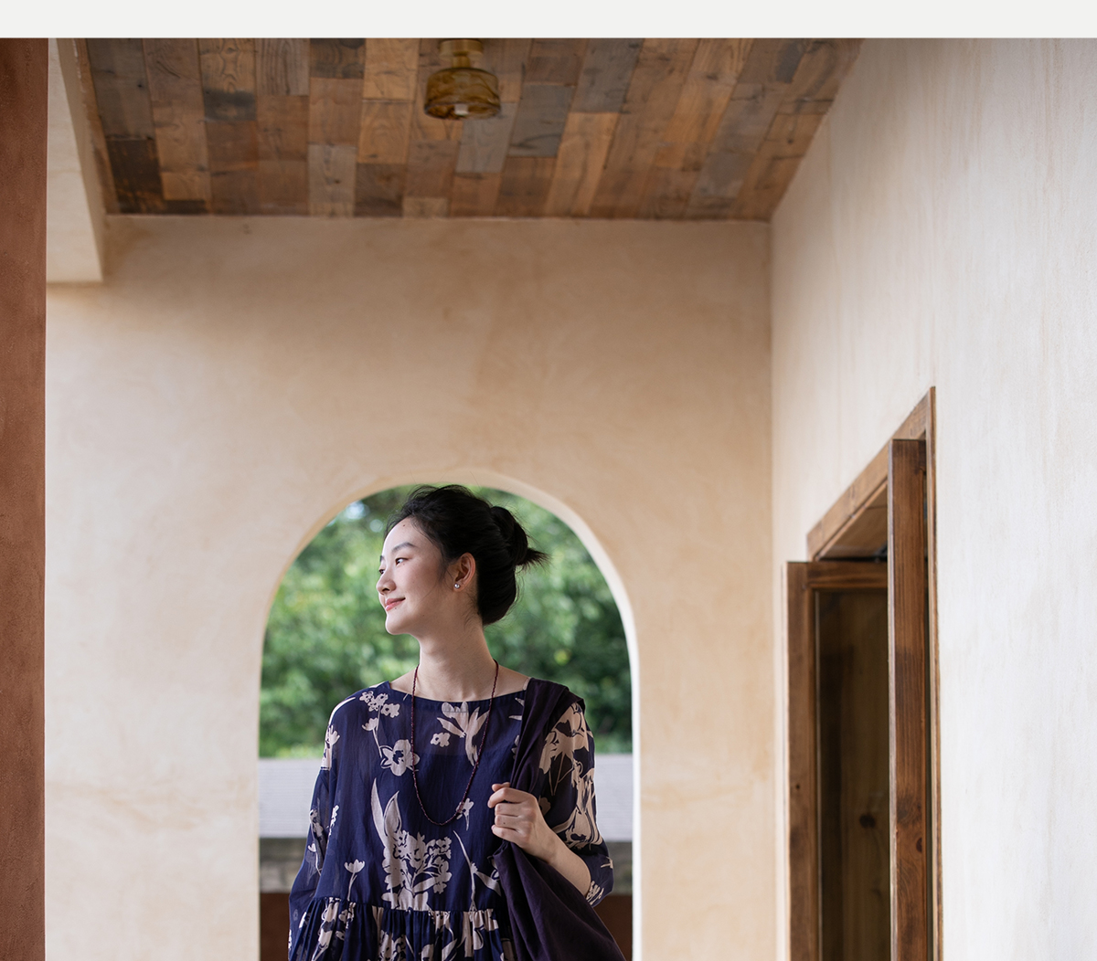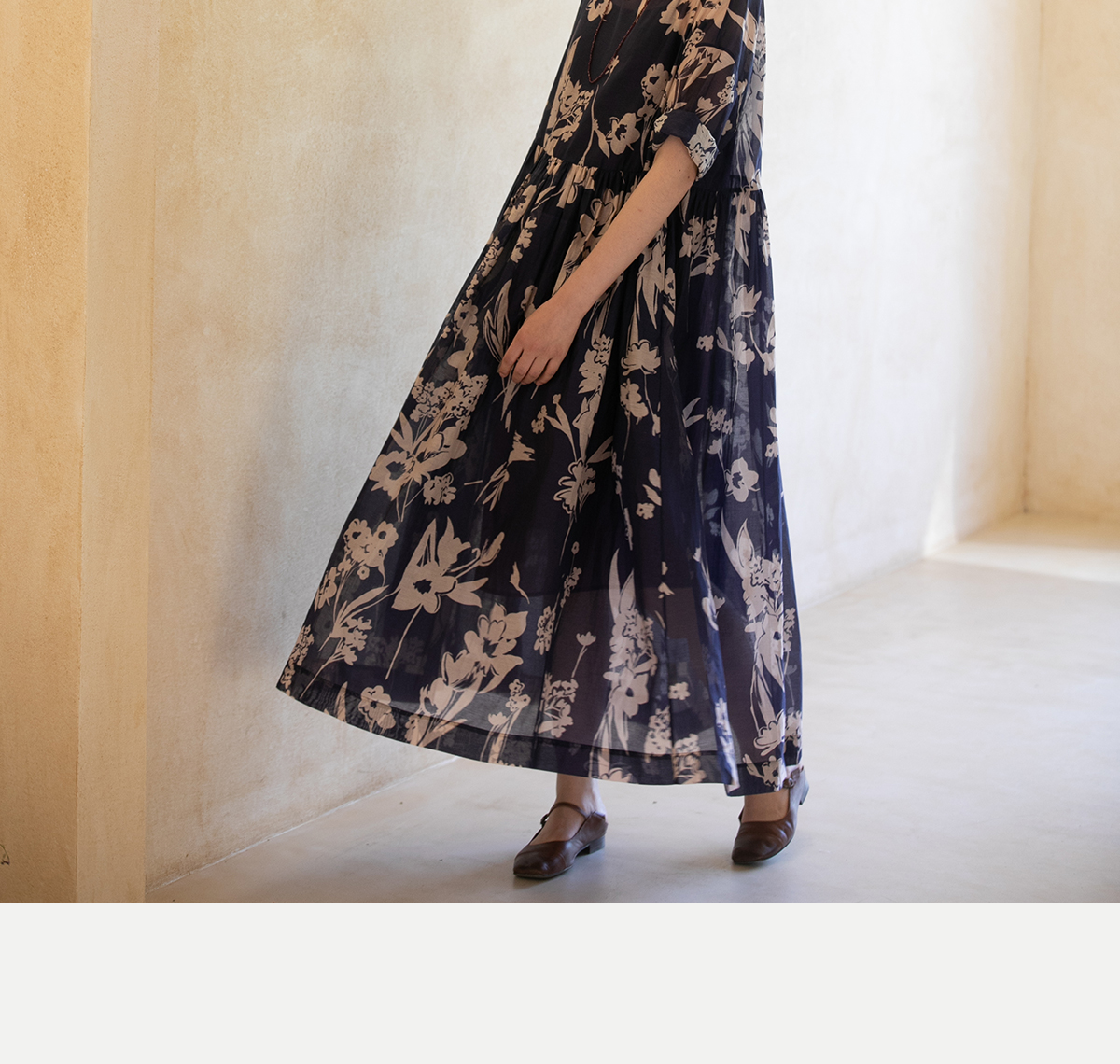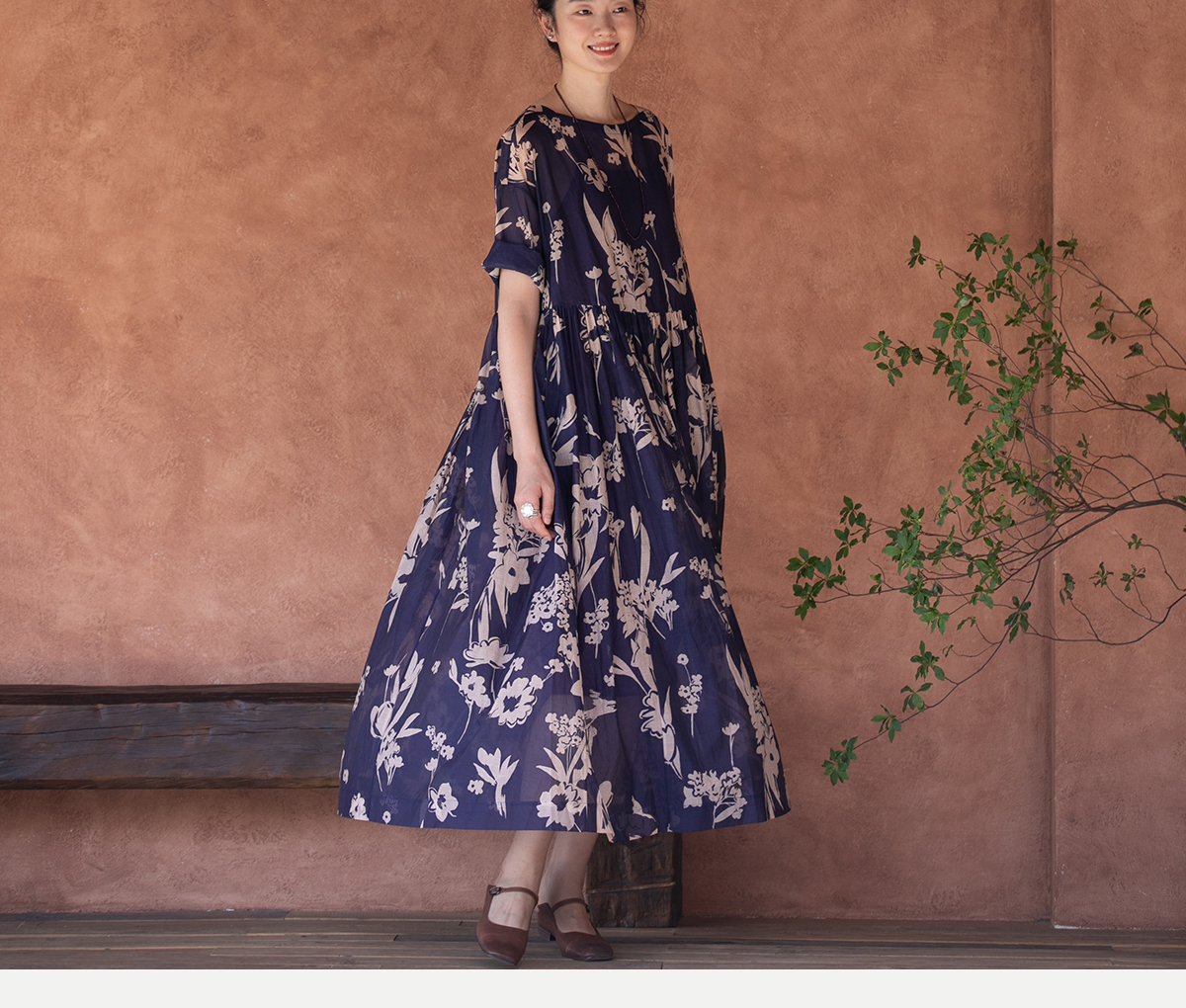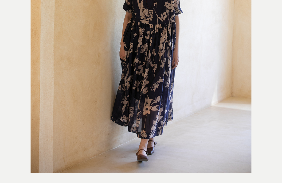 牧衣游原创 印花丝棉连衣裙新款轻薄设计艺术感宽松气质长裙 赫野