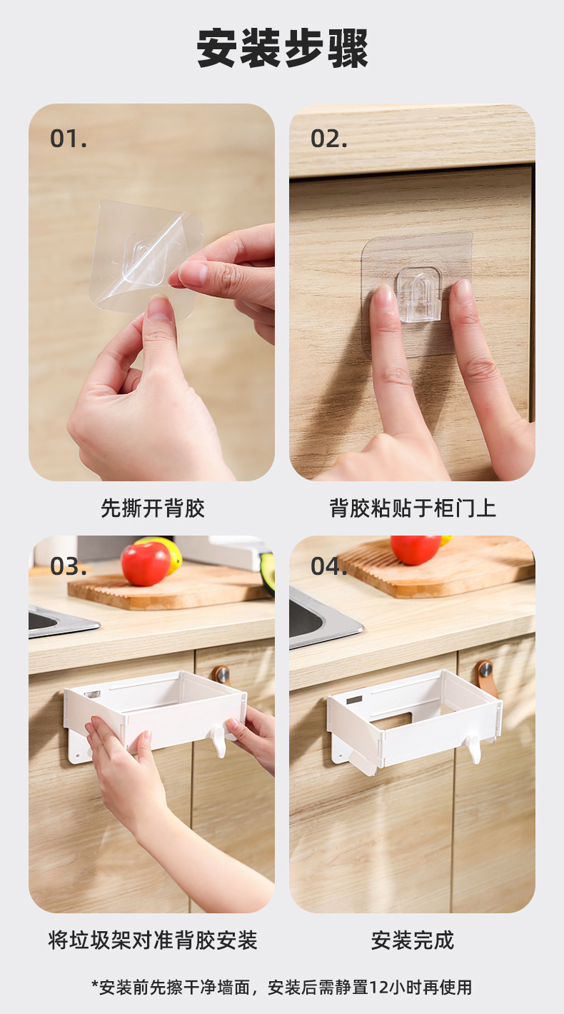 壁挂式可折叠垃圾架橱柜门卫生间桌面折叠收纳垃圾袋支架厨房收纳