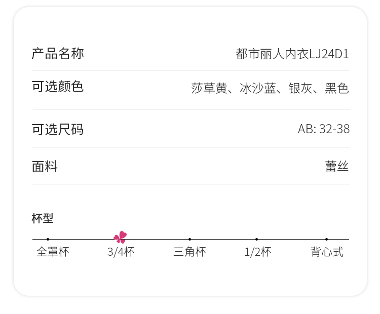 都市丽人少女三步优选AB杯调整型文胸锁边AB:中厚3/4杯少女文胸四排扣无钢圈LJ24D1