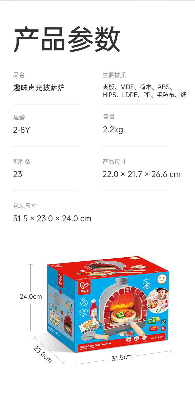 Hape趣味声光披萨炉烤箱儿童过家家玩具早教益智男孩女孩生日礼物