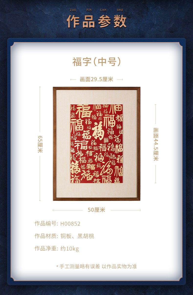 铜师傅 铜板立体书法作品《福字(中号)》书房客厅装饰画背景画