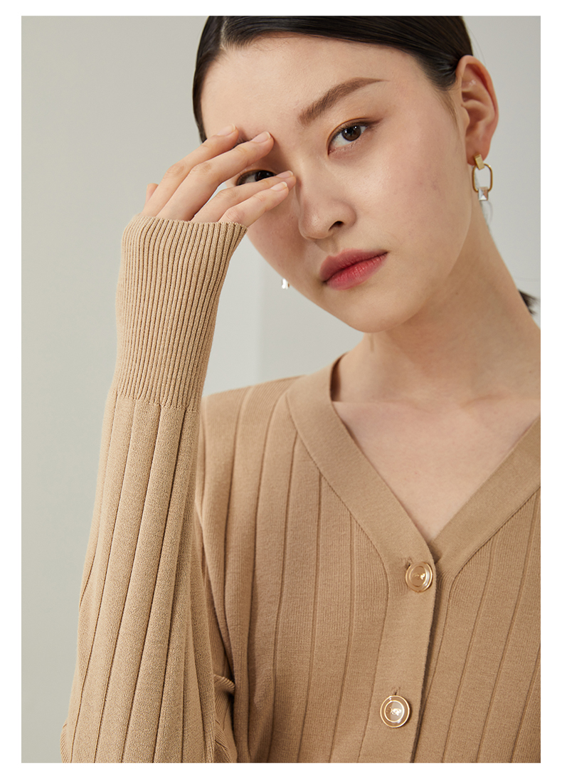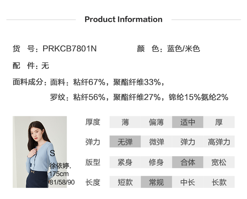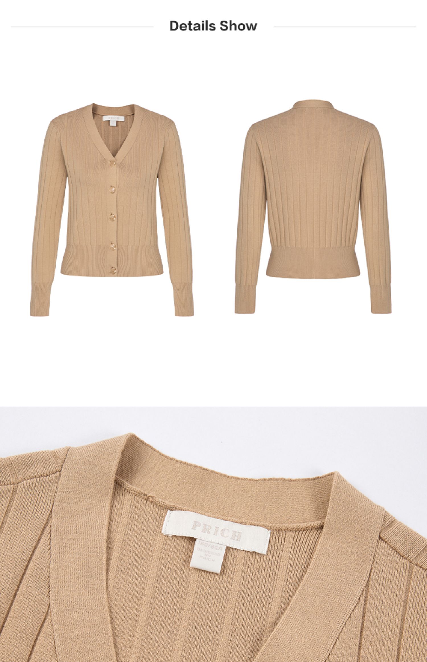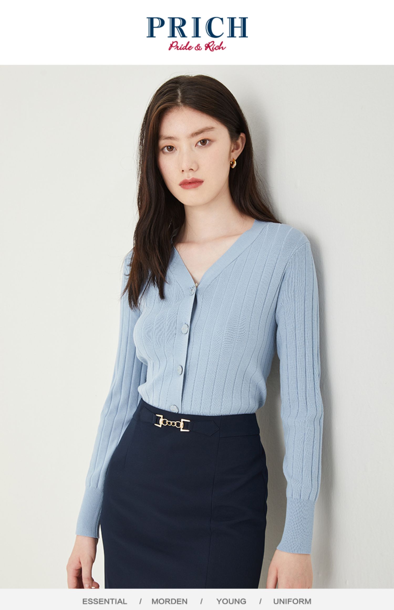 PRICH2021年新款外套气质修身ⅴ领休闲纯色针织开衫PRKCB7801N