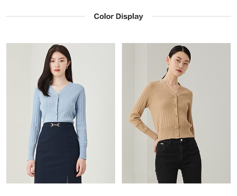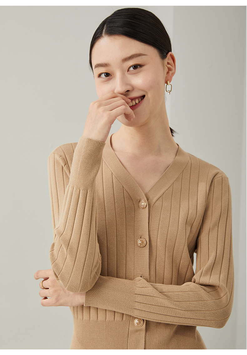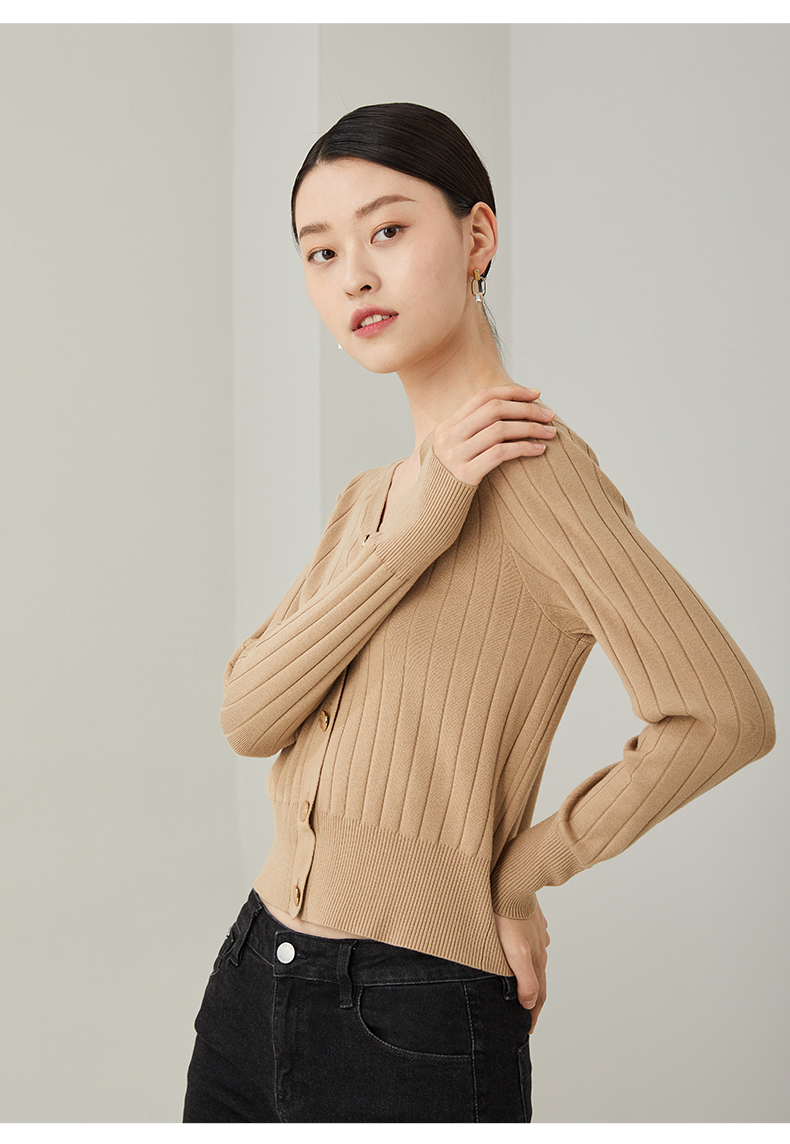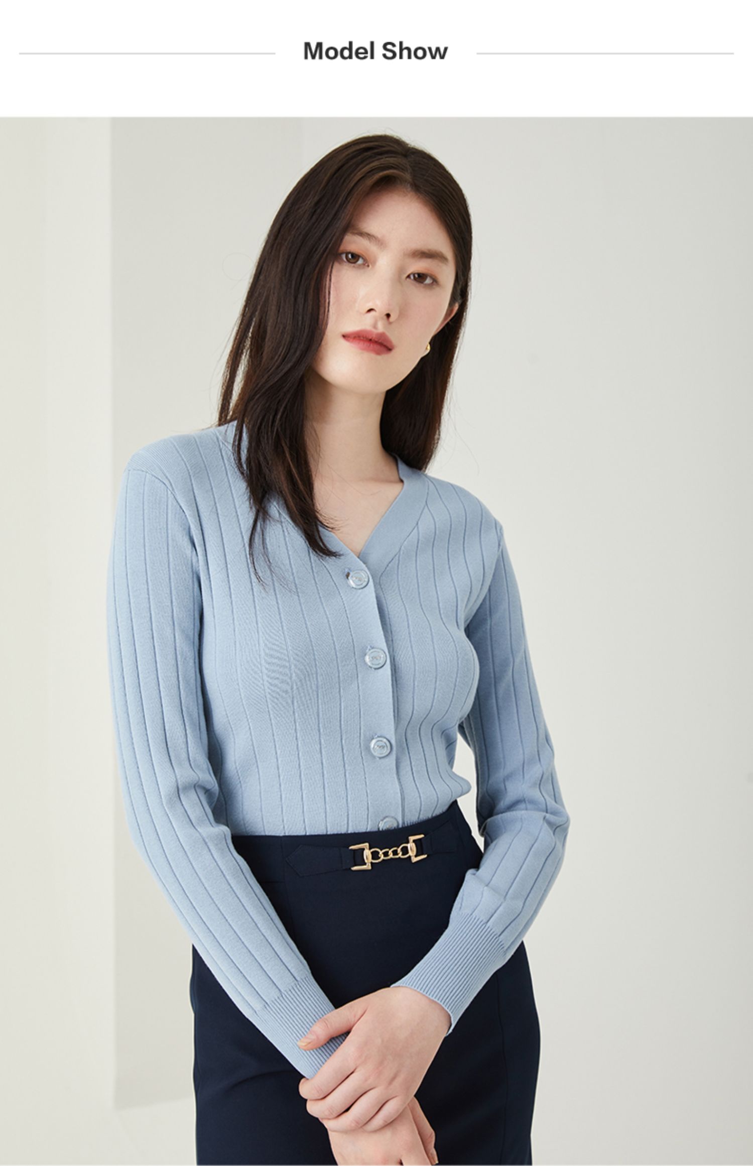 PRICH2021年新款外套气质修身ⅴ领休闲纯色针织开衫PRKCB7801N