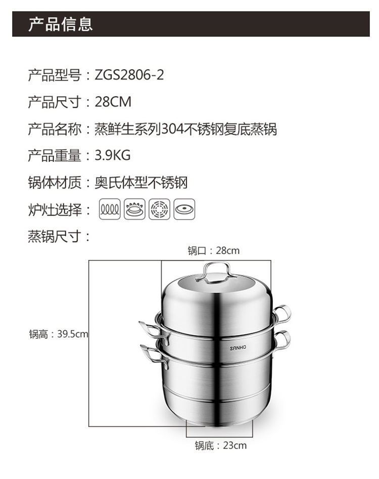 【清仓特惠4.5折,仅1件,无货退款】三禾锅具304不锈钢蒸鲜生蒸锅28CM