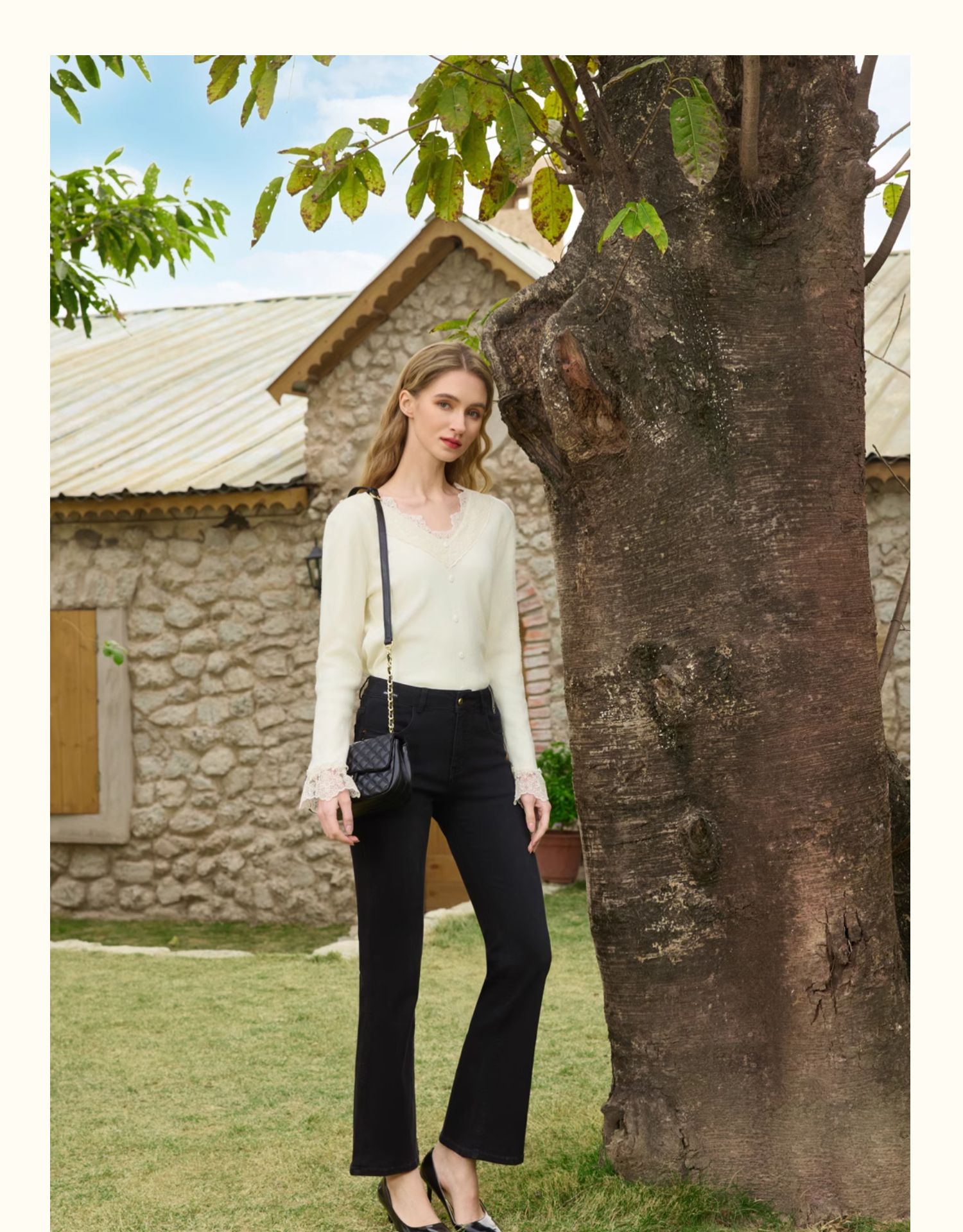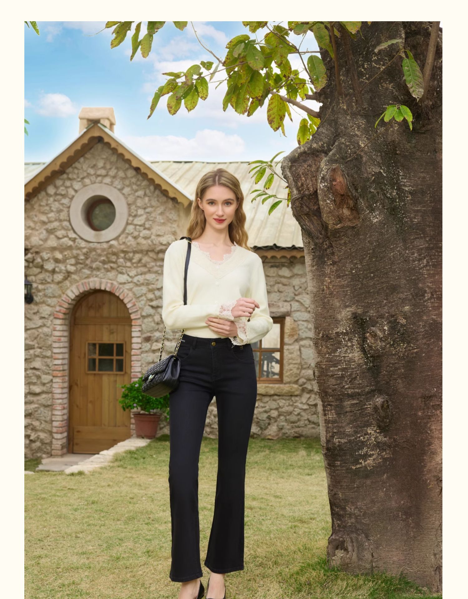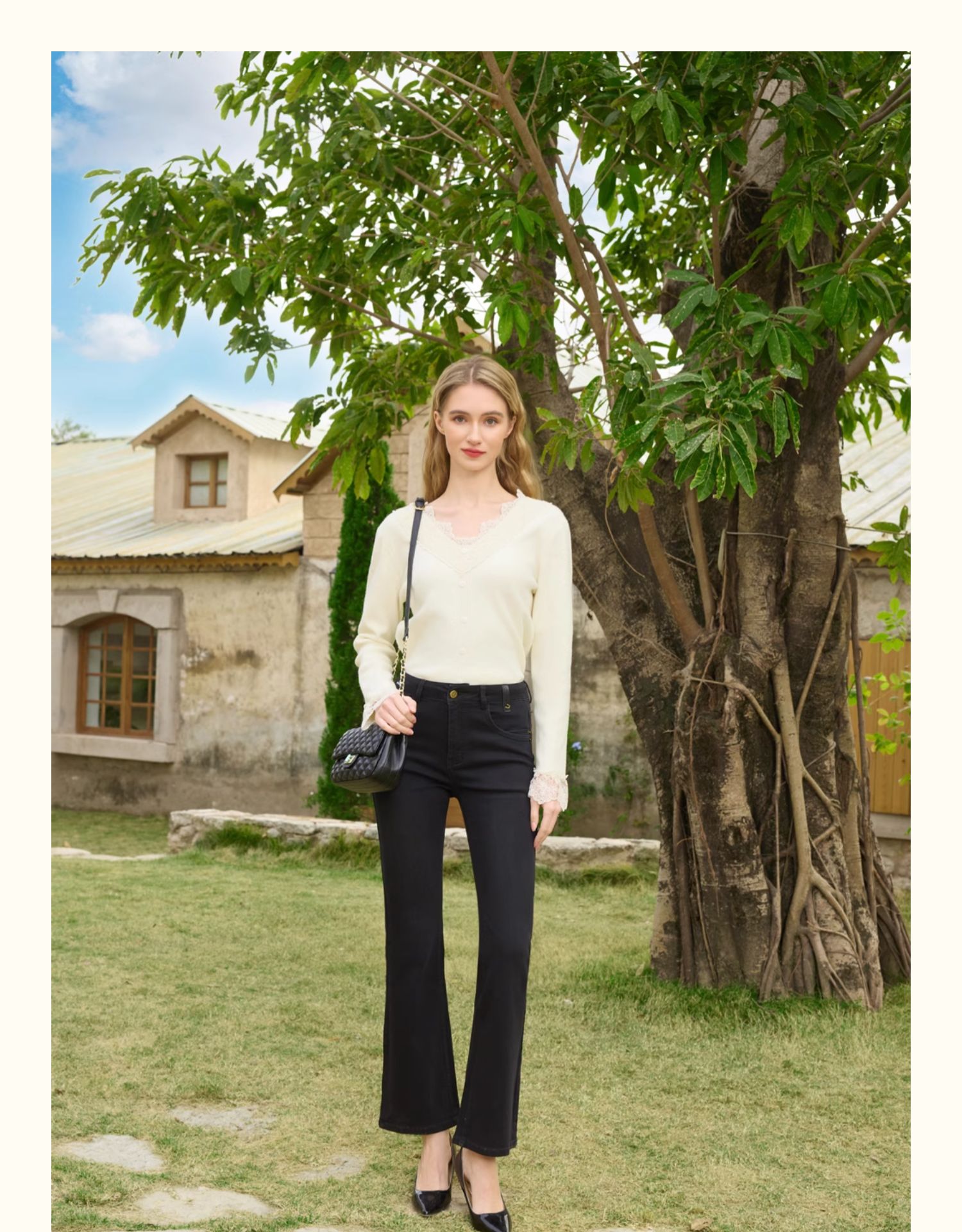 半身缘女裤 春季显瘦美腿高档简洁百搭喇叭牛仔裤251102M10102694