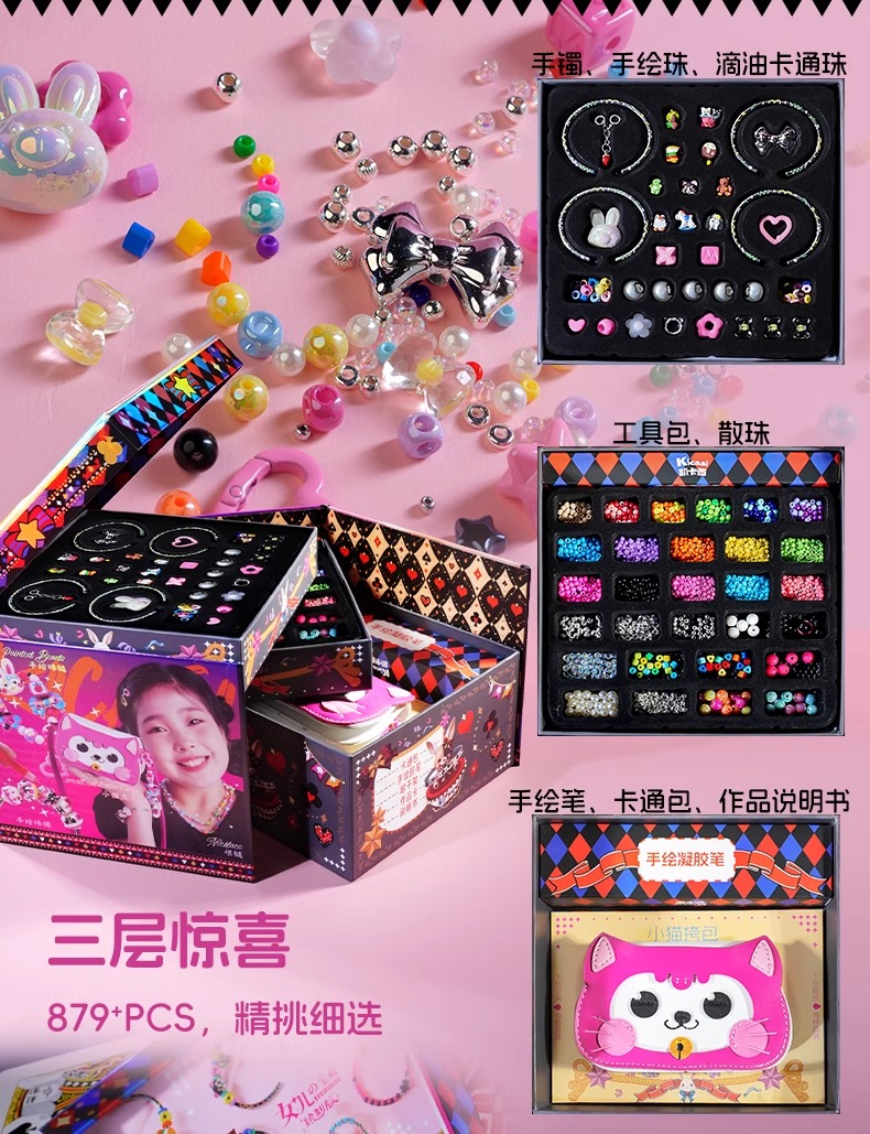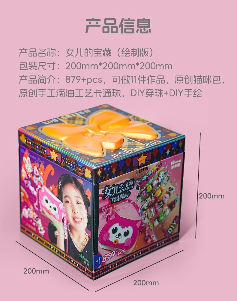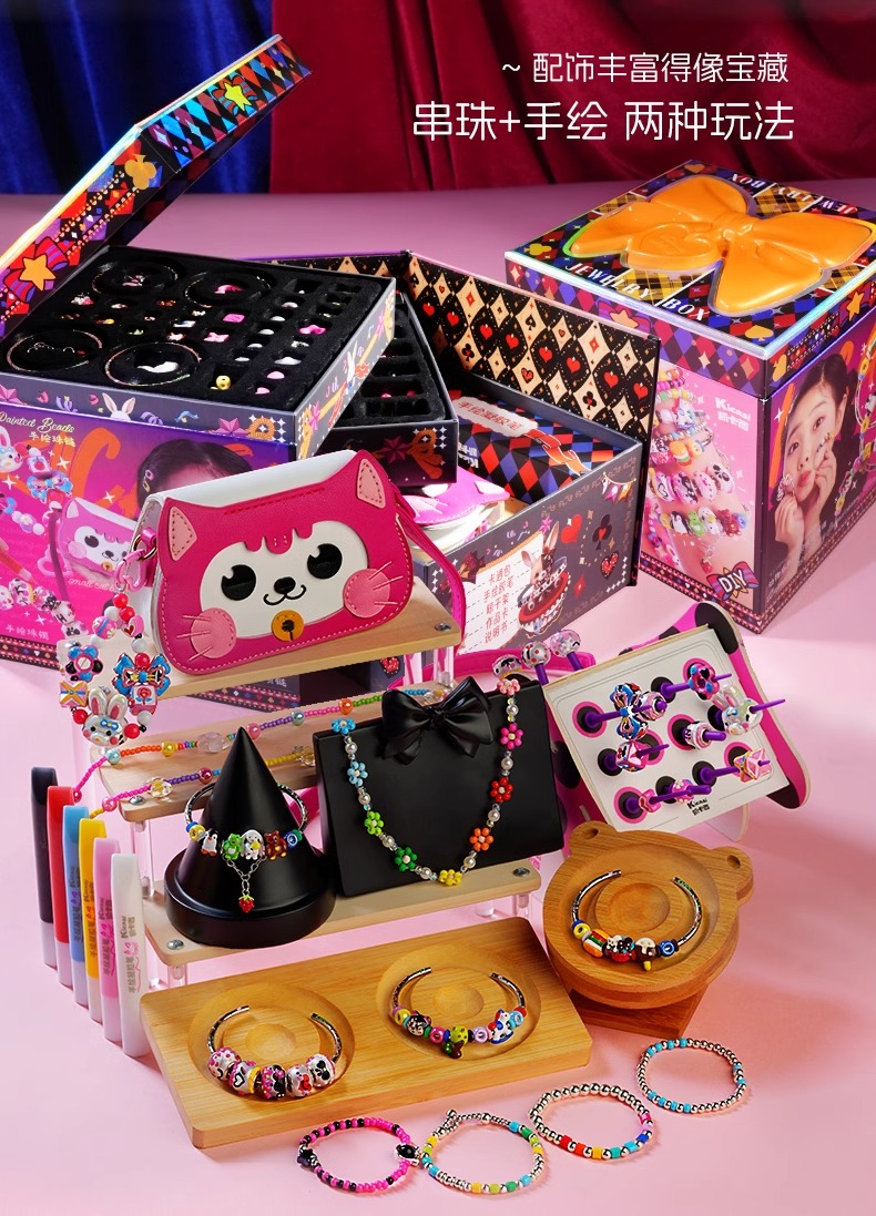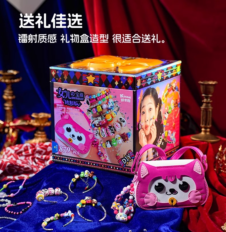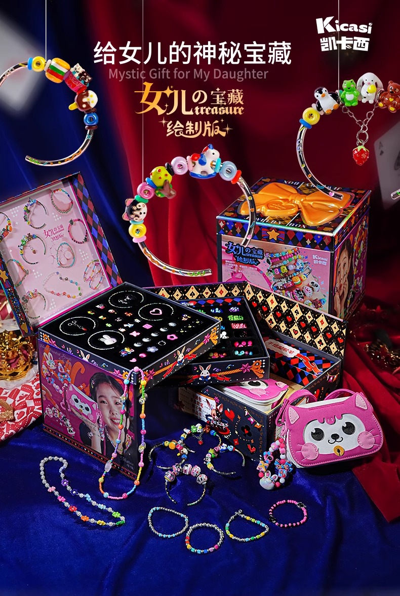 kicasi凯卡西儿童女童玩具女孩子生日礼物公主首饰盒手链套装礼盒绘制版