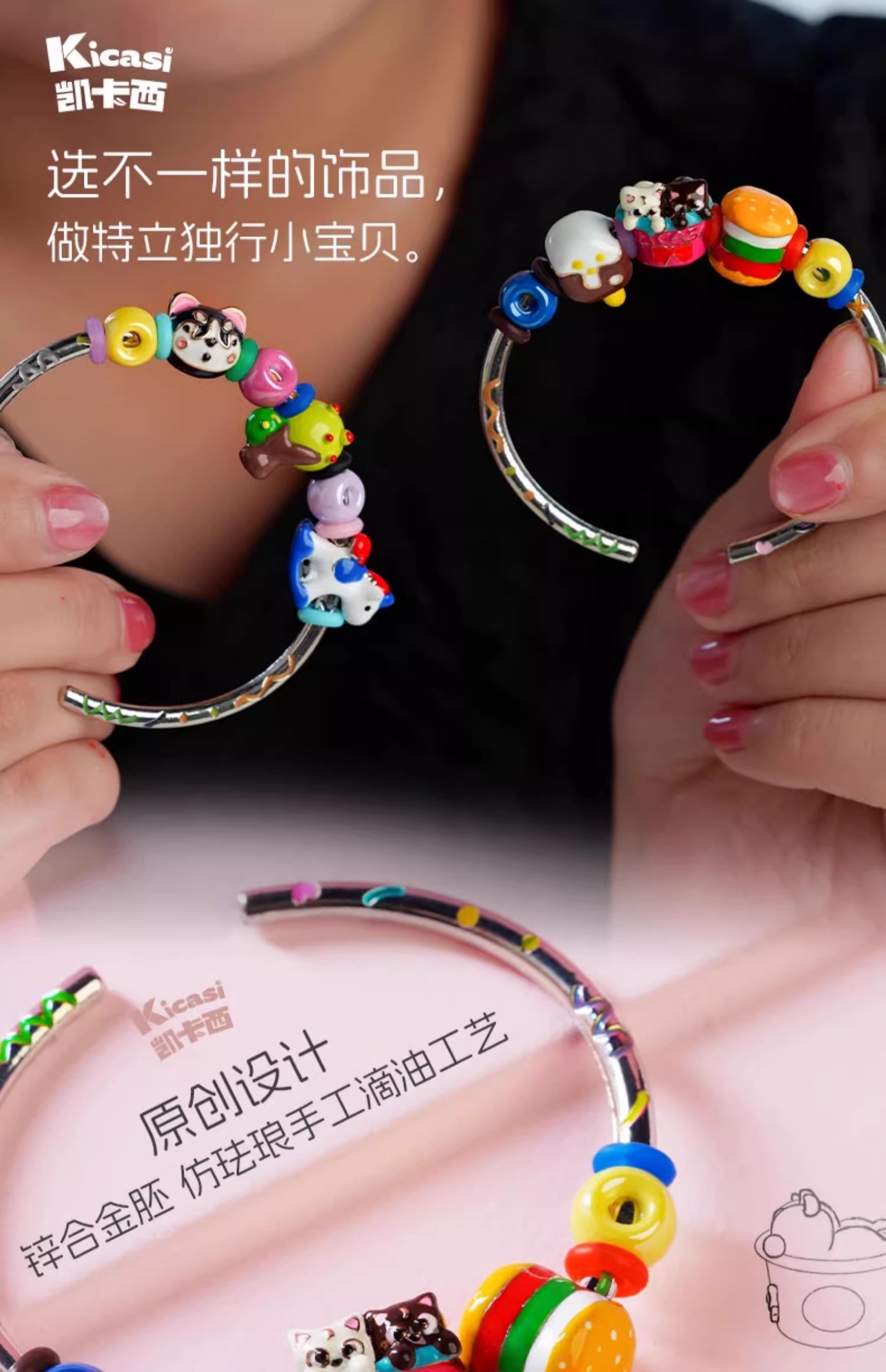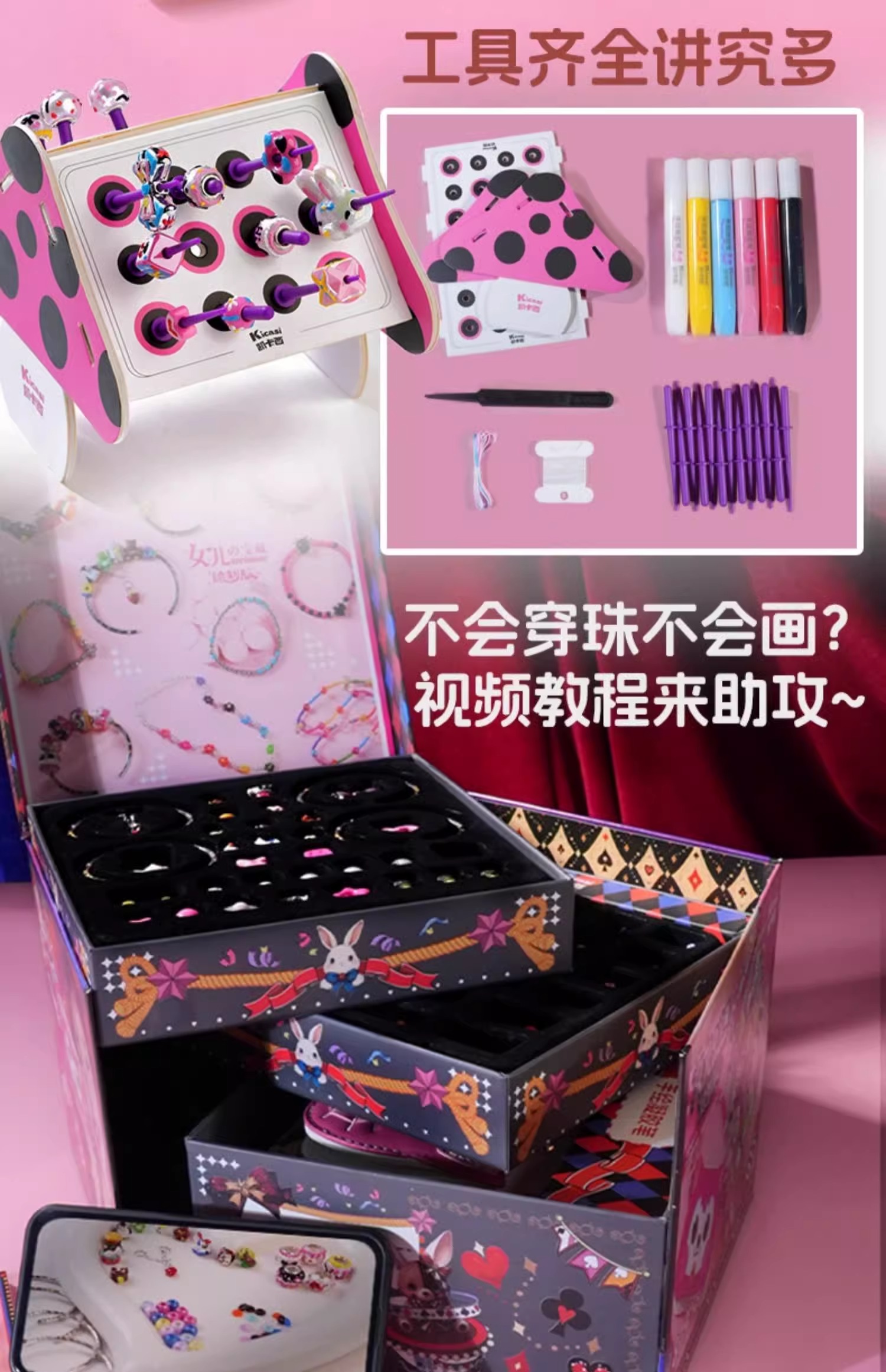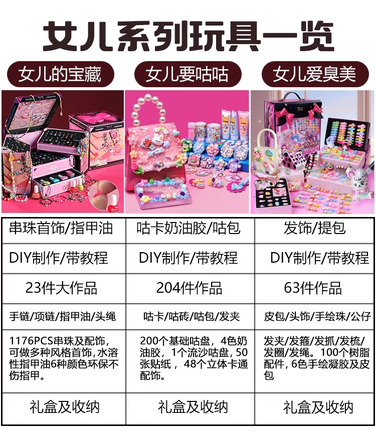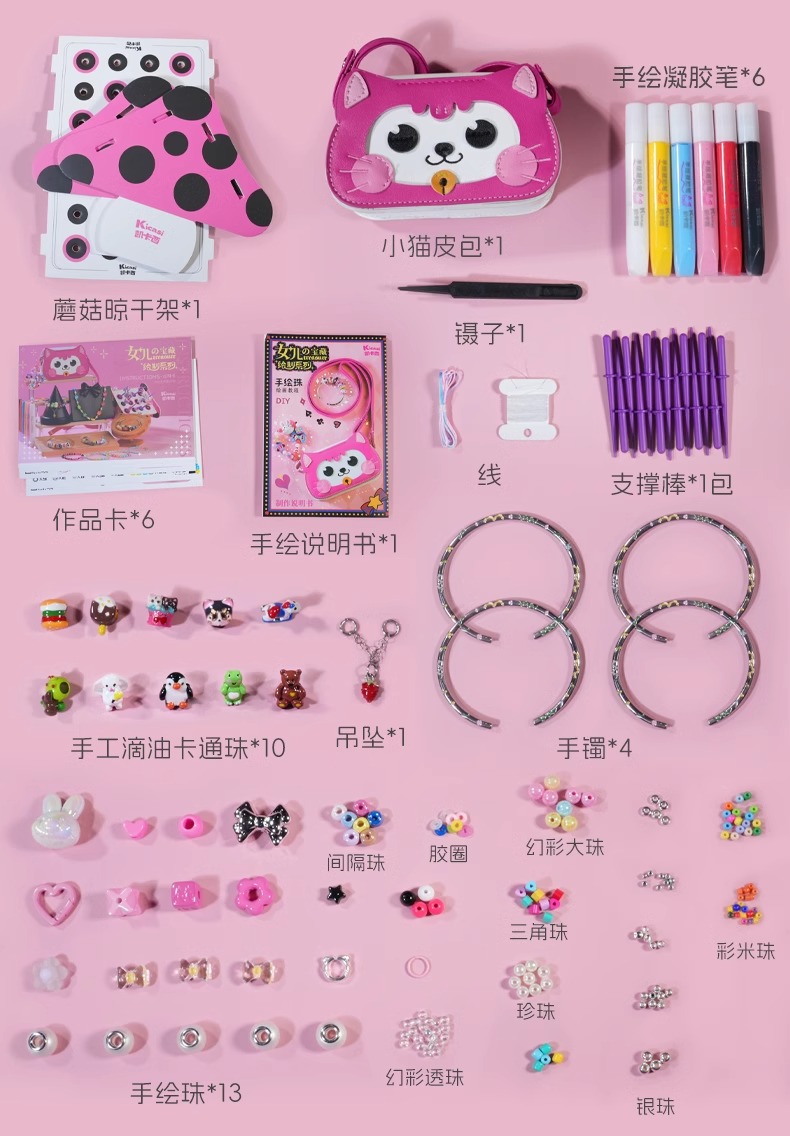 kicasi凯卡西儿童女童玩具女孩子生日礼物公主首饰盒手链套装礼盒绘制版