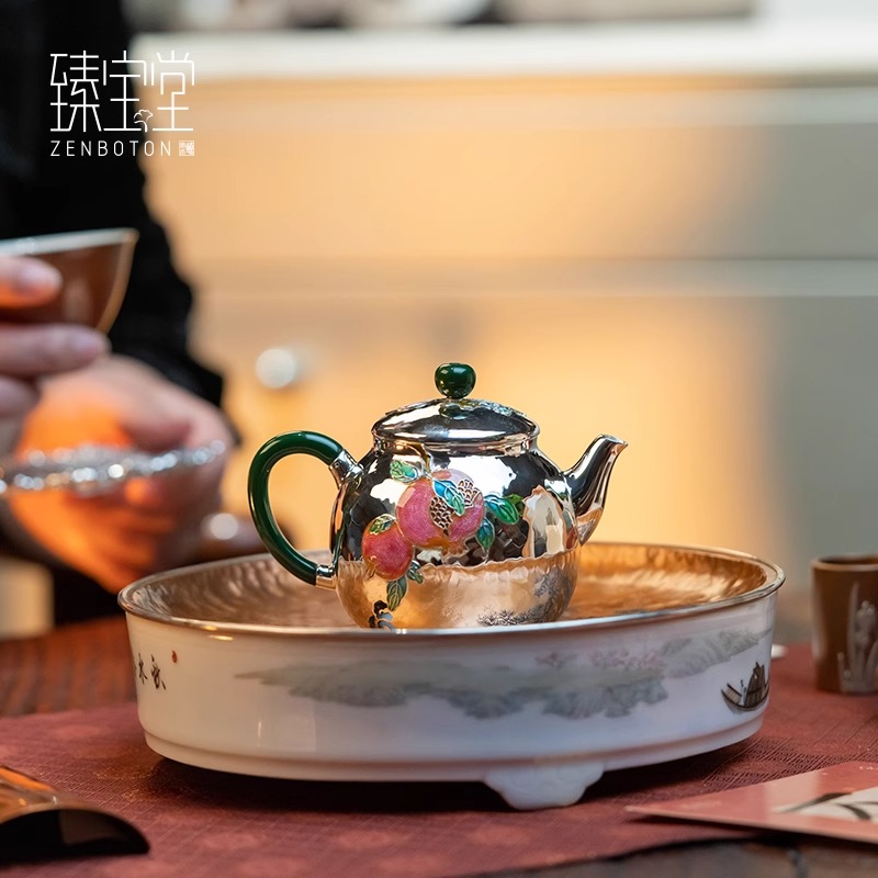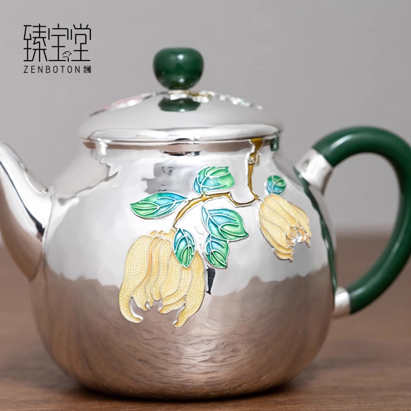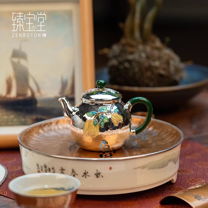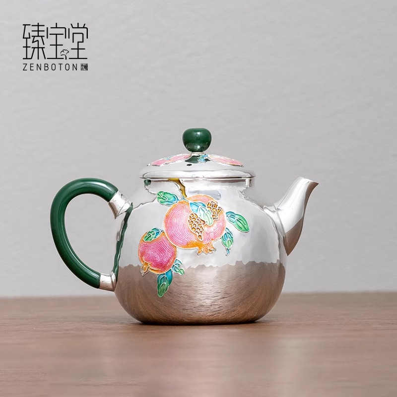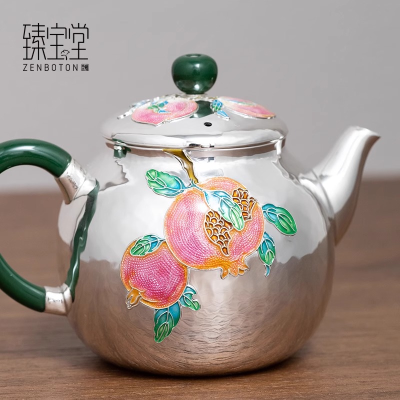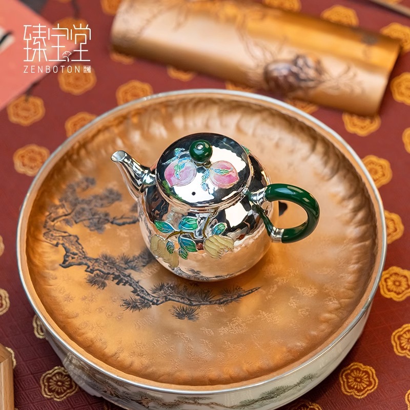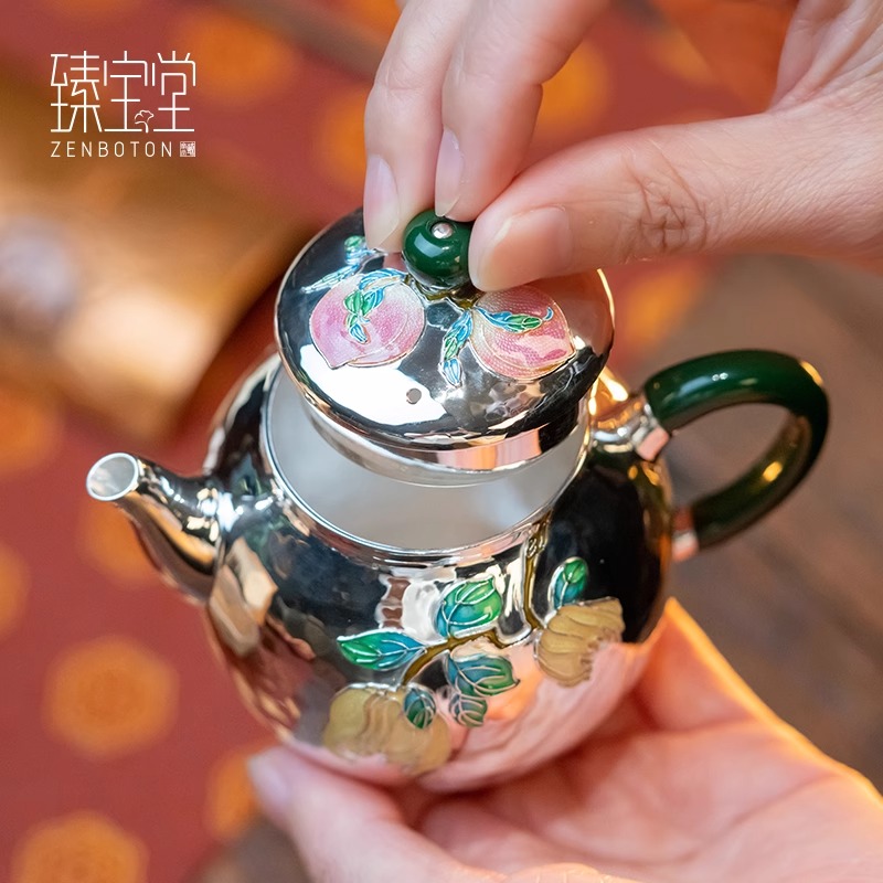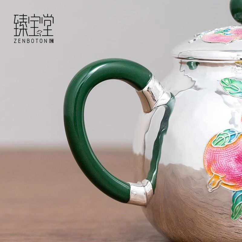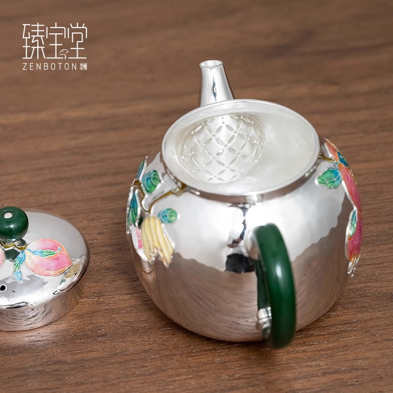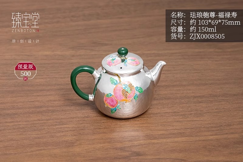 臻宝堂银壶999纯银泡茶壶足银茶具纯手工珐琅匏尊福禄寿高端茶器珐琅匏尊福禄寿150ml