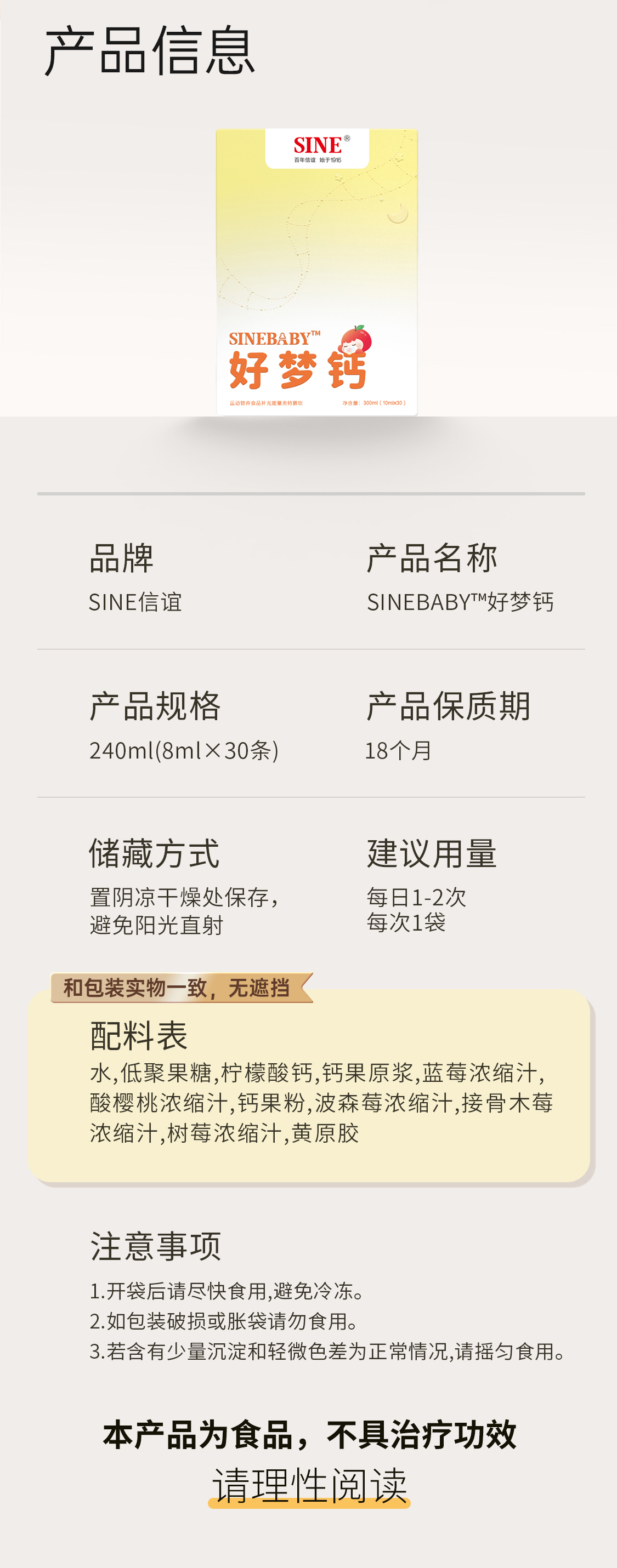 SINE信谊 全年龄段SINEBABY好梦钙 天然蔬果味无敏好梦液体钙
