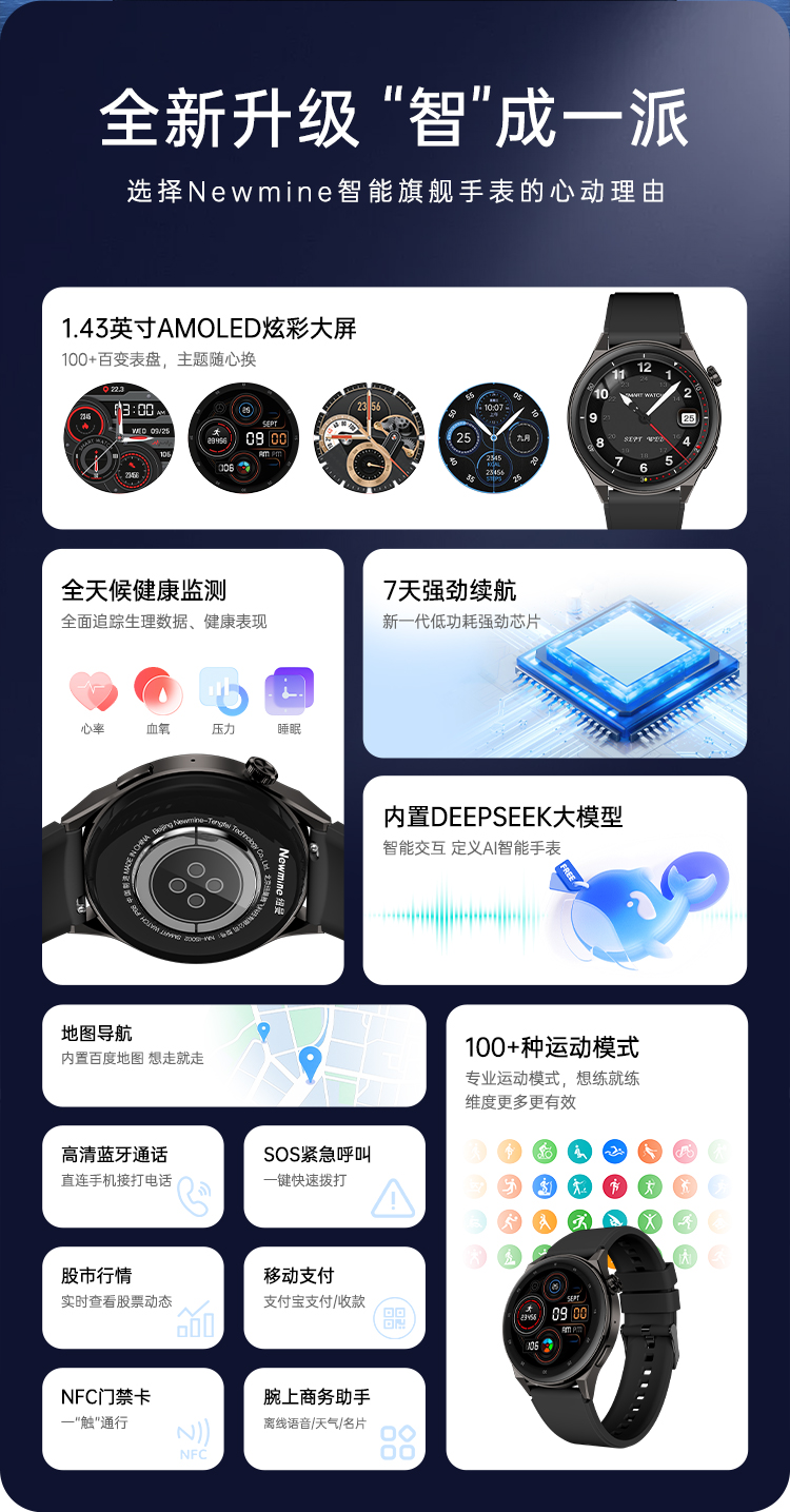 【自营】 纽曼 AI智能旗舰手表 强劲续航 舒适无感佩戴 健康监测 AI 交互 IS002